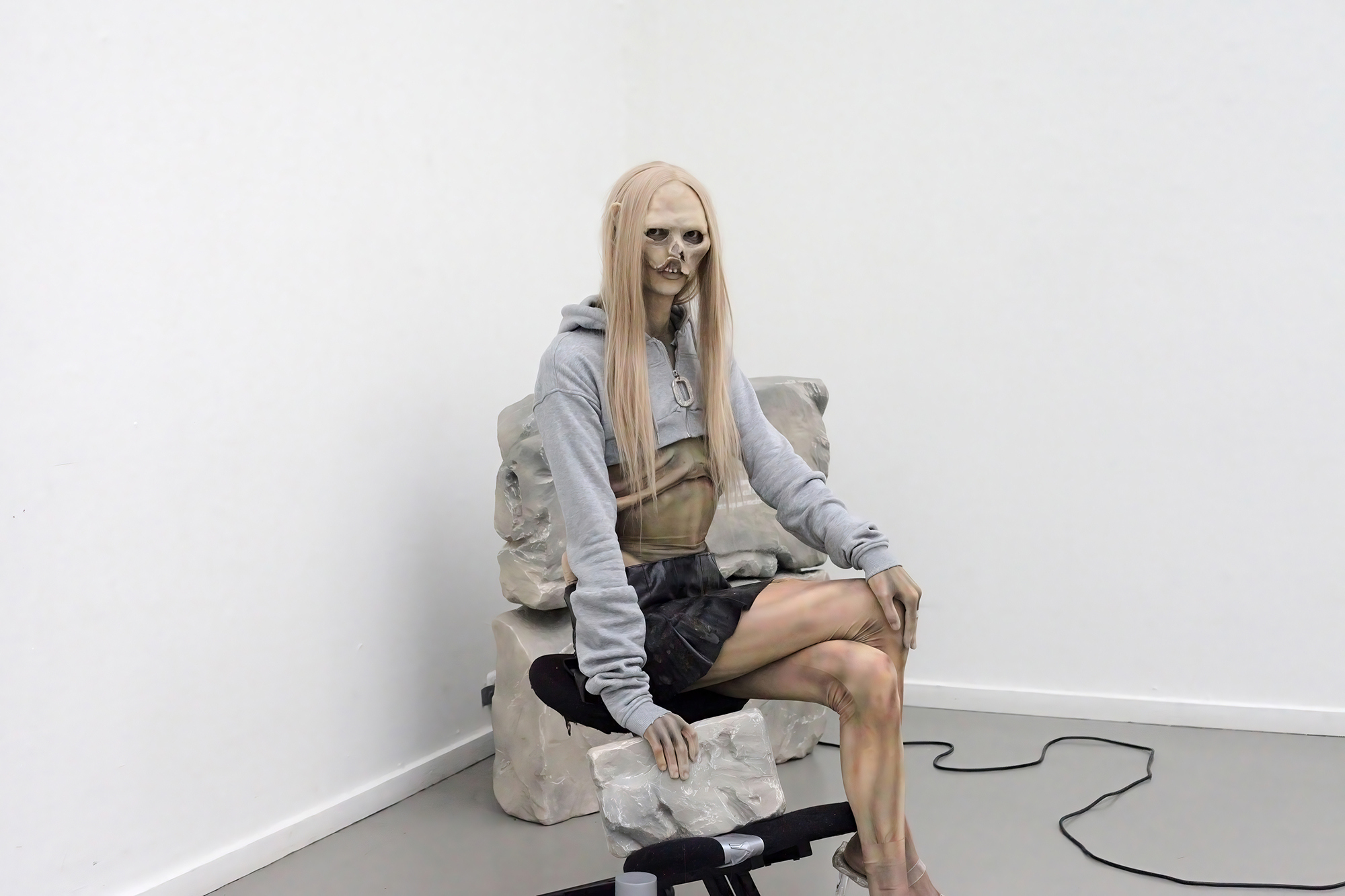 Ötza photobombing Jonas Morgenthaler, Cross Collar Sadness, 2023, C, 170 x 70 x 60 cm