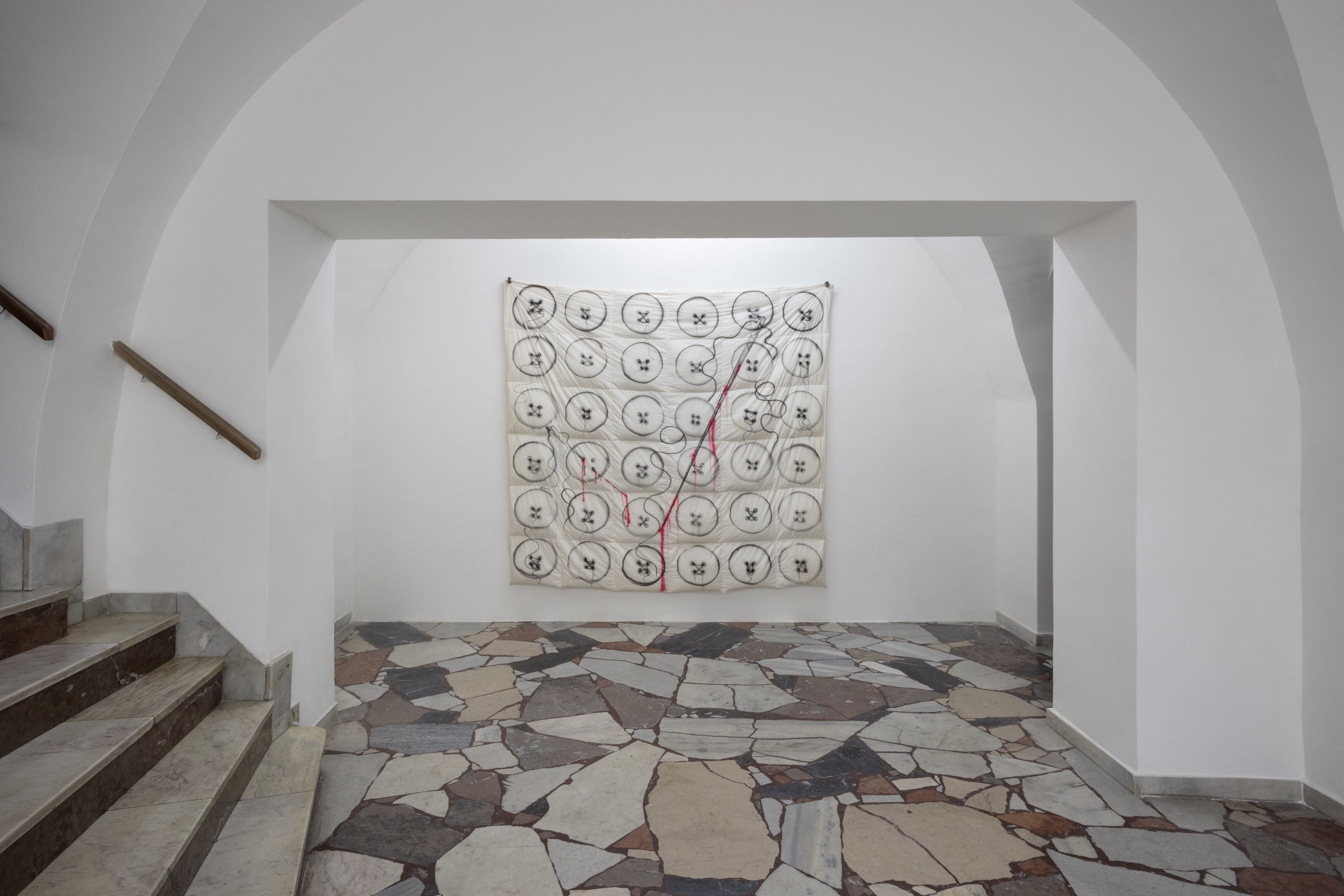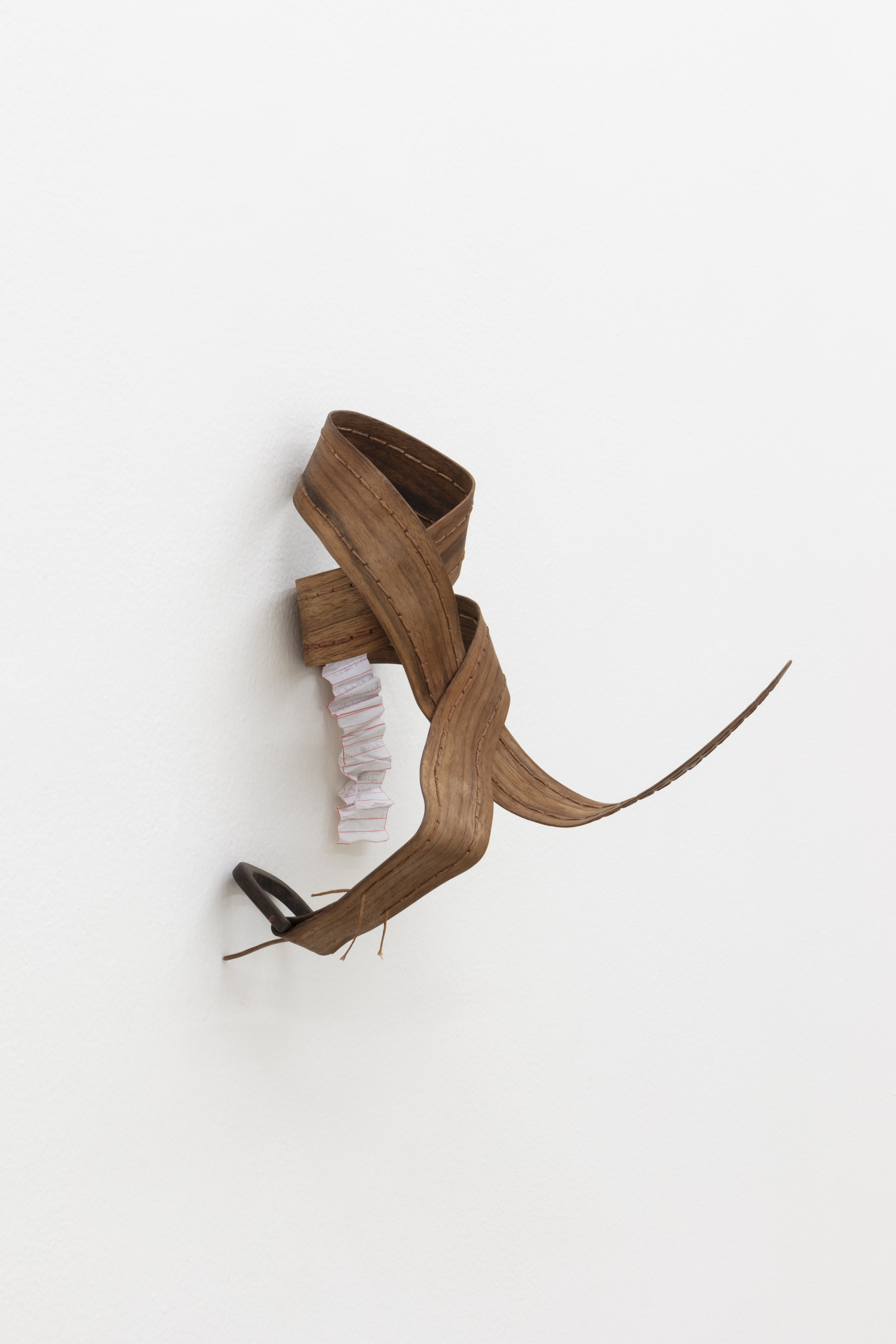 As bodily fluid stains transform into abstract pictorial structures, these objects—once associated with private life—become the very art objects under contemplation. The artists’ shared intervention in the gallery space is the shadow, the imprint of a railing that once was part of the exhibition space. This decorative interior element, once unloved by artists and curators alike, now peels away from the gallery walls, perhaps revealing a romantic trace of something irretrievably lost.