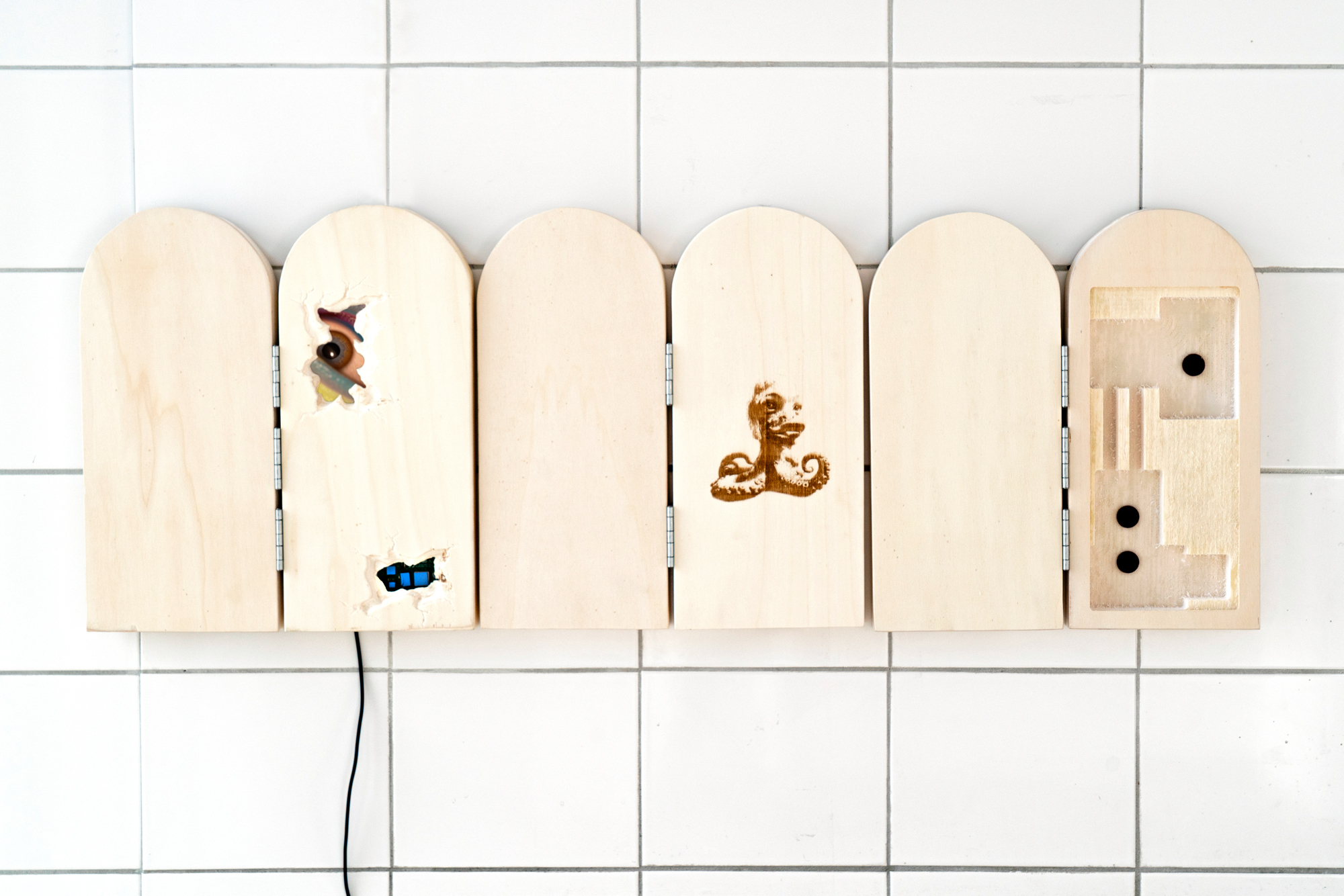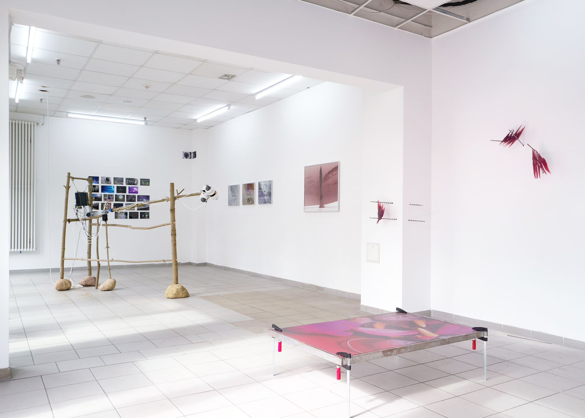 Unstable assemblages of ancient wood build structures that autonomously produce images by C. Fischer, are in dialogue with negative photographs by Y. Wu that play with the boundaries of perception within the human brain, appearing as positive images to our eyes. Meanwhile, sculptures and fragile canvas engravings of teeth, seemingly exposed to never-ending growth by N. Frerichs, question the contradiction of technology as both a destroyer and potential savior of nature. On another front, we encounter an avatar embedded into wooden panels and home-like cabinets, expressing its deep subconscious feelings and pondering in a gradually approaching meeting point. Its life before birth, alongside 3D-printed âconstructed emotionsâ by M. Jekat. Surveillance systems are humanized in the works shown by I. Kind, emphasizing our shared tendency to misinterpret each otherâs realities. We enter their minds and view the world through their eyes.