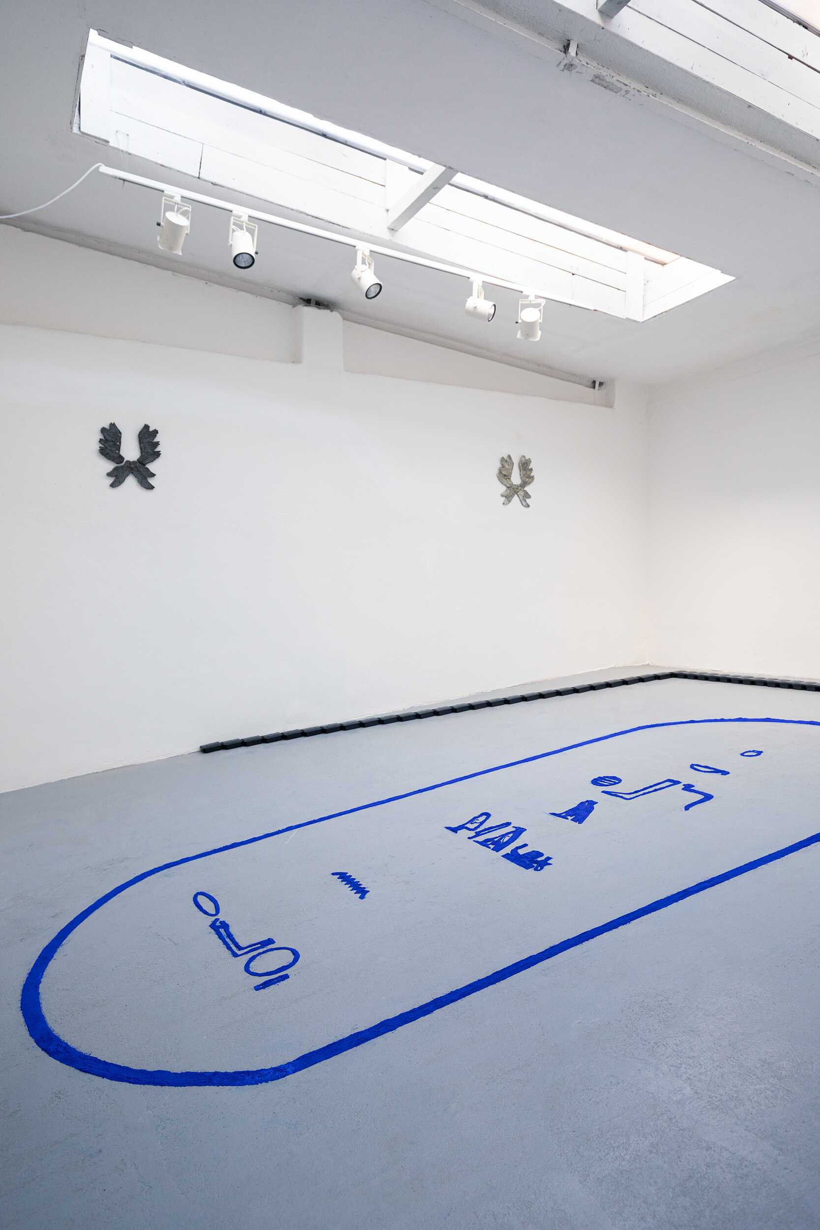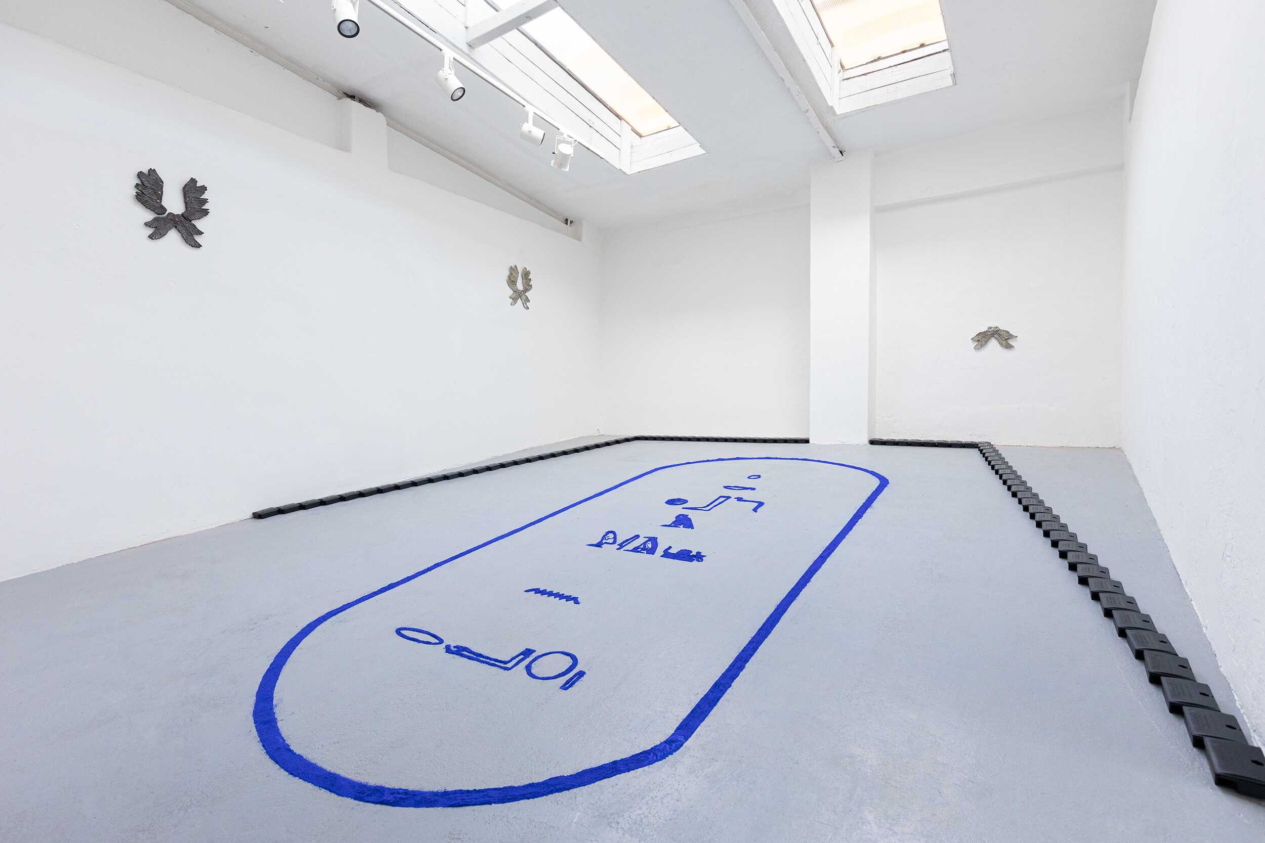 the pylons of Egyptian temple complexes is a floor installation consisting of blue pigment and a