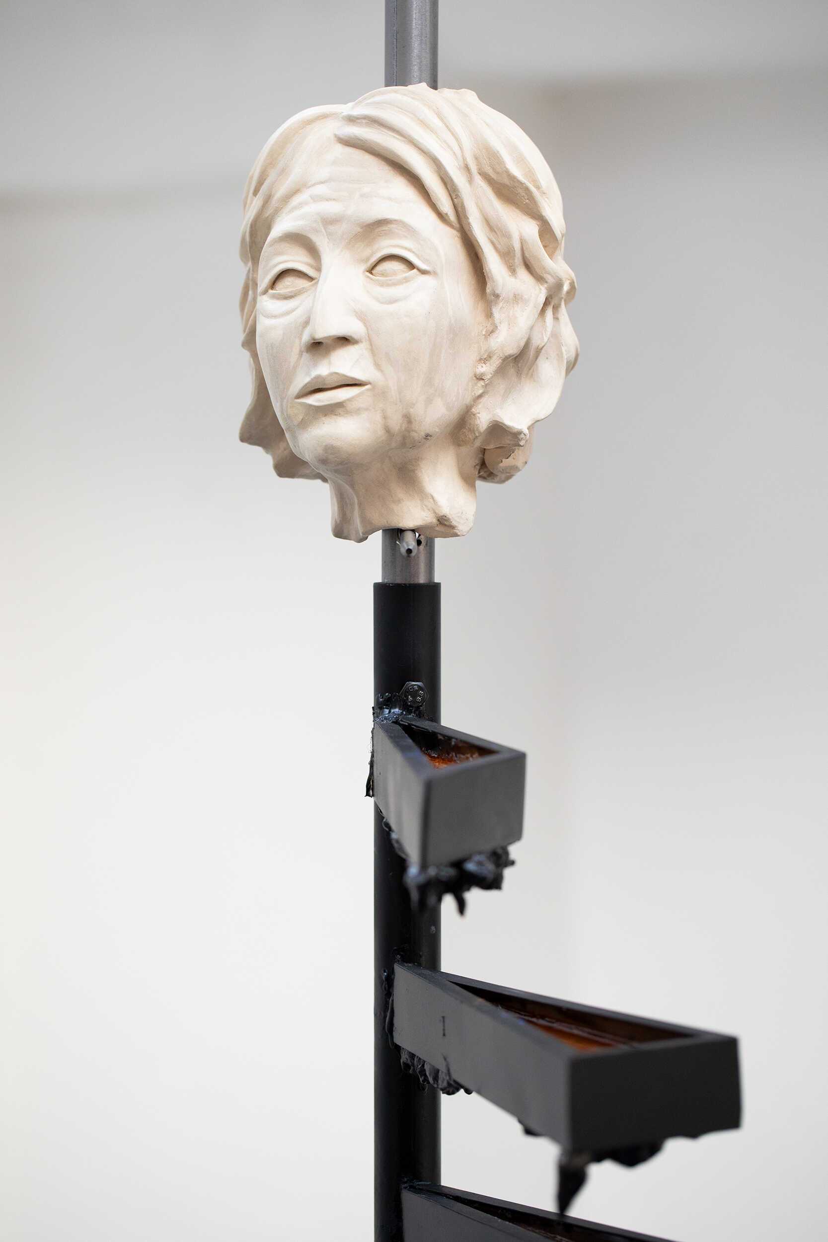 floor and ceiling are crowned with ceramic heads of her grandmother and mother. Contrary to the