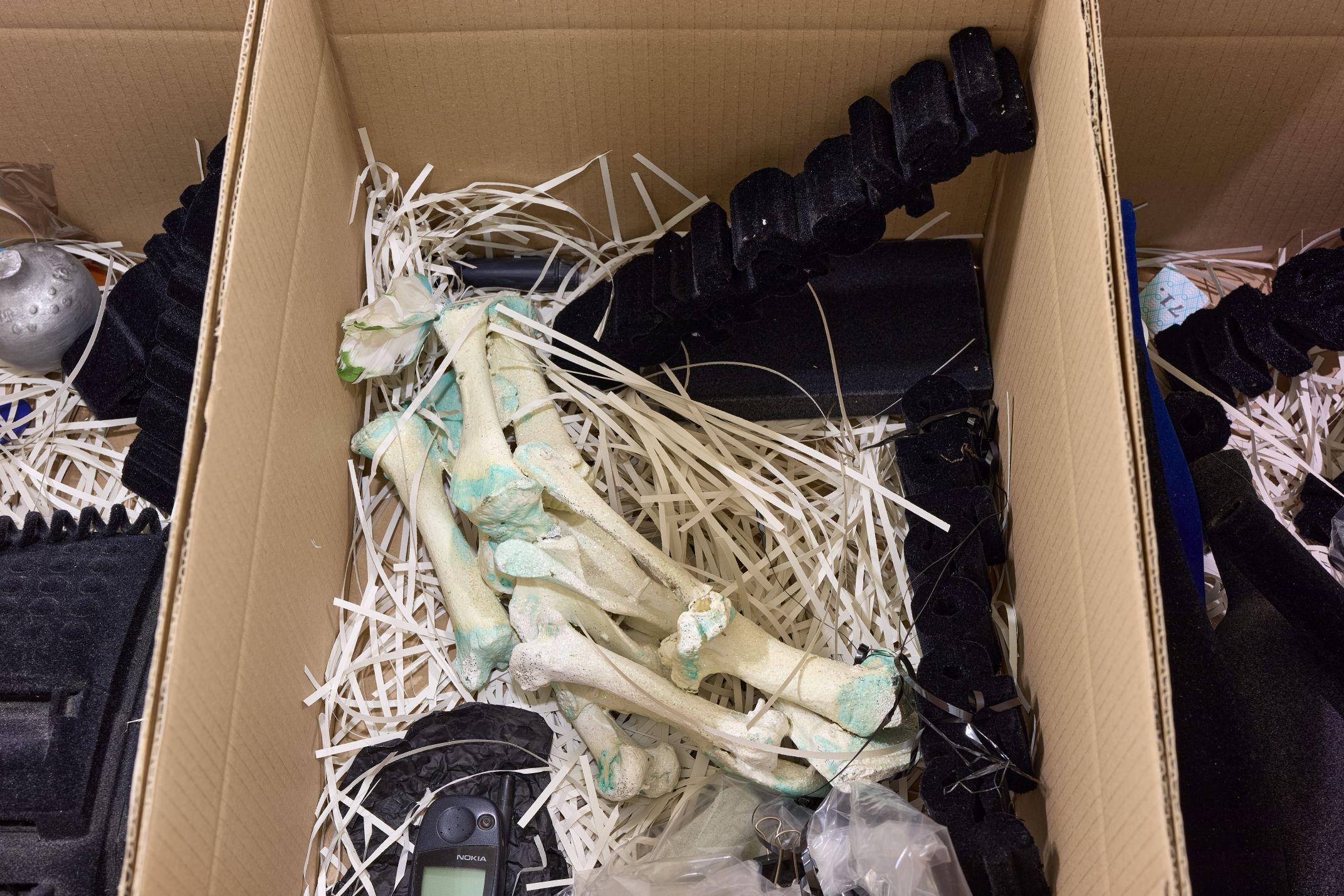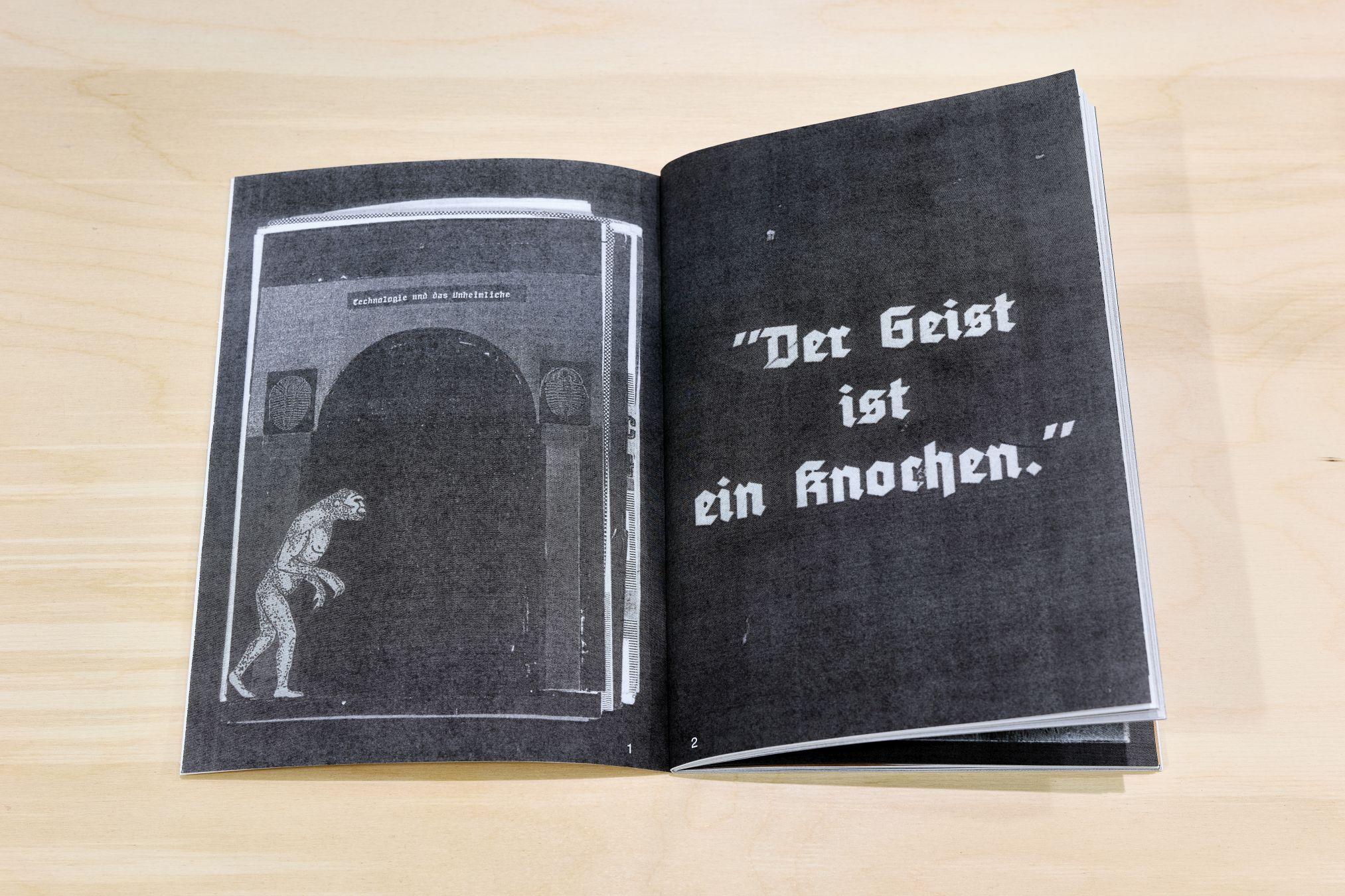 The exhibition entitled Geisterknochen and the accompanying fanzine Paleohauntology offer an insight into the creative and theoretical practice of the past ten years of the collective Technologie und das Unheimliche (T+U). Combining archaeology, geology, philosophy and speculative futurisms, the collective invites visitors on an artistic excavation of the haunted unconscious of techno-culture in collaboration with further artists. Referring to Jacques Derrida's concept of hauntology, which rethinks our contemporary condition based on an ontology of ghosts, paleohantology encourages us to reckon with our biological, geological and cultural heritage. In doing so, our prehuman past and posthuman future explode like a meteorite into our present, like the still unexplained Tunguska event.