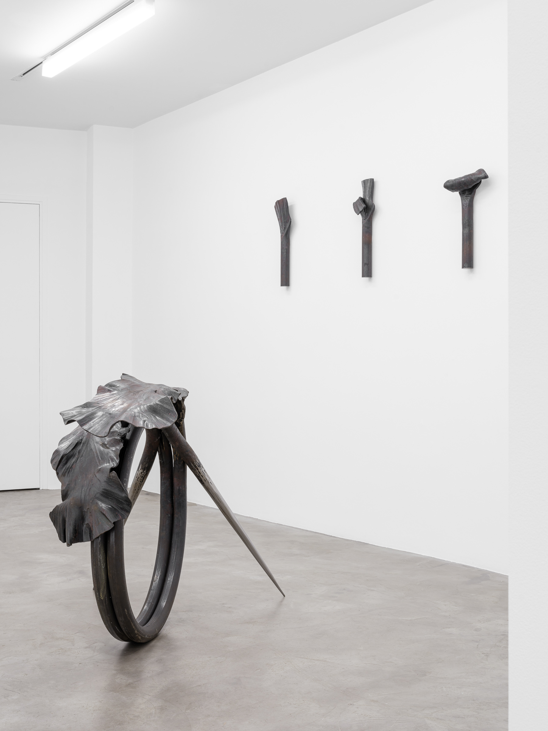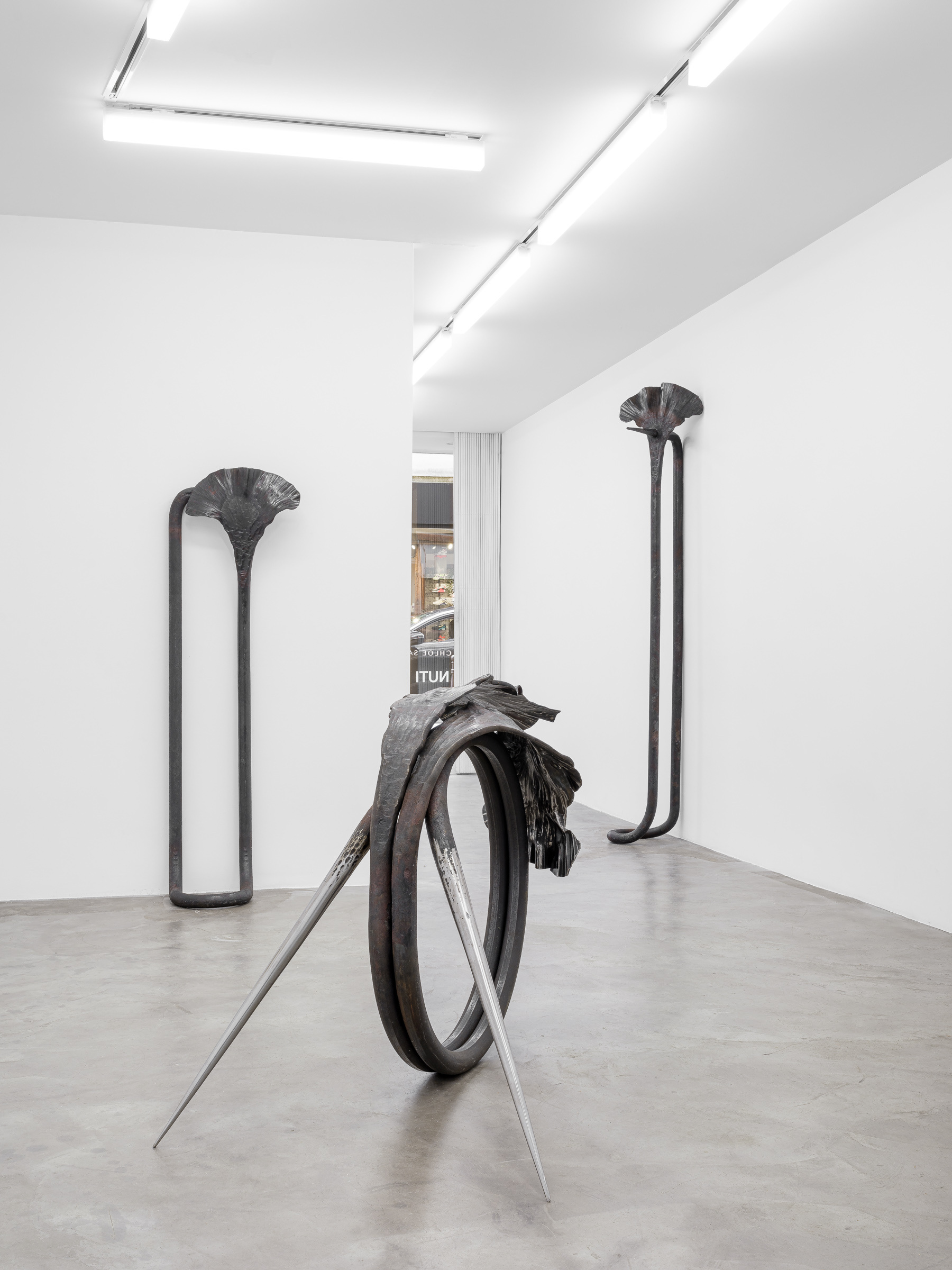 For Tube, her third solo exhibition at GALERIE CHLOE SALGADO, Lulù Nuti continues her exploration of these questions and investigates the properties of iron, a material she sculpts and transforms into a moving body, whose initial rigidity gives way to more organic forms. Her approach remains rooted in an intellectual and sensitive engagement with matter, which becomes a vehicle for a poetic language where the intimate merges with generational inquiries. The exhibition is accompanied by a text by Noémie Pacaud.