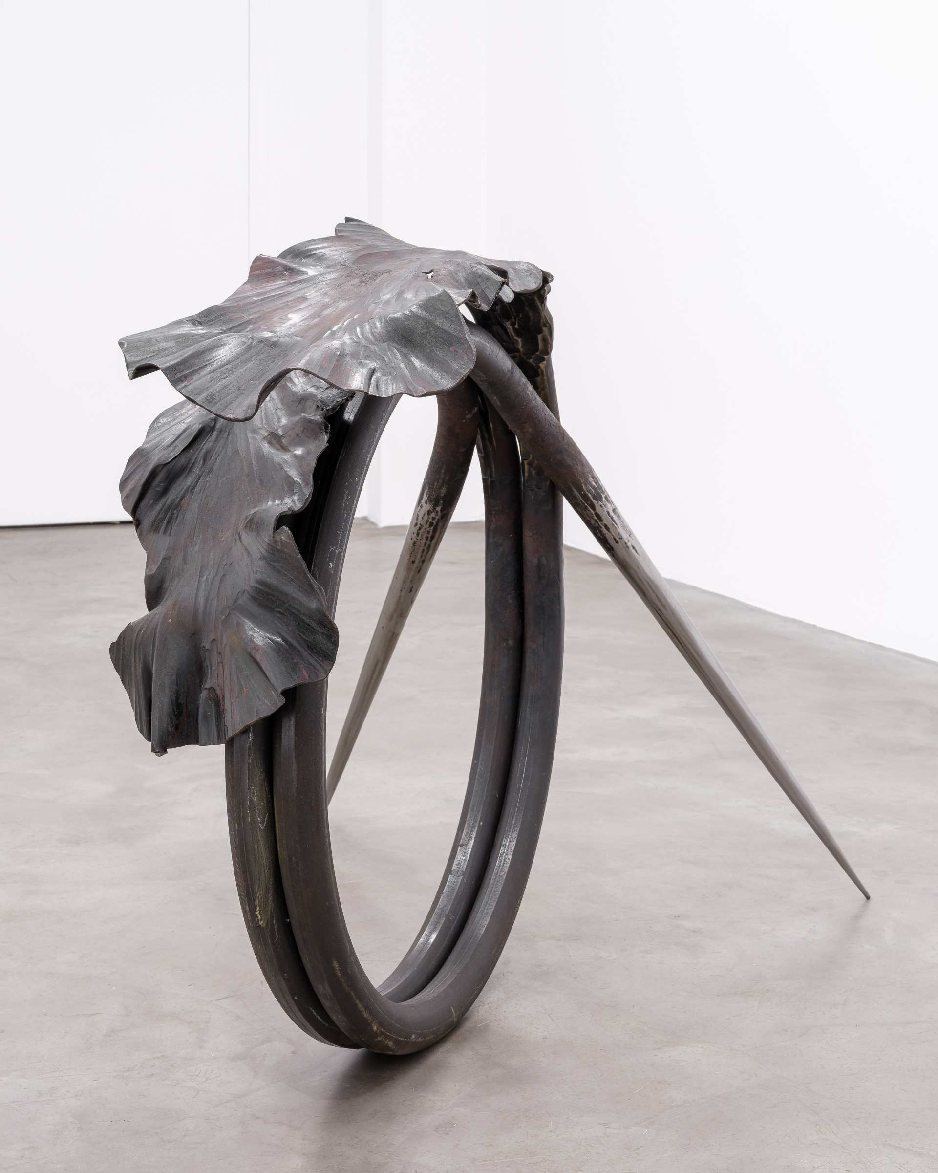 By constantly eluding us, the Tubes force us to join the dance, to move in order to shift perspectives, alter centers, and multiply viewing angles in a contrary pursuit of revelation that strives to grasp an immediate and intelligible unity. Inevitably failing to contain the integrity of the piece, we are confronted with the impossibility of seeing two things at once, activating an awareness of the potential for a multitude in power. Nuti thus works to bring forward the vital energy residing in the hidden potential of all things without corrupting it. To do this, she nurtures a relationship of doubt with the object, prompting movements of reversal and back-and-forth through games of rupture, dissonance, or exhaustion of the material and its forms. Despite the seemingly brutal nature of wrought iron, this approach, pushed to its limits, seeks finesse and flexibility, and does not exclude a form of sensuality.