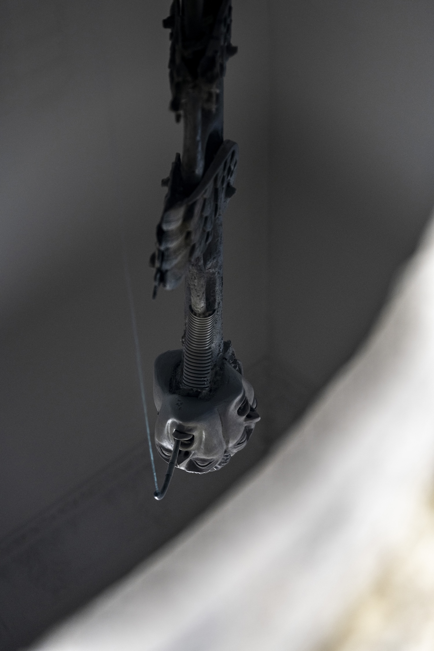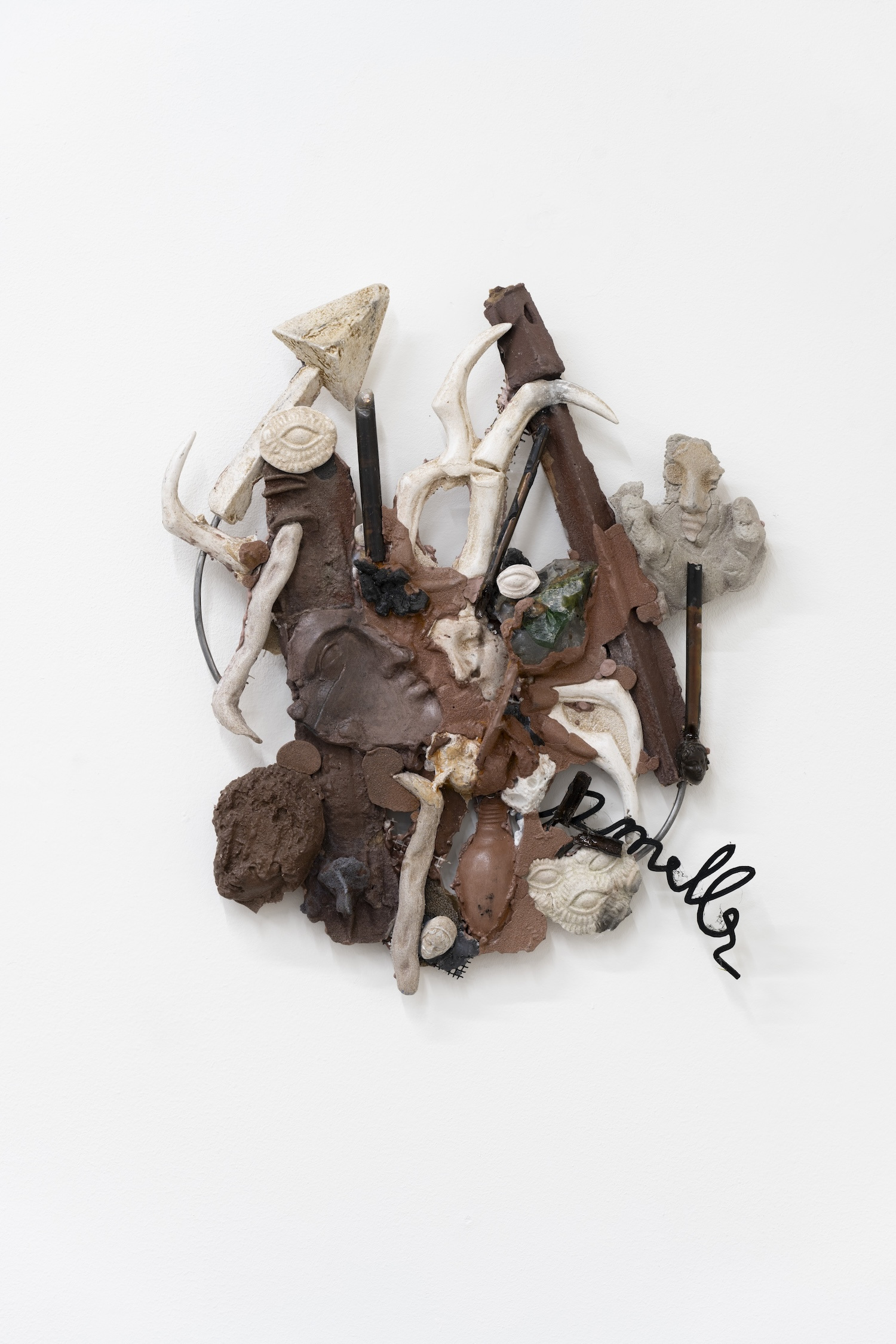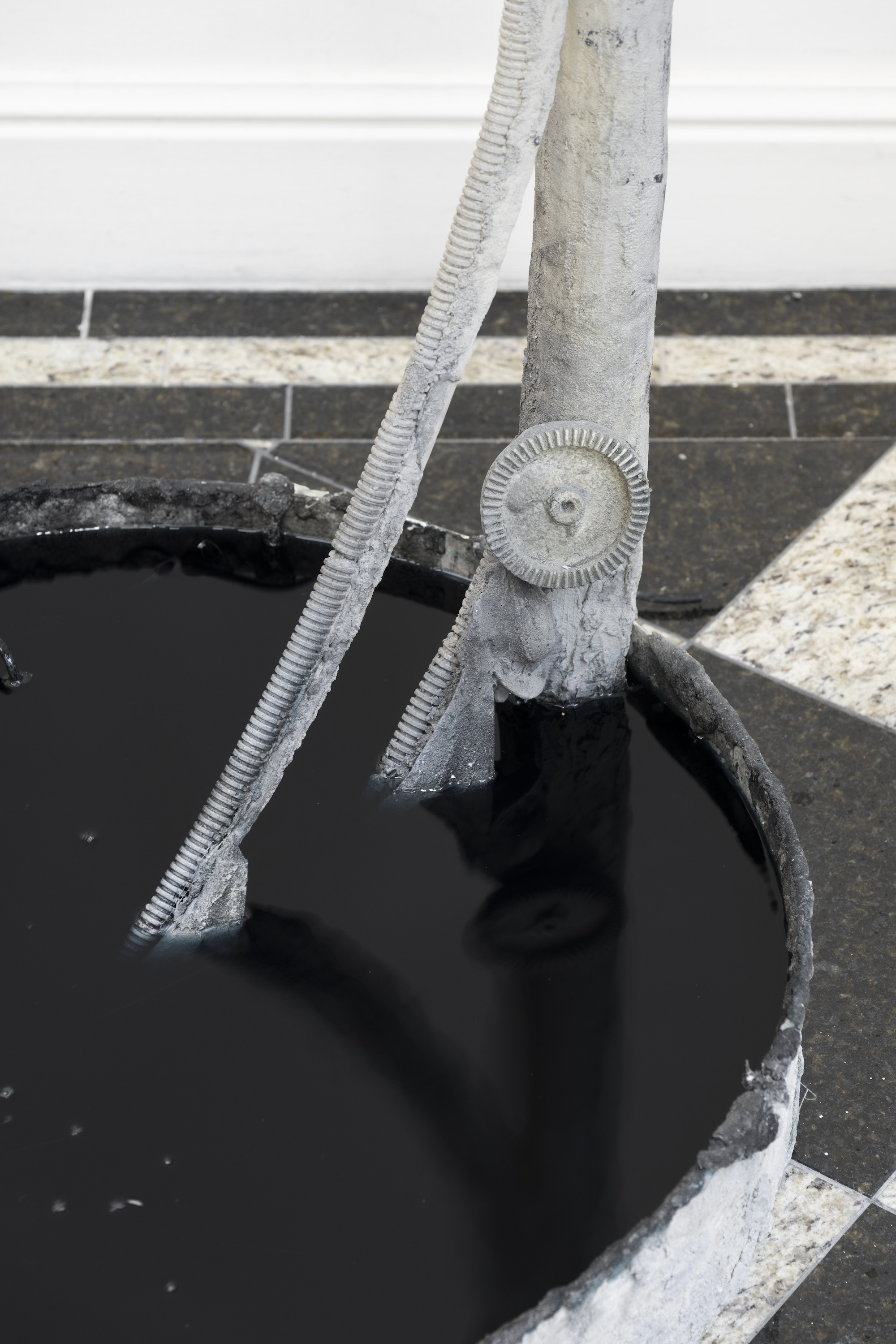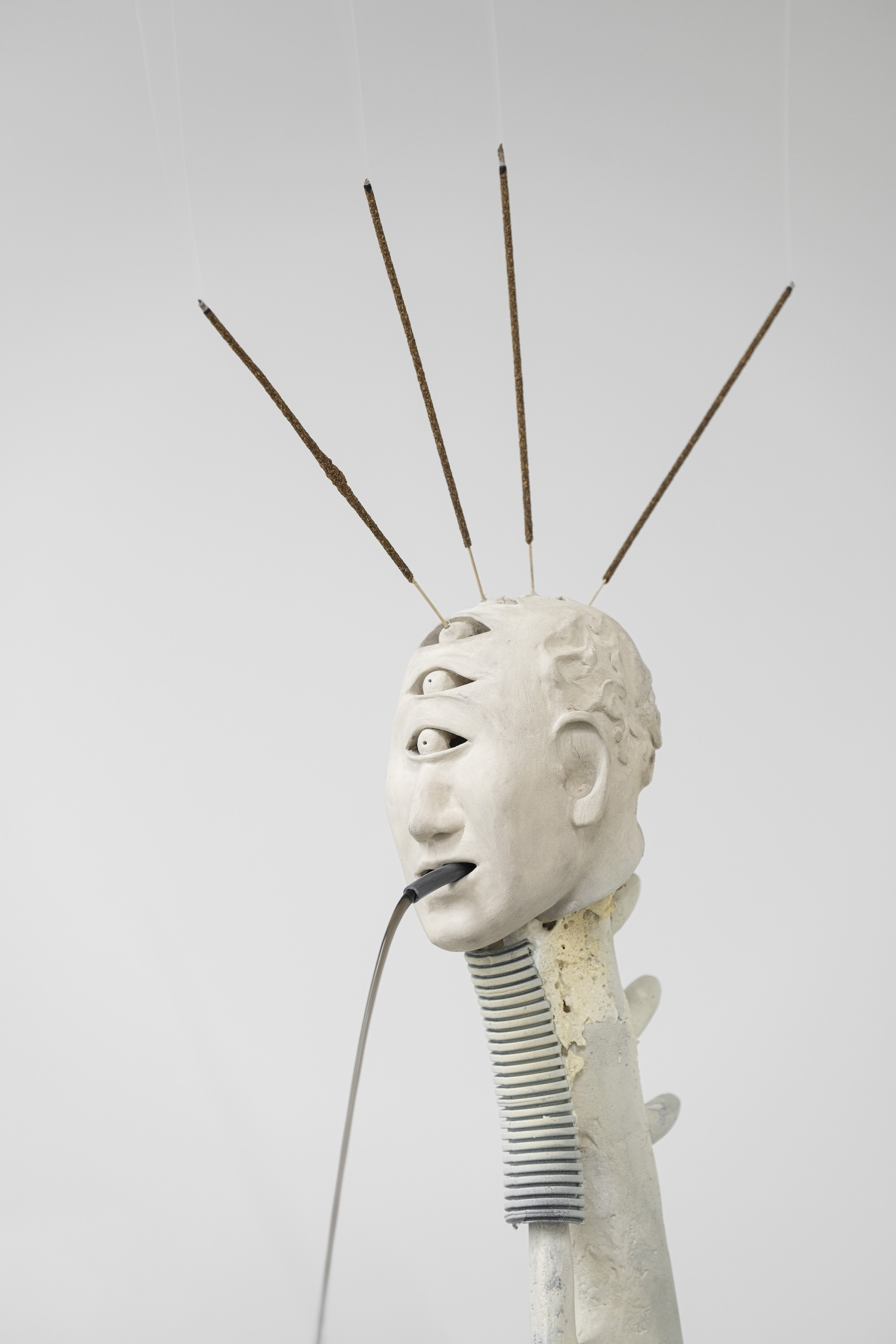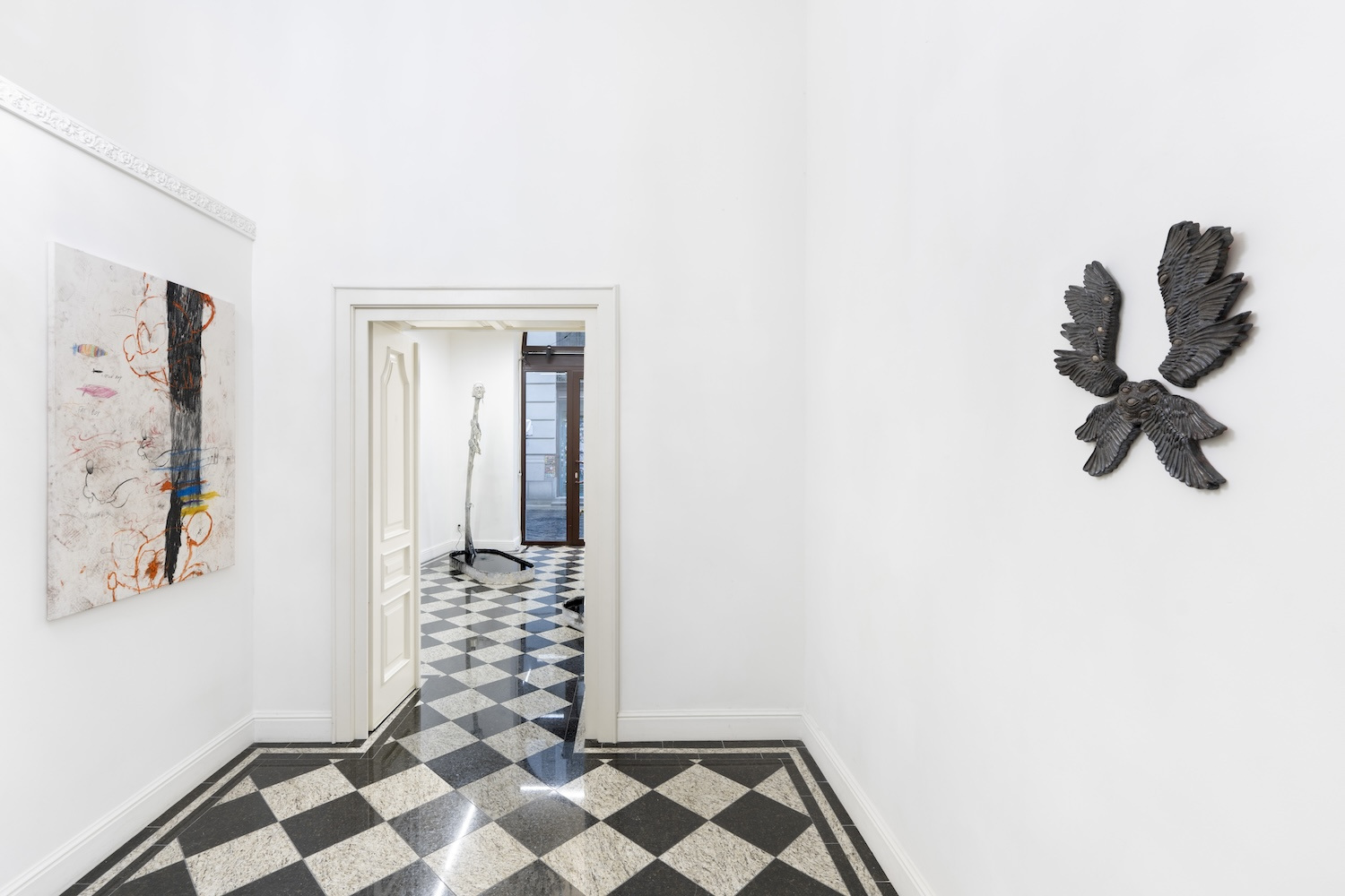 The works by CĂ©line Struger (b. 1982, Klagenfurt; currently based in Vienna) are based on traditional sculpture, which she updates through found materials or technical elements. They appear as mix of dystopian residues of past cultures, combining historical pre-images fused in personal mythologies and captivating fictions into new contexts. Two sculptures - hybrids of grotesque gargoyles and fountains where we discover fragments of different cultures or religions â dominate the exhibition. Struger creates odd figures combining a three-headed version of the god Janus, symbolising the past, present and future, with her own vision of Cyclops with multiple eyes, transforming his originally restricted view into the ability to perceive reality from multiple perspectives. Original mythological (anti)heroes emerge through a complementing pair of wings or claws of Harpy, changing knowledge and testing the boundaries of fantasy, myth or (pseudo)spirituality.