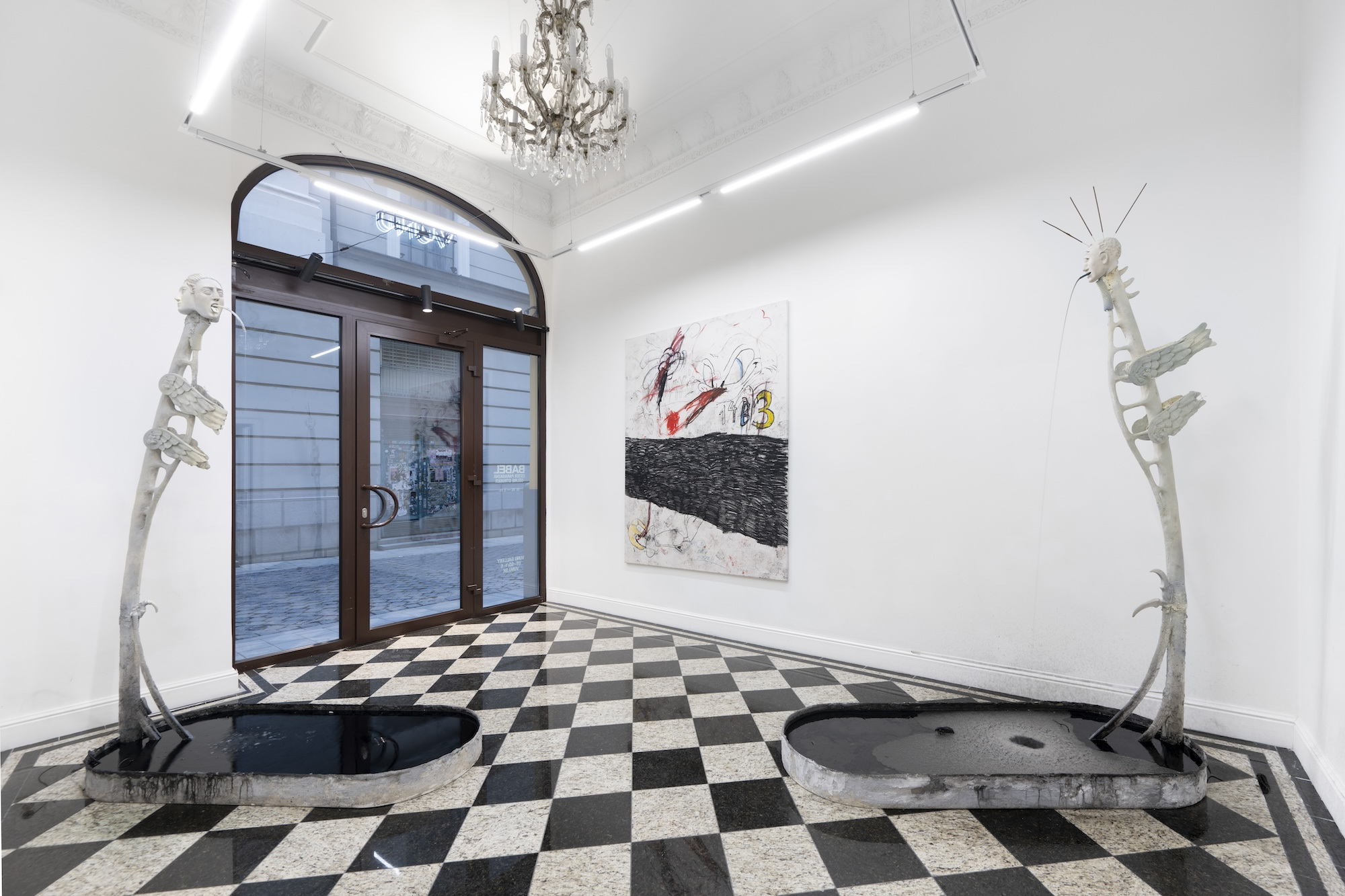 The exhibition BABEL presents a spatial dialogue between the works of the Vienna-based artist Céline Struger and her Prague-based counterpart Ester Paraskovå. This debut combination presents a variety of media along with different conceptual approaches. The selected works create an intense setting that engages all senses. The different narratives draw on popular culture, contemporary society, mythology or (fictional) history. The layering of ideas, mixing of content, visual expression and personal symbolism takes them into new contexts.