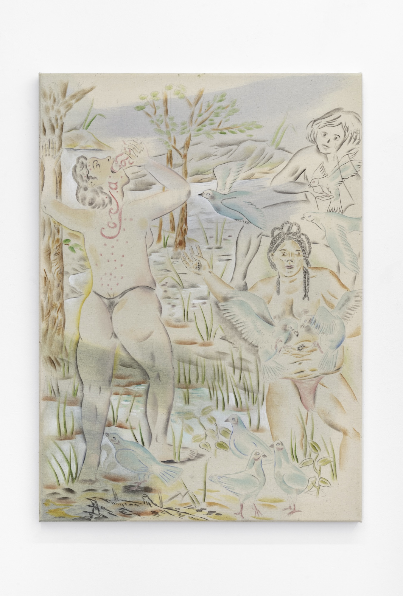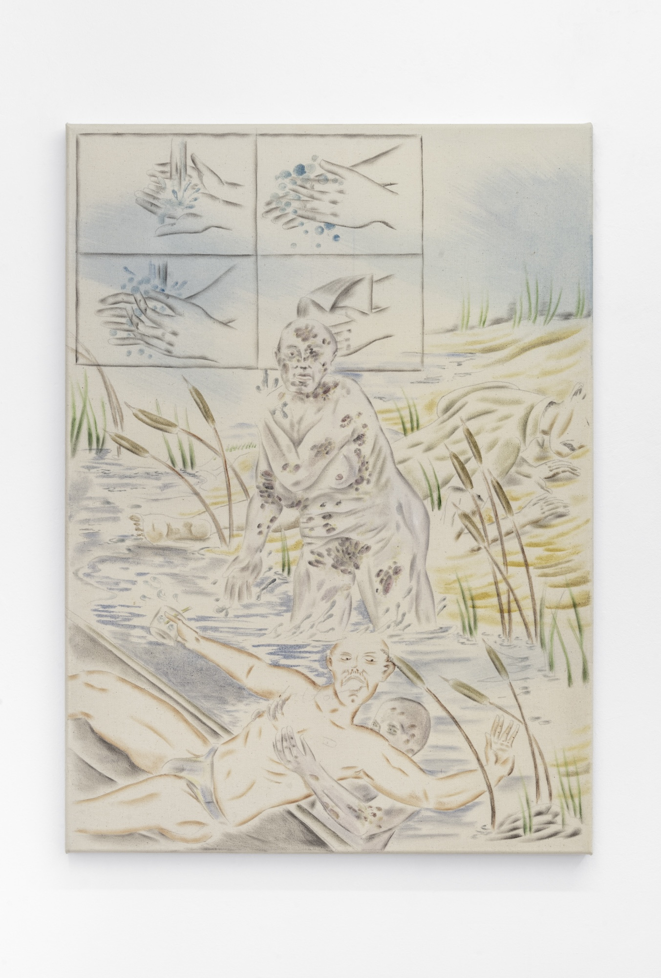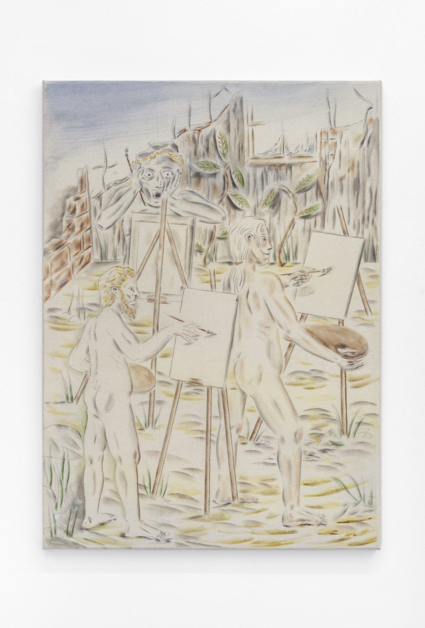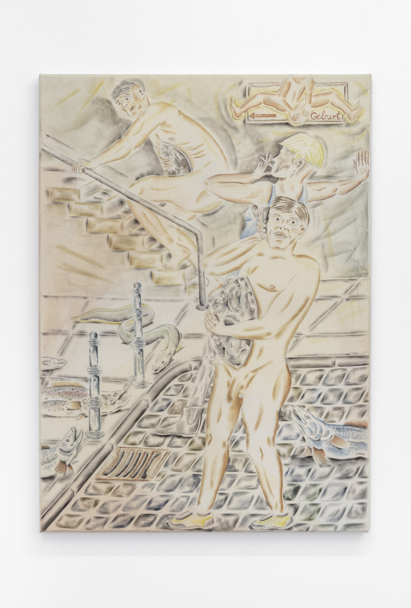 David Schiesser (b. 1989, Frankfurt) holds a degree in Fine Art from the Hochschule für Gestaltung (HfG), and has worked and lived in Berlin, since 2019. He creates narratives that are both conceptual and often humorously layered. His practice has a strong base in linear drawing and has expanded into various media, including tattoos, installations, video works, and recently shifted his focus toward painting. His work is regularly exhibited in diverse contexts, such as Spirale at JVDW Gallery (Düsseldorf, 2023), Drawing Wow 3 at Minus Eins (Vienna, 2022), Invasion der Geschuppten at DWDS (Bregenz, 2021), Might Go To Bern Later (Bern, 2021) and others.