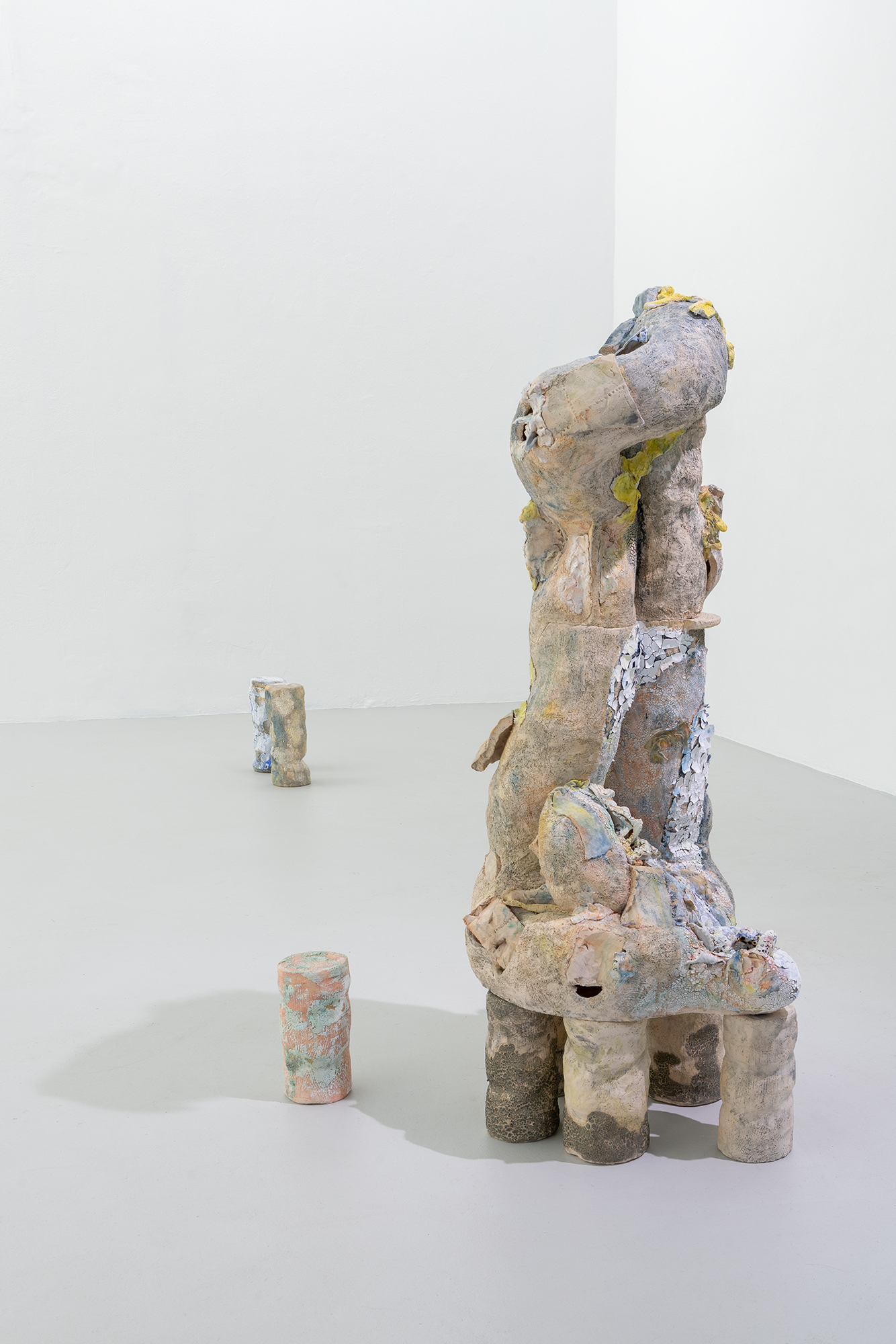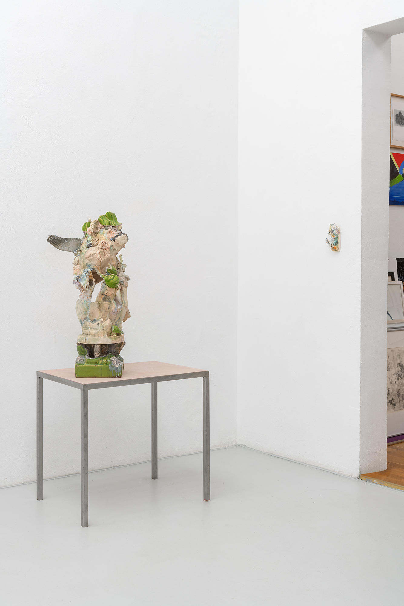 The resulting works appear fragile, but at the same time organic due to their shapes and the play of colours in the glazes. They mix found objects of different origins with self-created objects, playing with our subjective memories and moments of recognising figurative motifs.