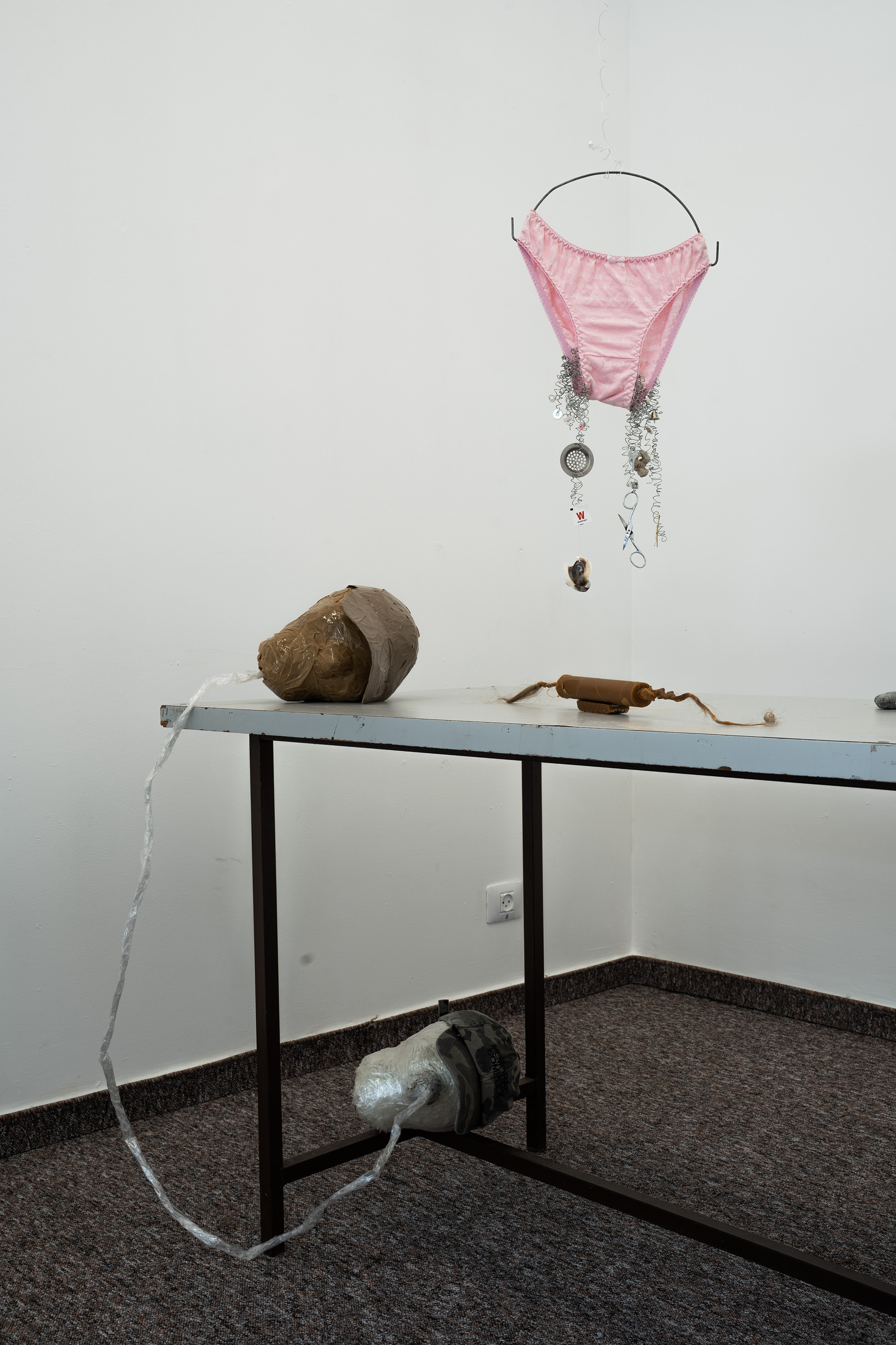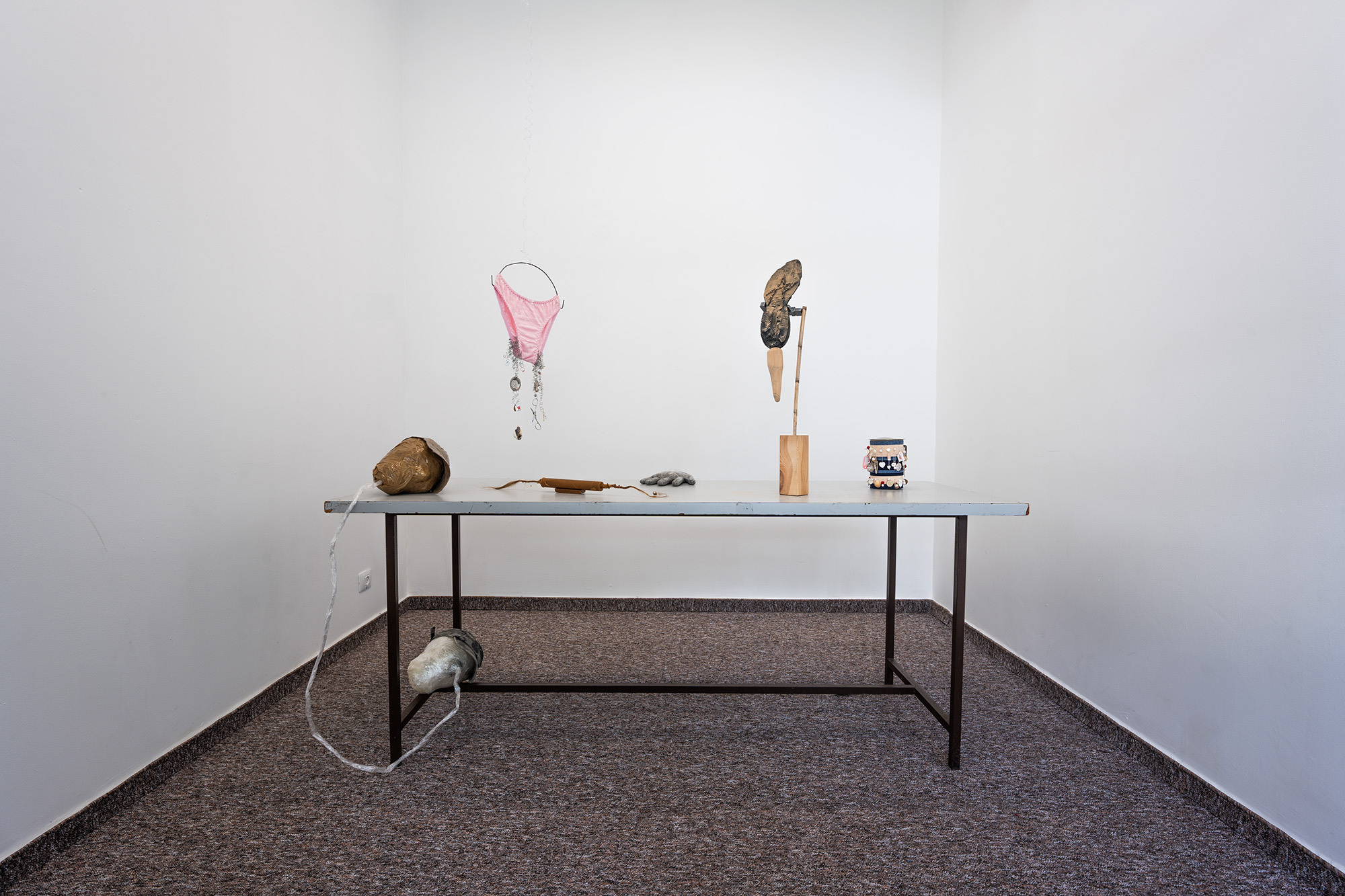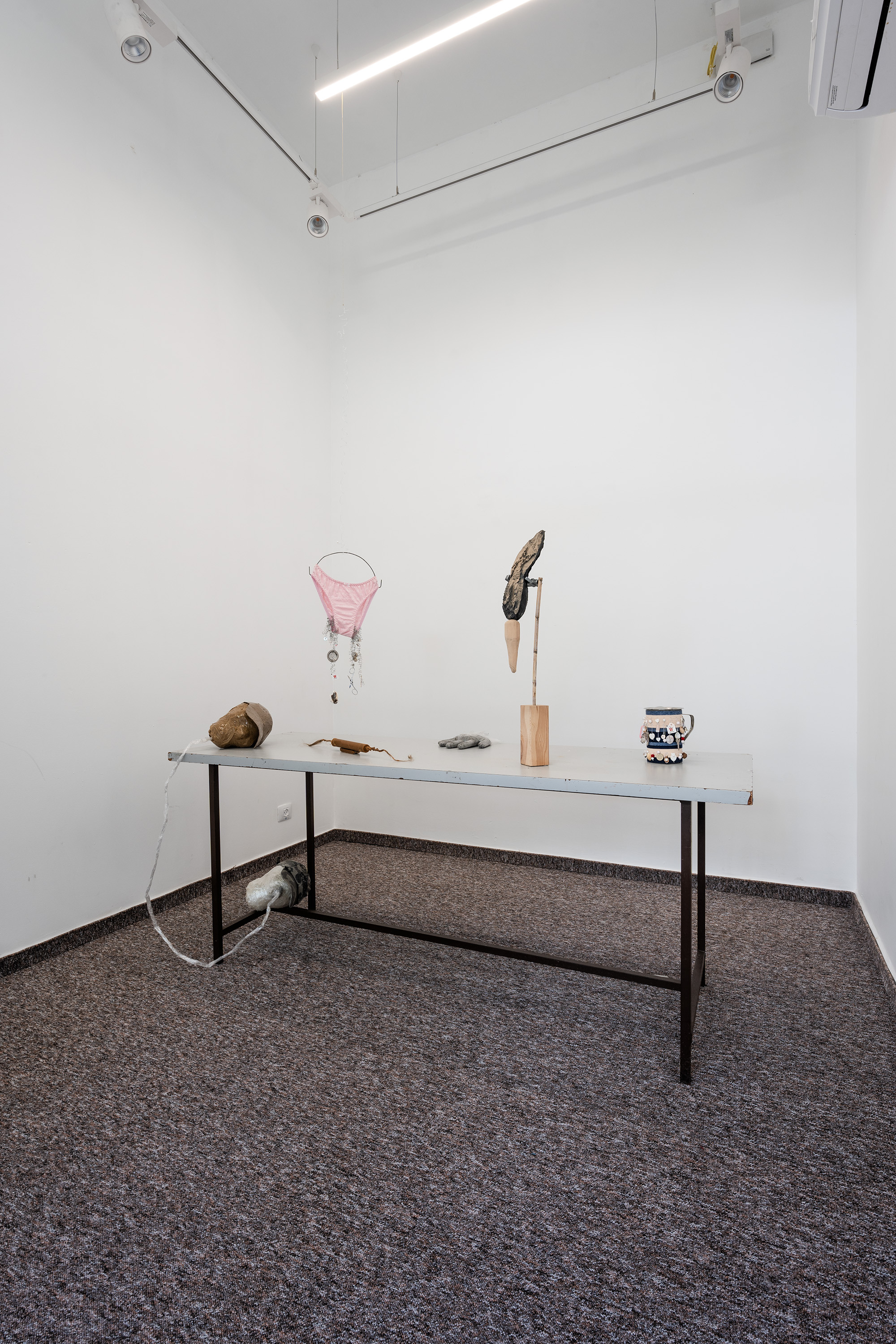 A joint exhibition set on a solitary display table in Taar Gallery. On this table is a map of objects created by the artists Naama Arad and Aleksei Taruts, presented as an inseparable whole, akin to an array of items from the disordered drawers of a delirious archaeologistâan erratic yet consistent hackerâs protocol.