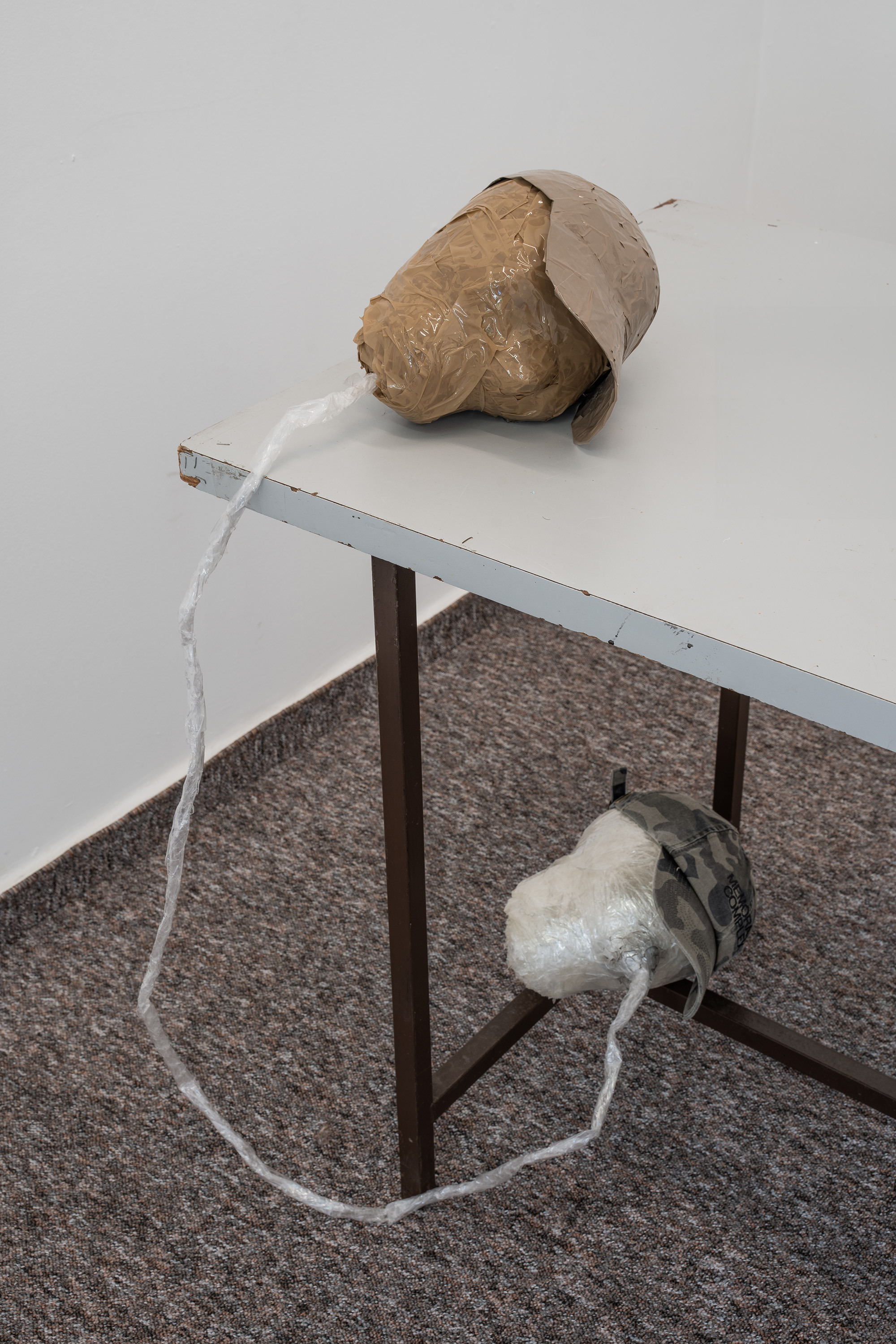 The sculptures by Arad and Taruts materialize as agents of industrial cults. Each artist, in their own way, interrogates the boundaries of realityâwhether it be Allenby Street, Super Yuda, Ancient Rome, the arms company Lockheed Martin, or the desertâuntil it folds into a dissociative archival display that yearns to testify to a desire to intervene in the order of things.