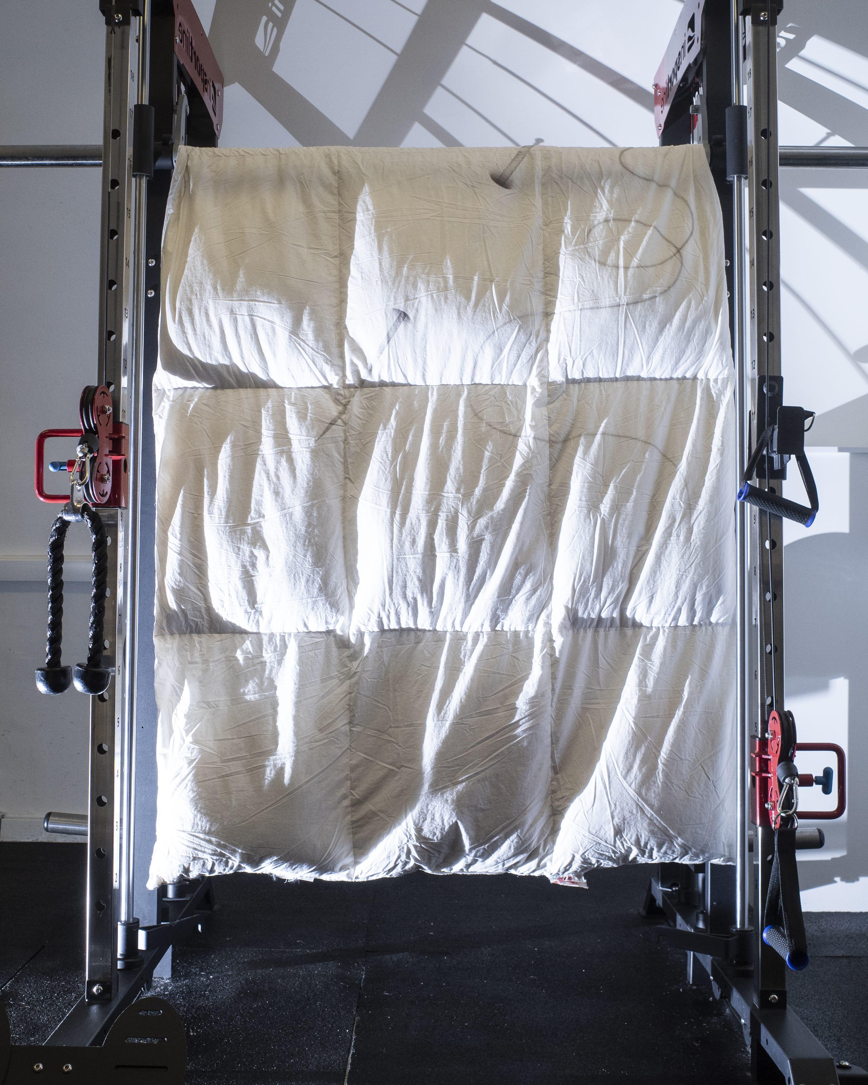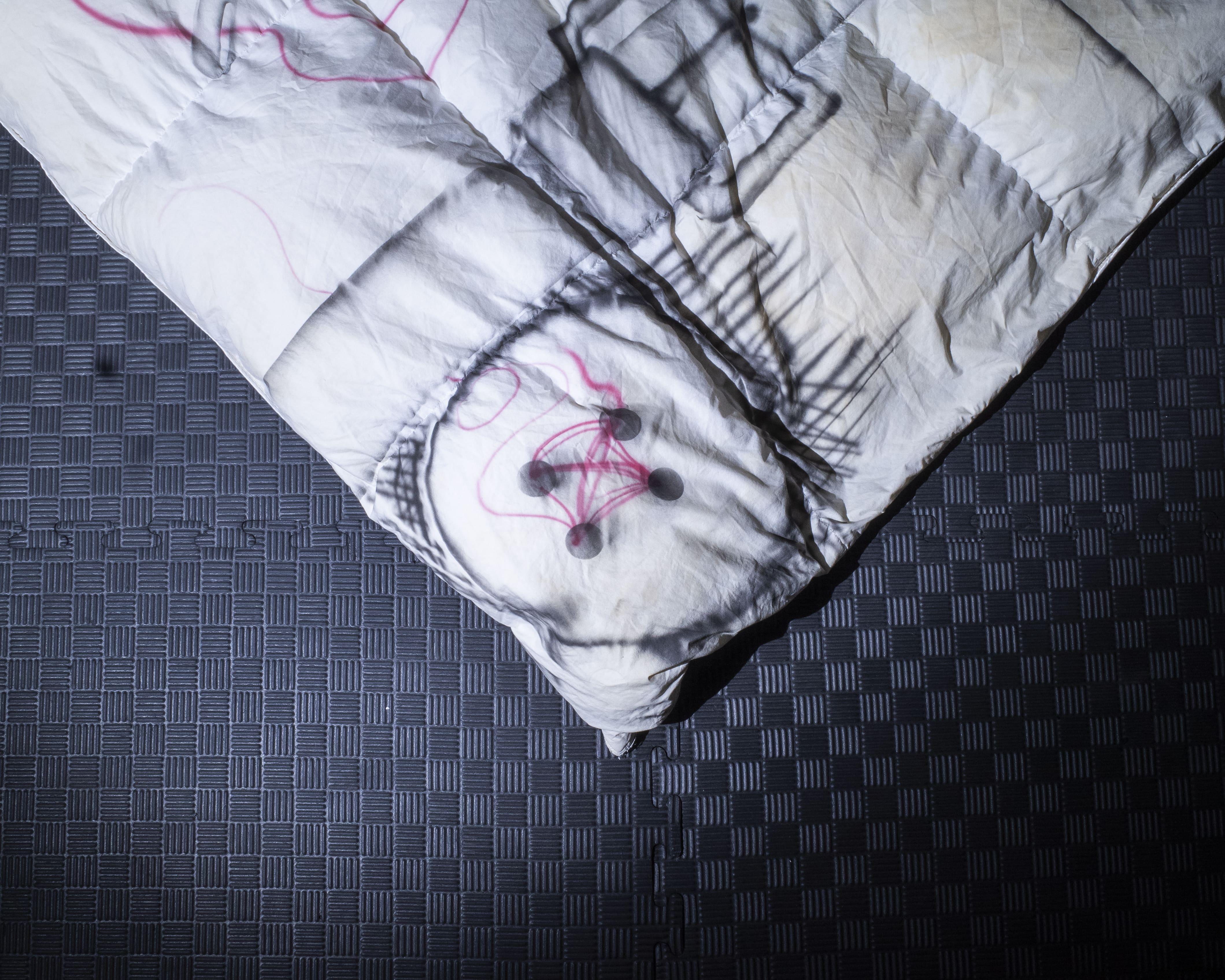 Painted duvets with decades old sweat stains and odors still stamped into them