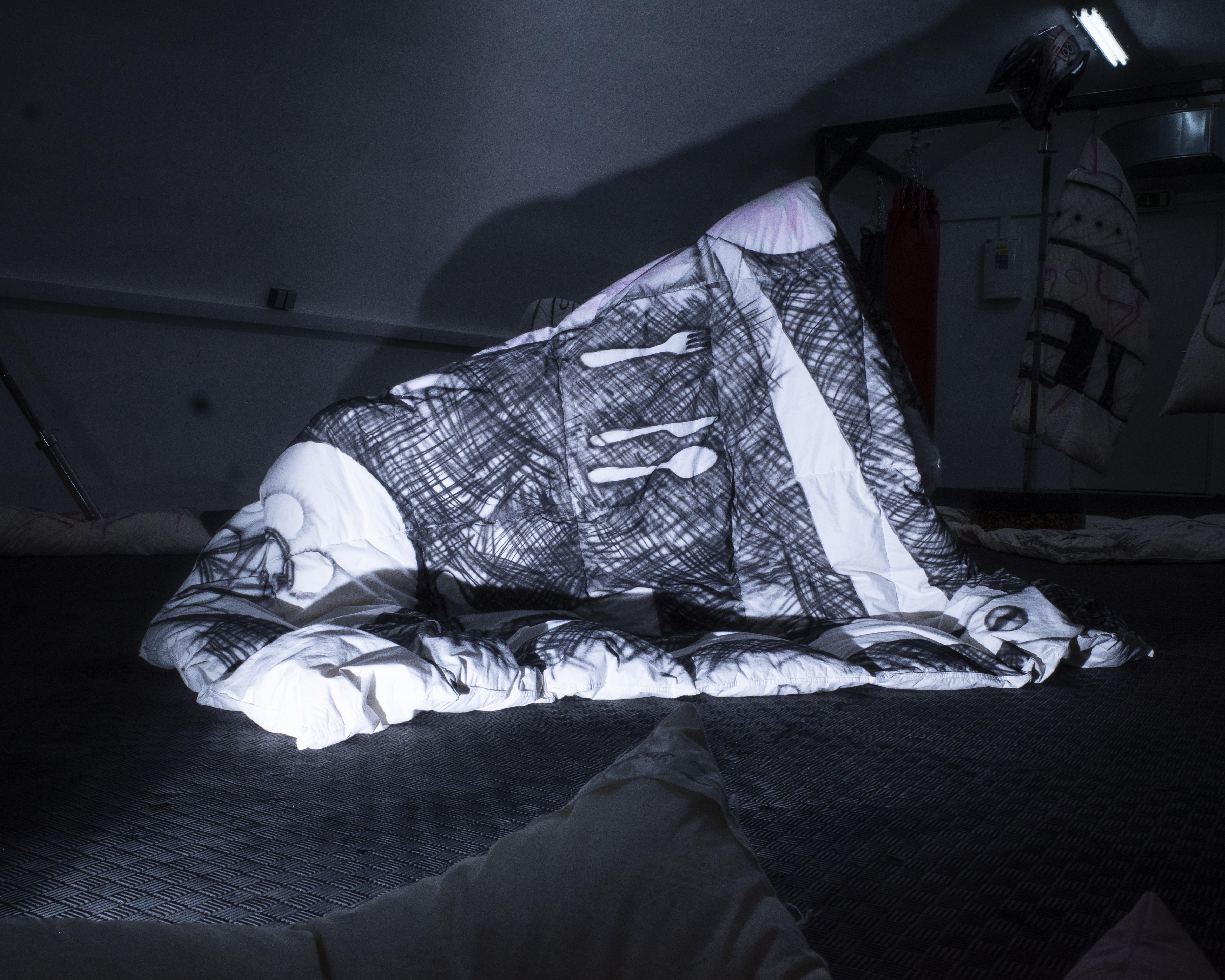 in the bed (at home). Bed, a stage for (re-)encountering memories, anxieties, night-