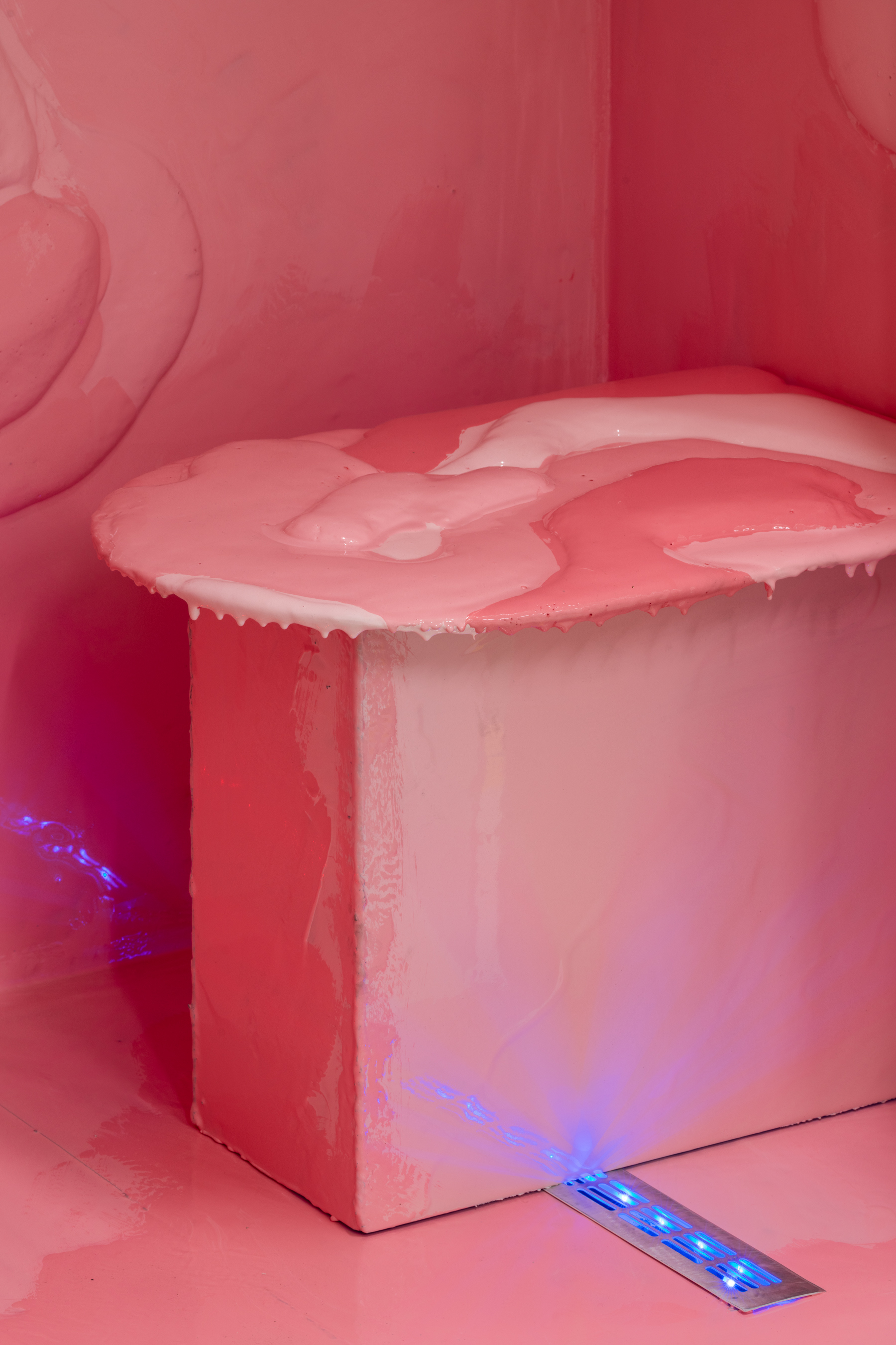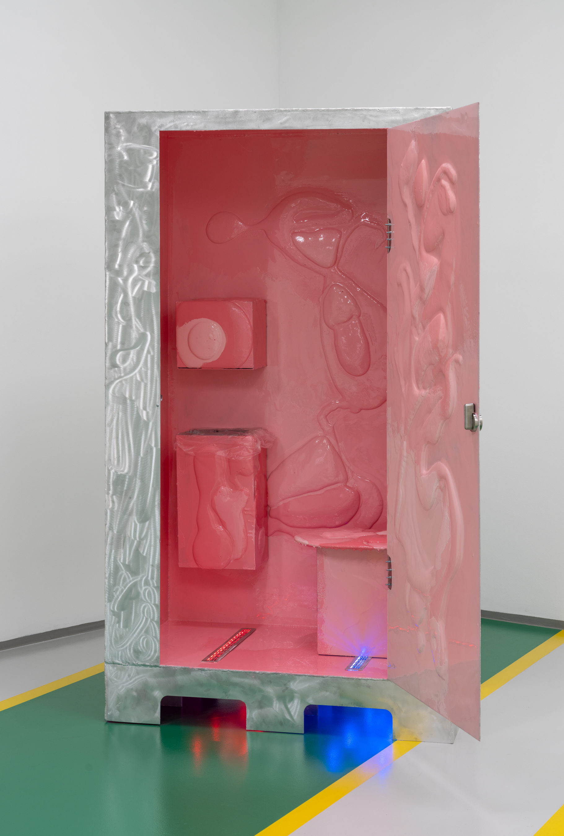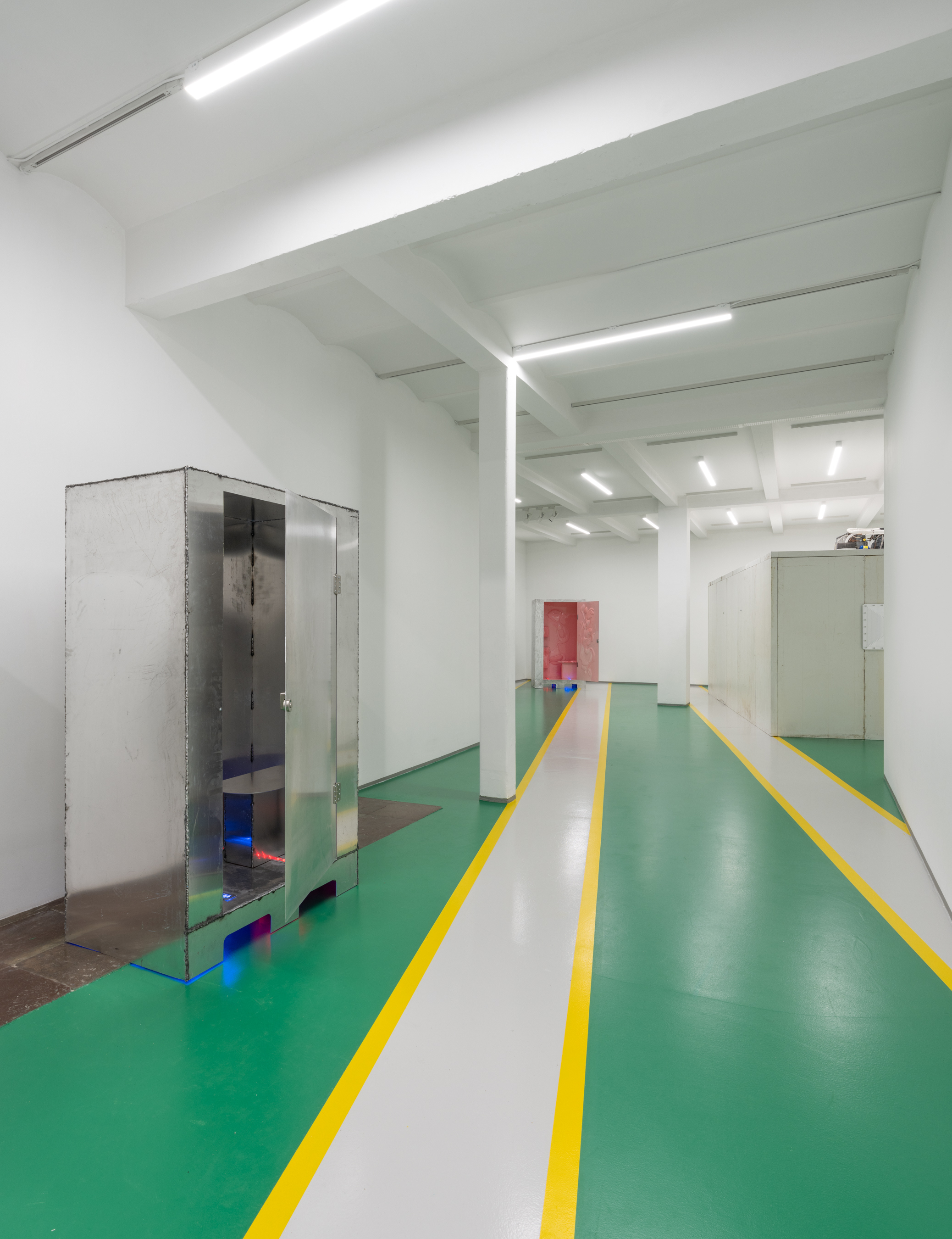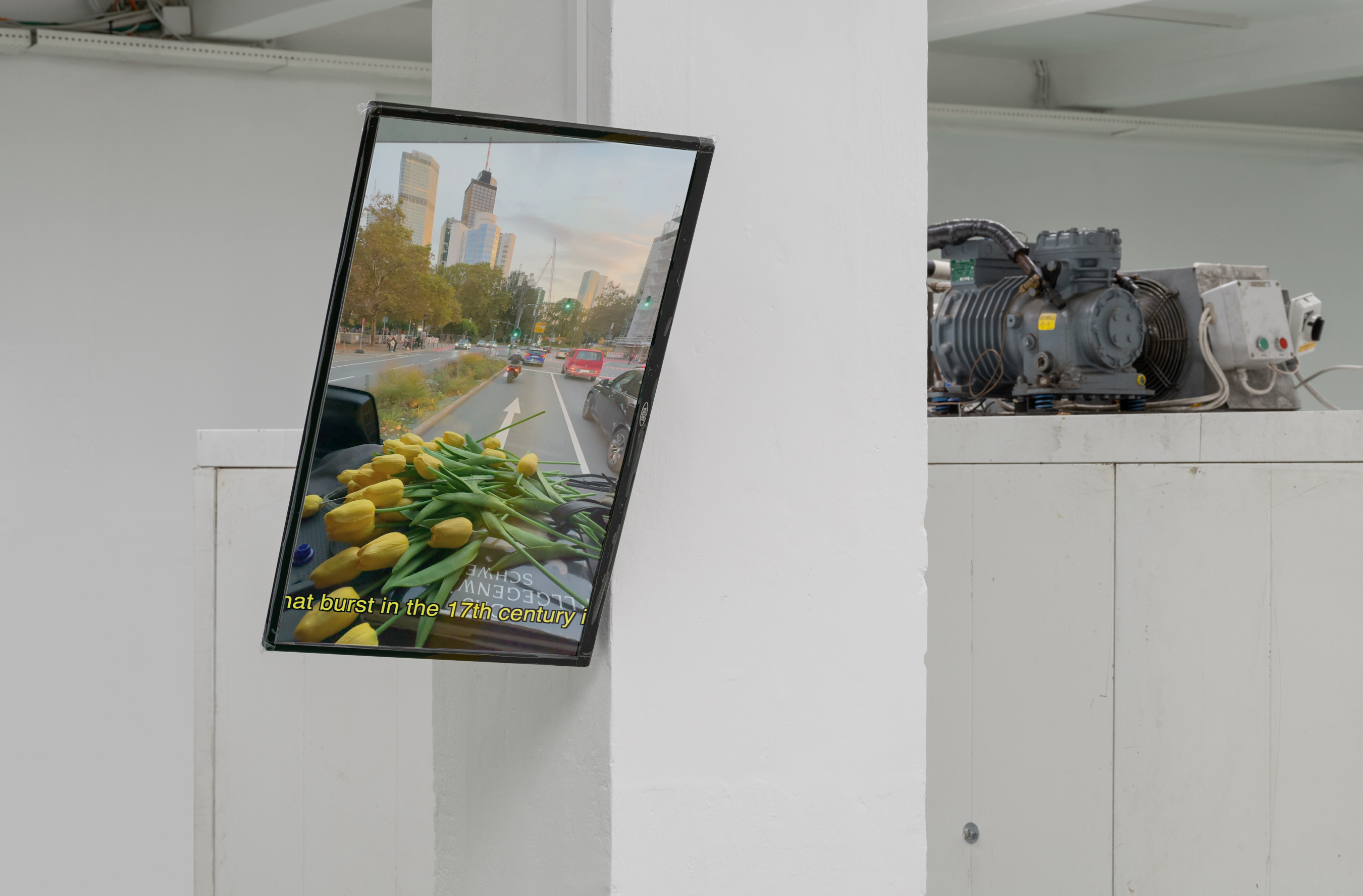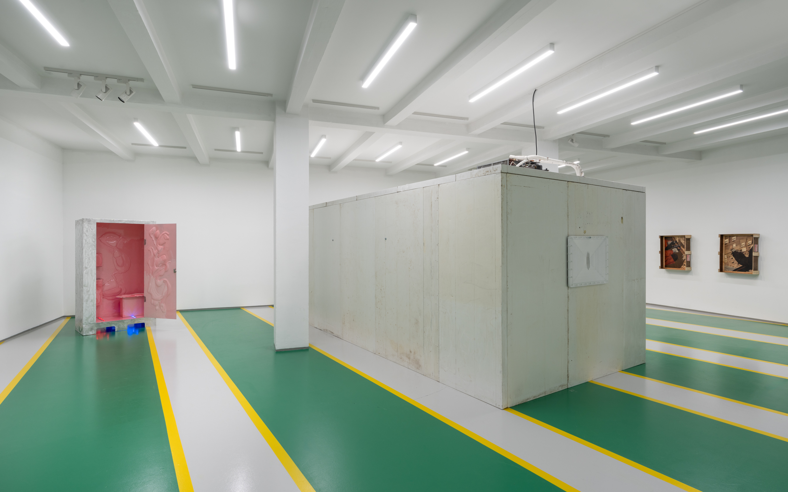 Queering familiar logistics—from transport industries to public toilets or pawnshop business—is core to Villiam Miklos Andersen’s sculptural and relational artistic work. For O—Overgaden, Andersen mounts the grand new project Caffè Crema. Trailing his own experience as a truck driver by borrowing the exhibition title from the cheap coffee one can choose at almost any freeway stop through central Europe, the project employs a multitude of objects—including an actual, ready-made coffee machine, hand-carved oak urinals, a stack of real-life carrots, flower decorations, a room-sized freezer, and slot machines made from cedarwood—to create a colorful grand-scale installation alluding to wholesale markets or free trade zones. Meanwhile Andersen’s sculptural jest of tweaking the different objects upends how consumer goods, or even zones of trade, reek of both male-dominated freight trains and uniformity of powerful infrastructures. Altering typical normative visual standards of commodities, Andersen thus exposes a systemic logistical regulation of mundane actions, purchases, and movement patterns often hidden in plain sight.