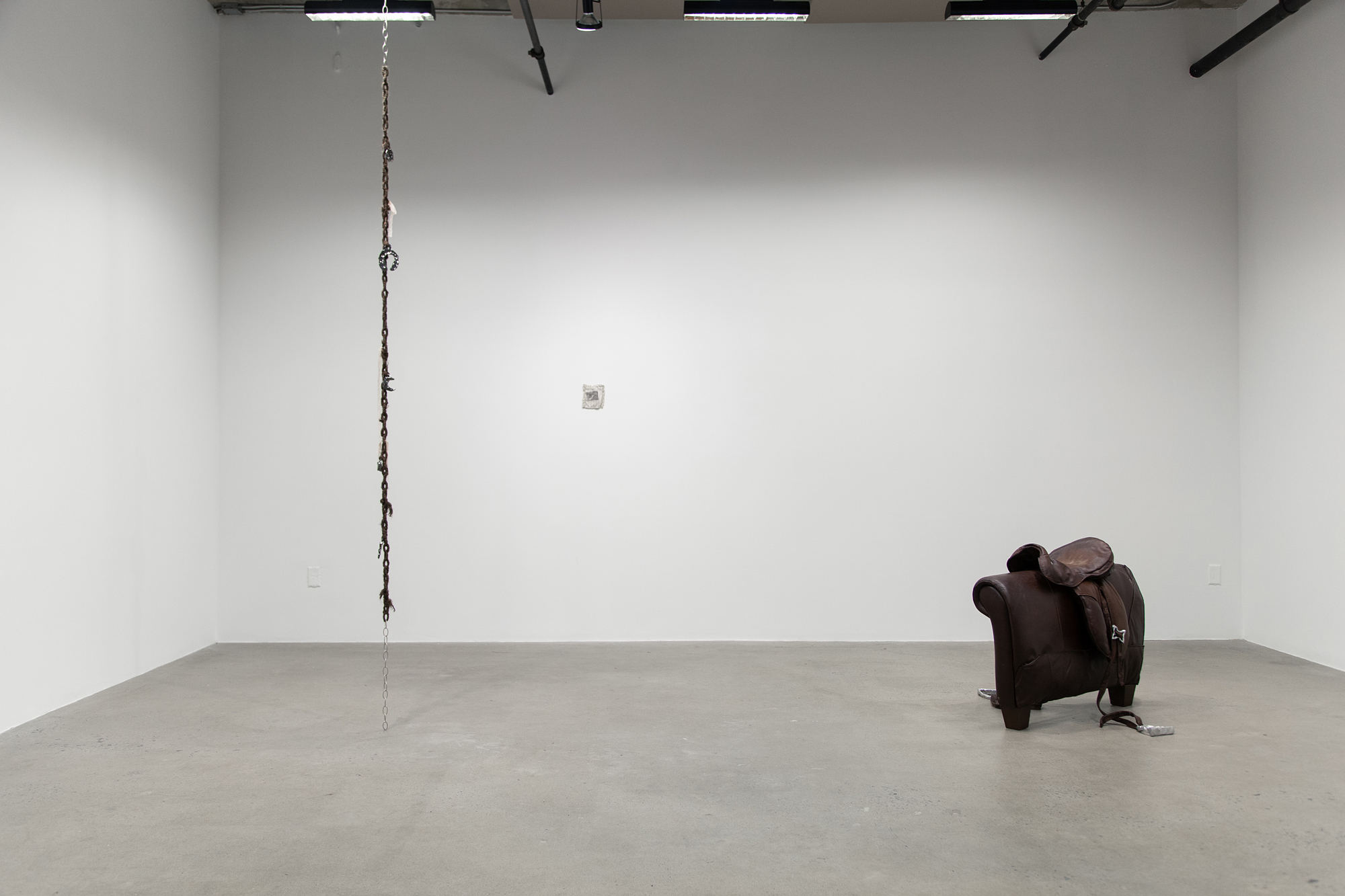 One of the key works in the show, Bridle fantasy, is a leather couch arm that has been remodeled into a saddle. The brown leather couch, a symbol associated with masculine spaces such as man caves or dens, is historically linked to passive pleasure and relaxation. Hill reconfigures it into an active, dynamic object that evokes a girlâs burgeoning sexual curiosity. The work echoes the provocative images the German-Australian photographer Helmut Newton captured in the 1970s, where equestrian gear served as props in stylized scenes of submission and domination. In Newtonâs work, saddles and harnesses transcend their functional roles to become potent visual metaphors for control, power, and desireâan erotic connotation that still pervades. Bridle fantasy taps into this fetishistic charge, while also commenting to the often-hidden ways in which girls discover intimate pleasure, and how the subdued, secretive experiences of female desire contrast to the open discussion of male sexuality. The piece also reflects the cultural trope of the "Horse Girl," the mostly derogative archetype of an introverted and socially awkward horse-obsessed girl. Reflecting on personal references associated with her sisterâs experience, Hill critiques how female passion and self-confidence are often shamed or ridiculed.