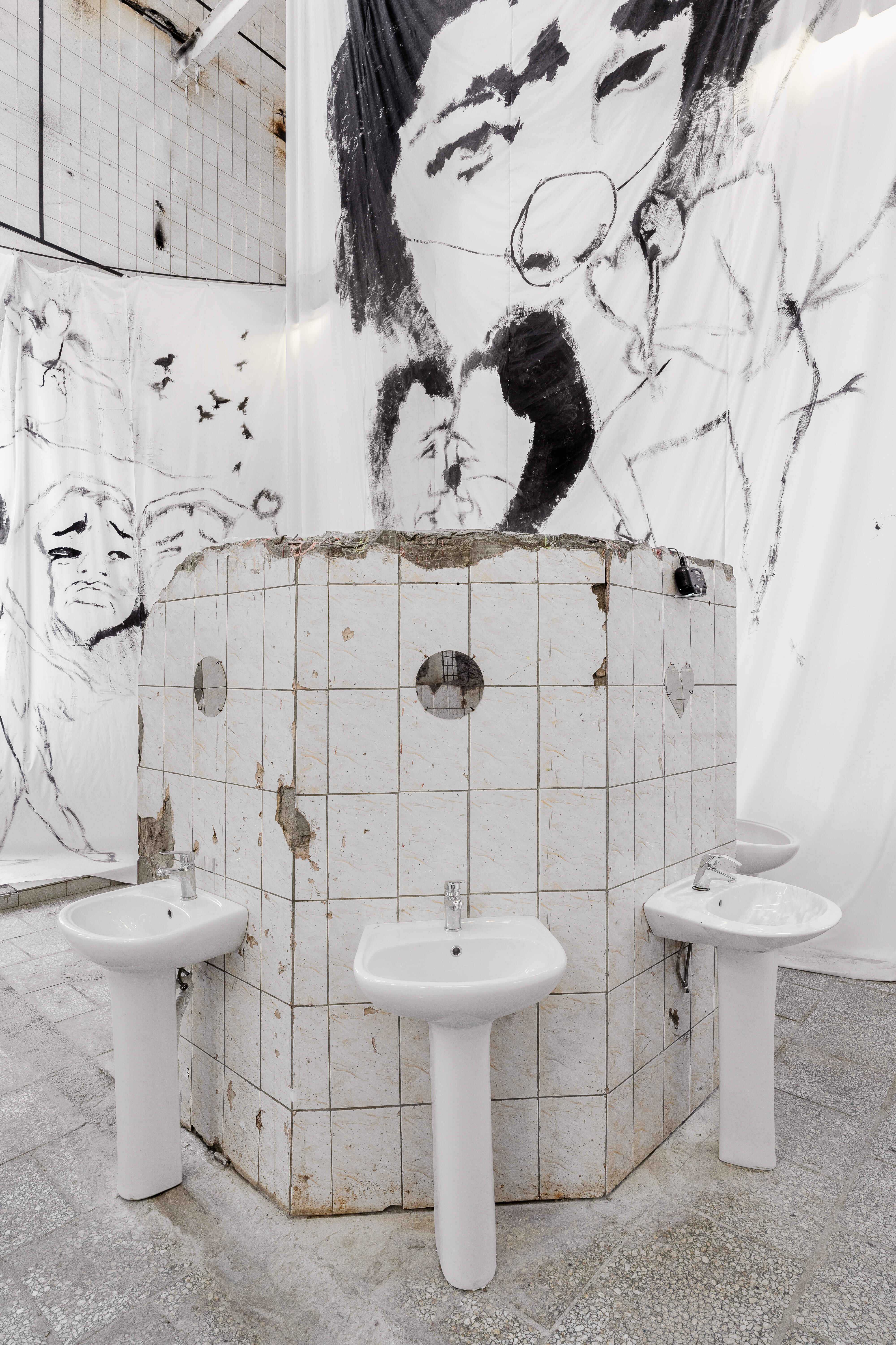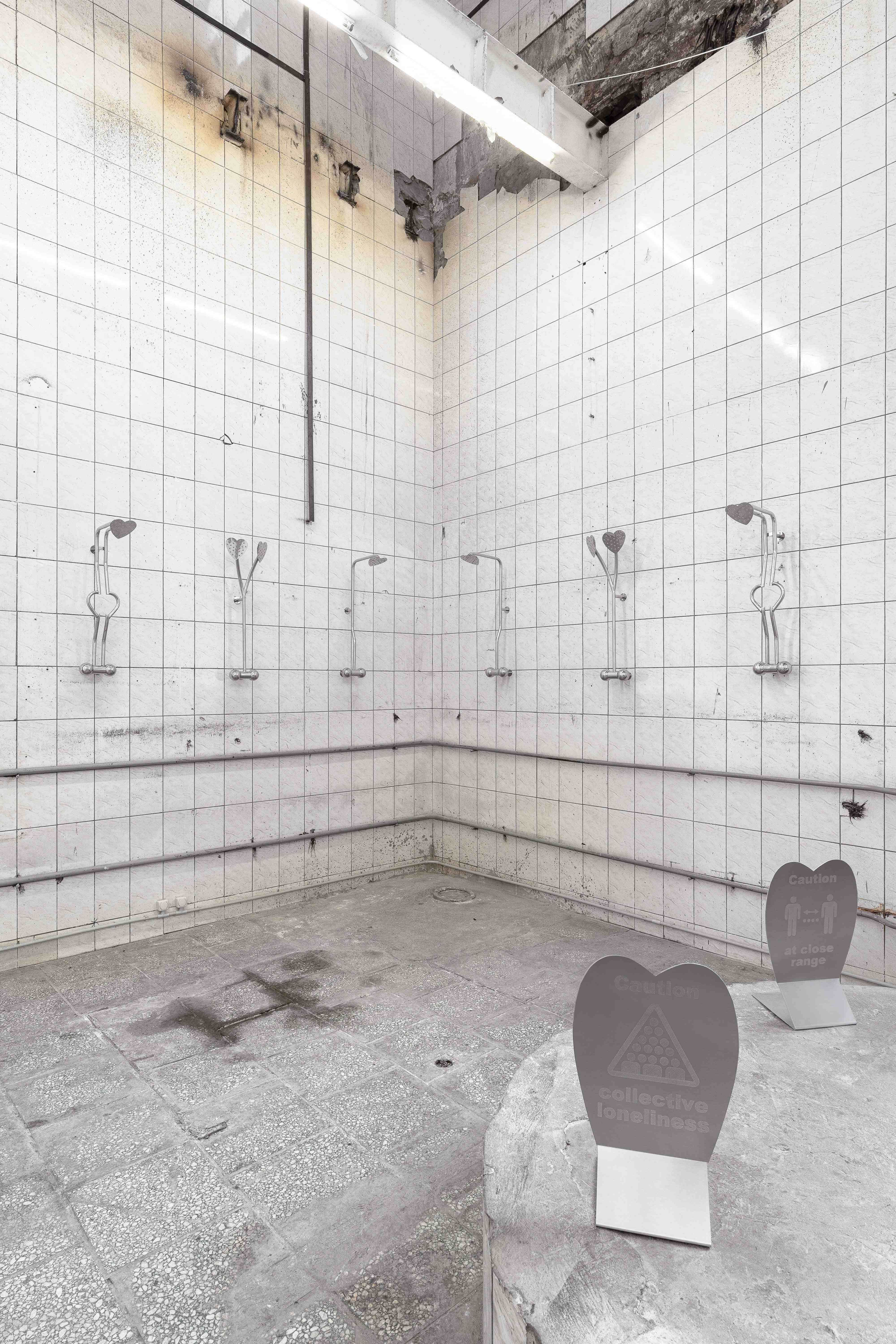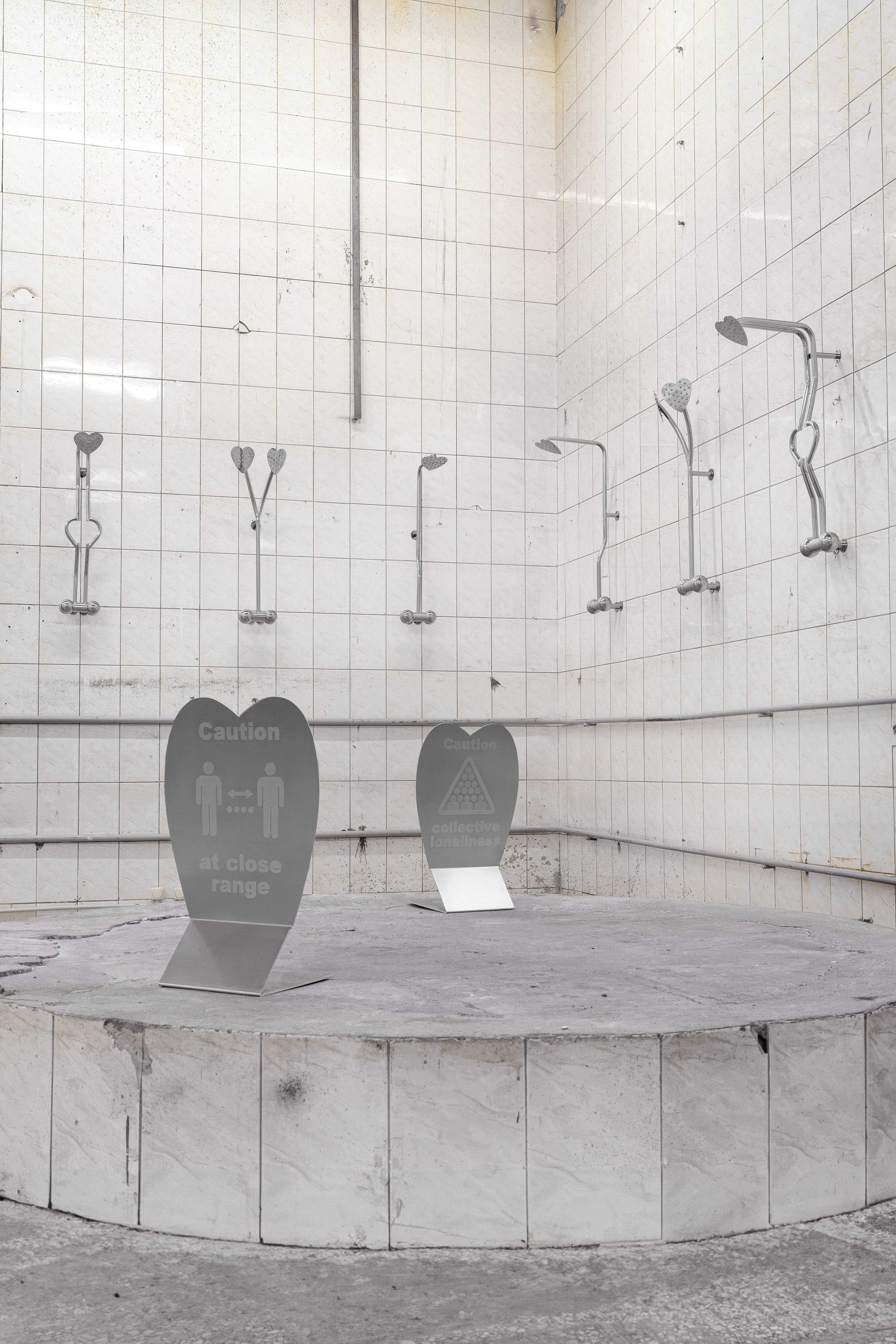 The exhibition presents the concept of a public shower as a boundary space of "noisy intimacy" – a state where personal emotions and experiences become accessible to strangers. A space of intimacy and collective solitude. Paradoxical closeness through public vulnerability.