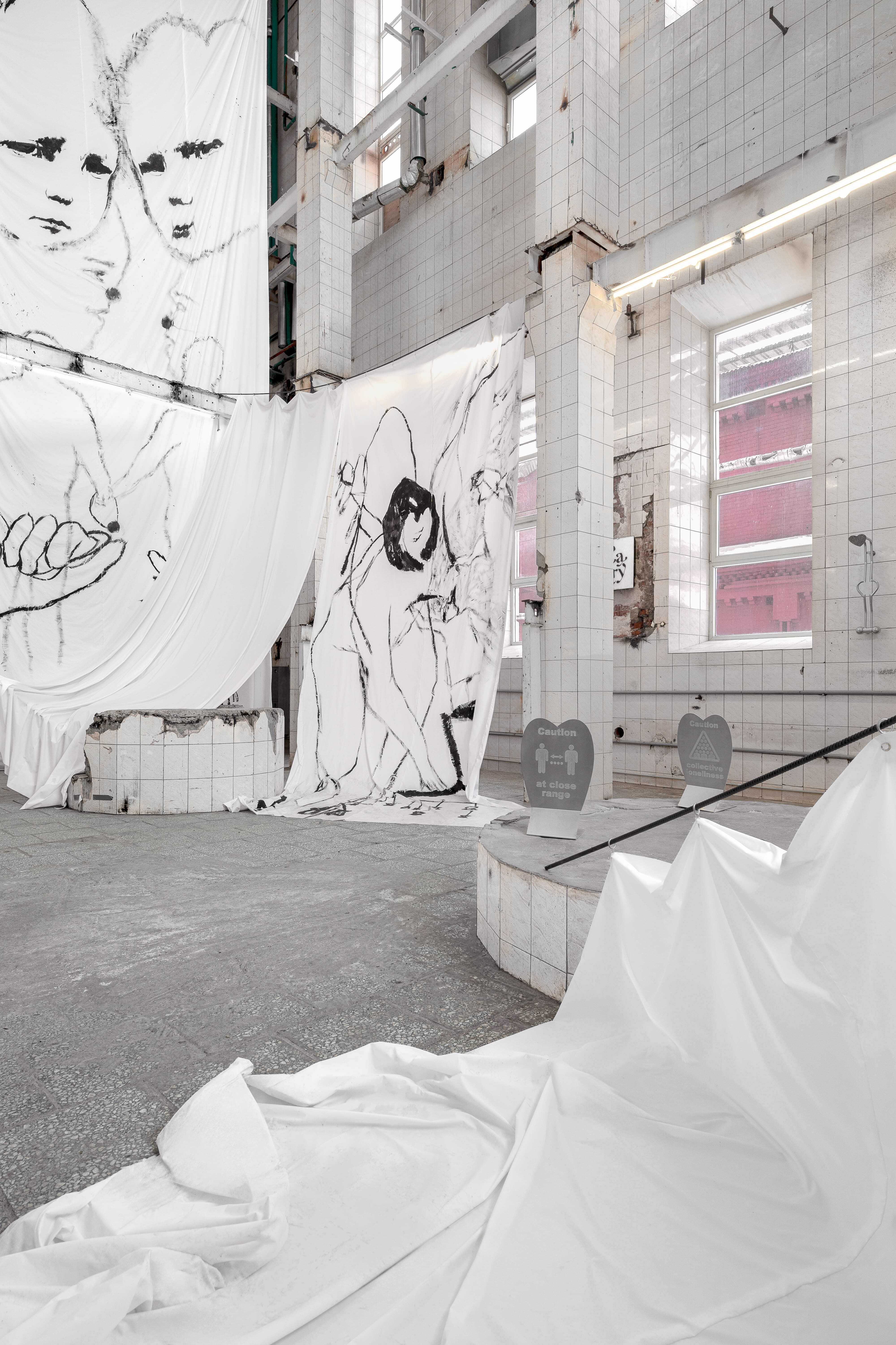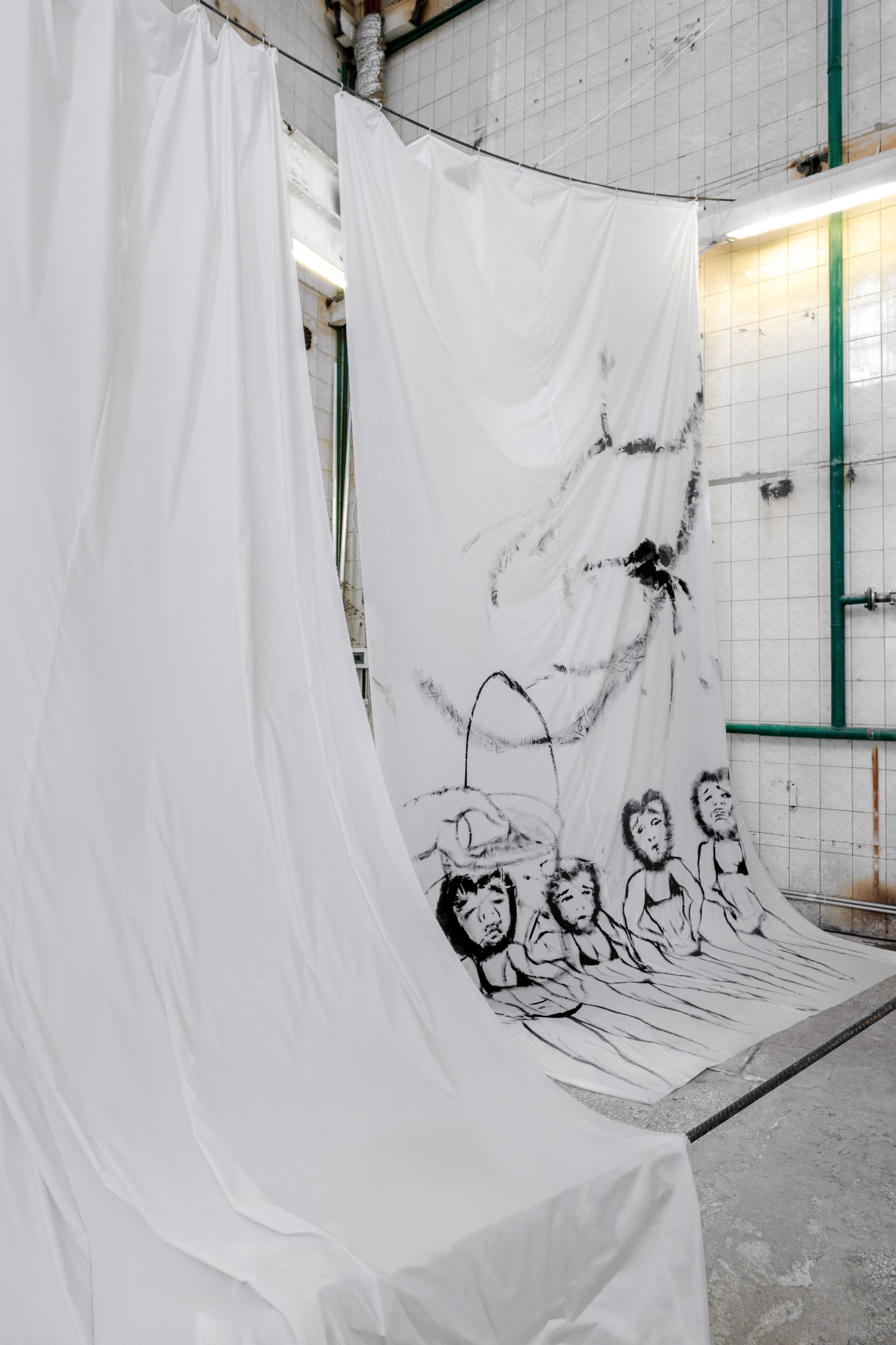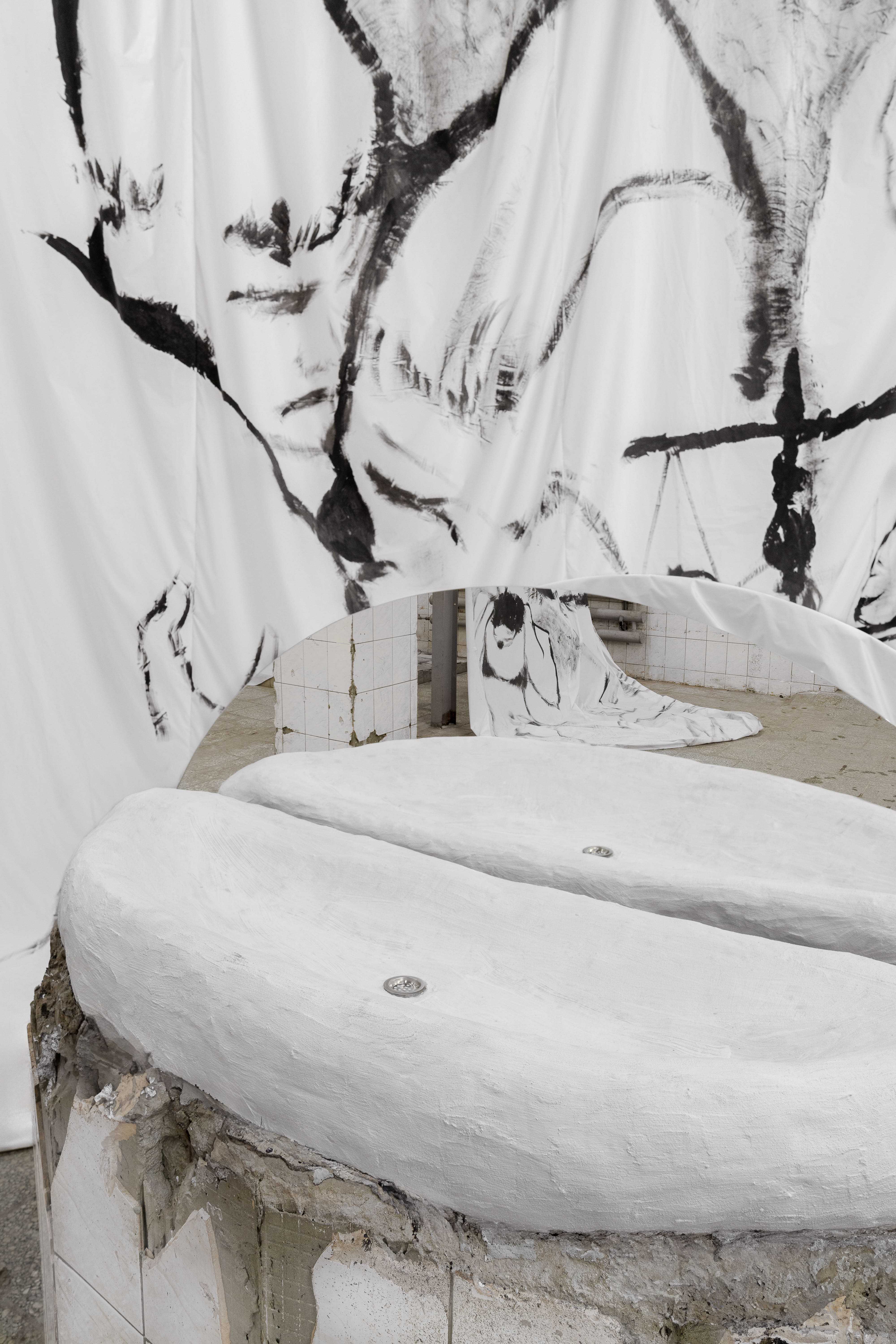 The exhibition presents the concept of a public shower as a boundary space of "noisy intimacy" – a state where personal emotions and experiences become accessible to strangers. A space of intimacy and collective solitude. Paradoxical closeness through public vulnerability.