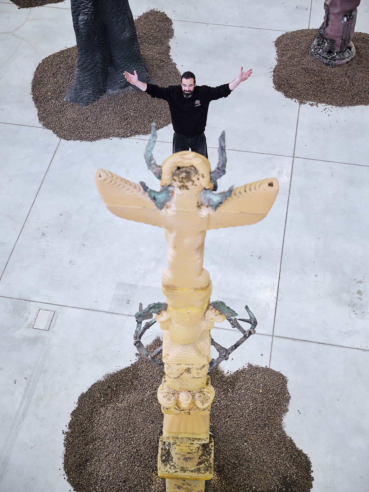 In his work, Matyáš Chochola, like Matthias Braun, often balances between irony and seriousness, between provocation and deep symbolic meaning. However, Chochola’s new project can also be compared with contemporary foreign artistic production. It seems even significant that artists who have committed themselves to working with 3D printing are very often engaged in reinterpreting mythological themes. Anish Kapoor, Damien Hirst, Thomas Demand and Daniel Arsham all, like Chochola, use modern technology to create works that evoke mysterious and timeless symbols, quoting icons from ancient cultures, exploring memory and creating modern archaeology.
