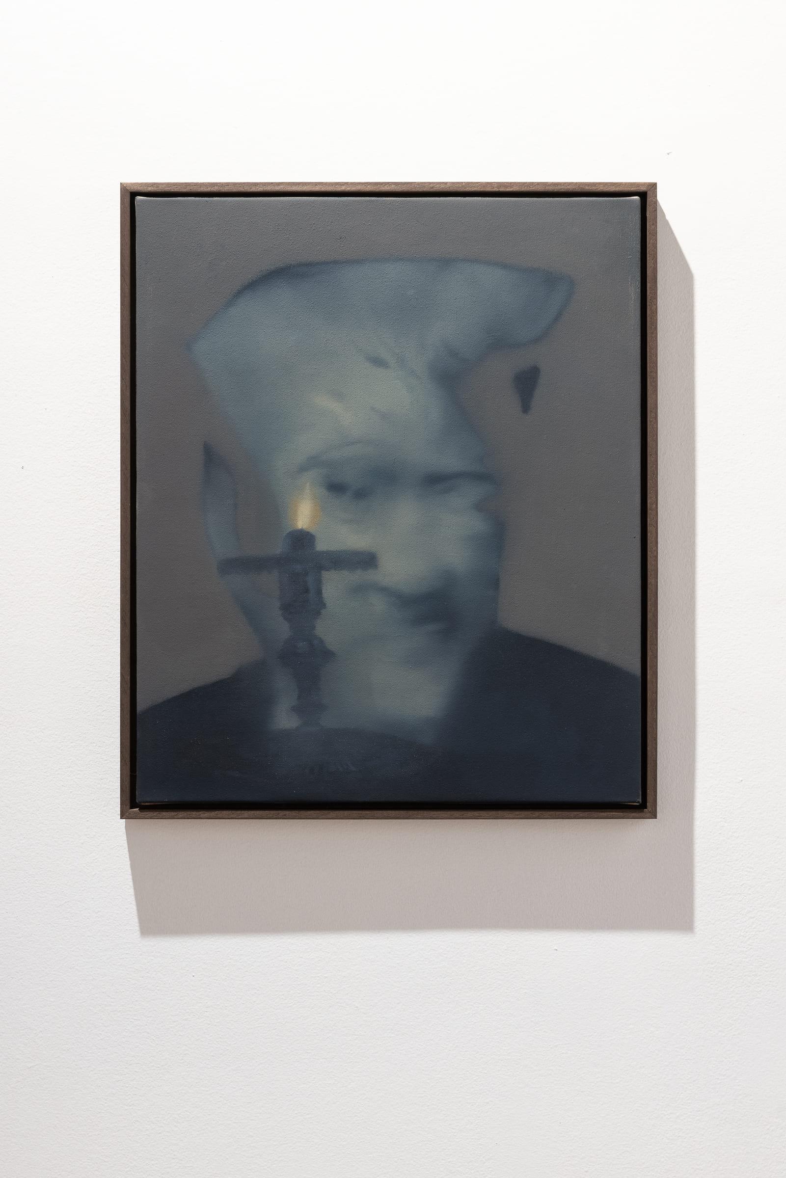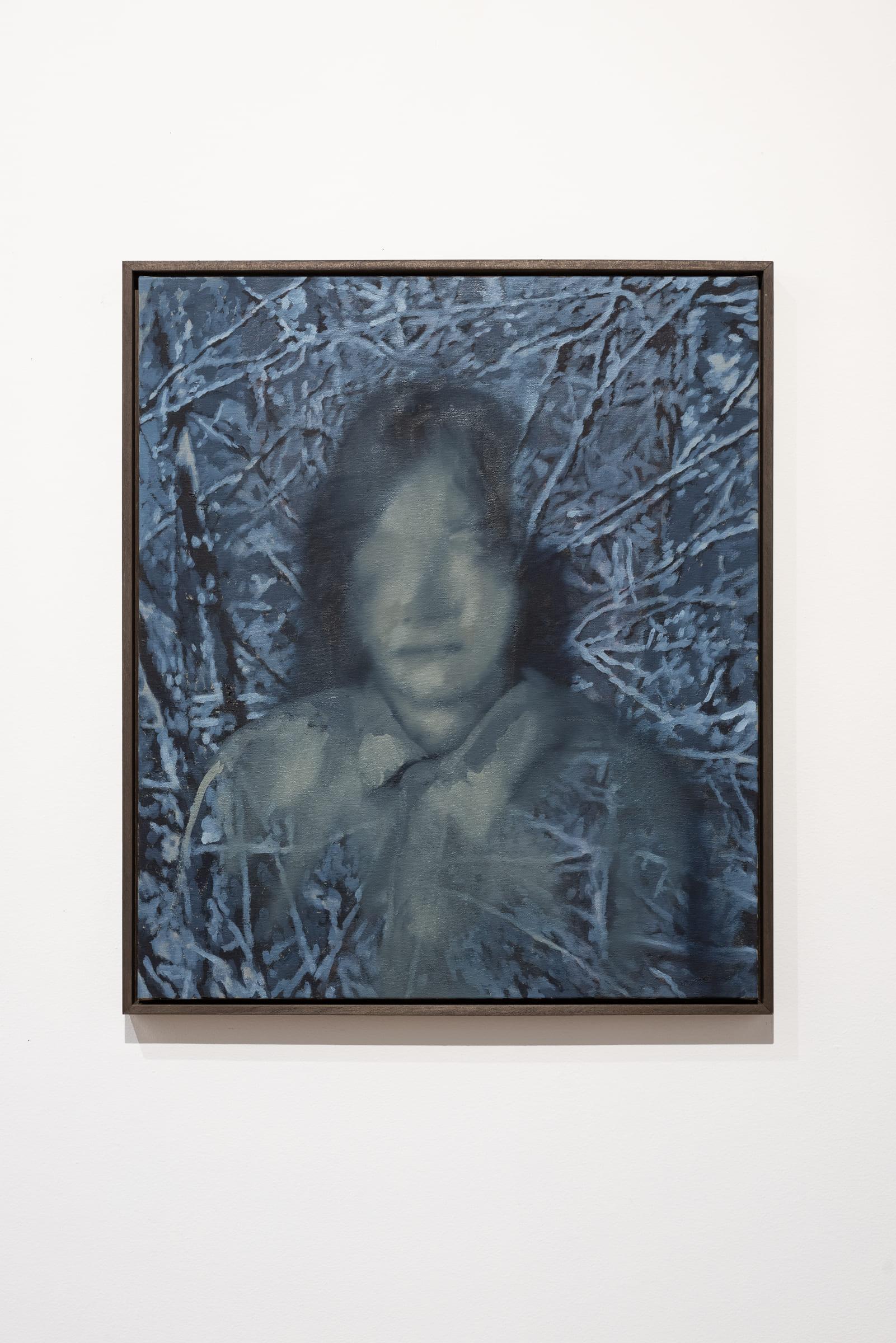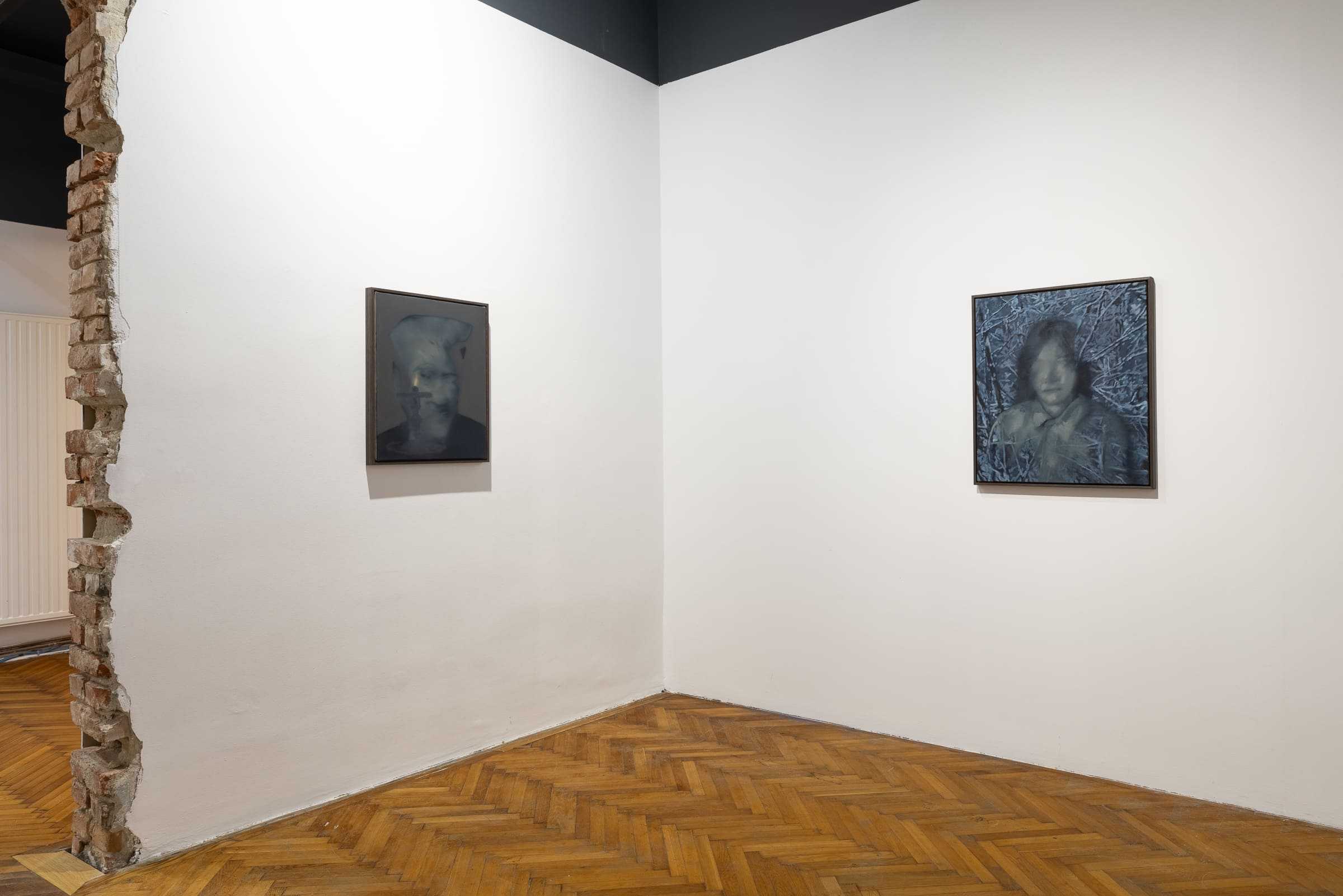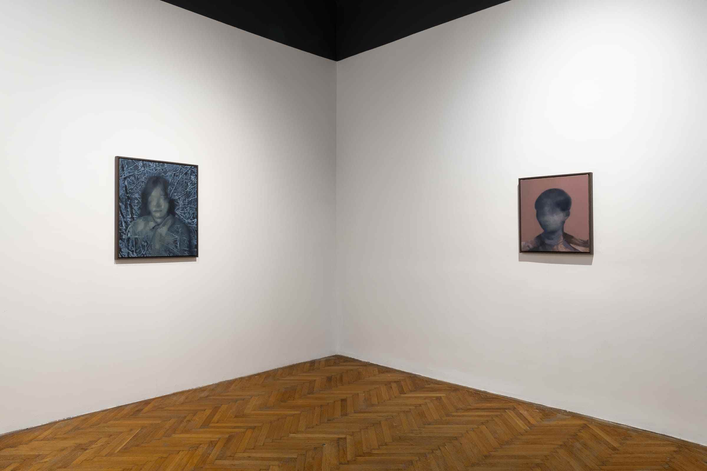 The first room, a room full of portraits, appears as a symbolic domestic settingâimages of loved ones or ancestors hanging in a home. Luca Florianâs portraits convey a distortion of reality, a desubjectivization, because many of them appear indefinite, some lack the mouth, the eyes, or any feature that could bring emotion. Thereâs a sense of warmth and recognition, but the portraits can quickly turn into something strange, an unsettling tension between the warmth of domesticity and the coldness of being observed, always defined by external forces, by other peopleâs intentions that dictate how we perform our identities within the spaces we occupy for their need of closeness.