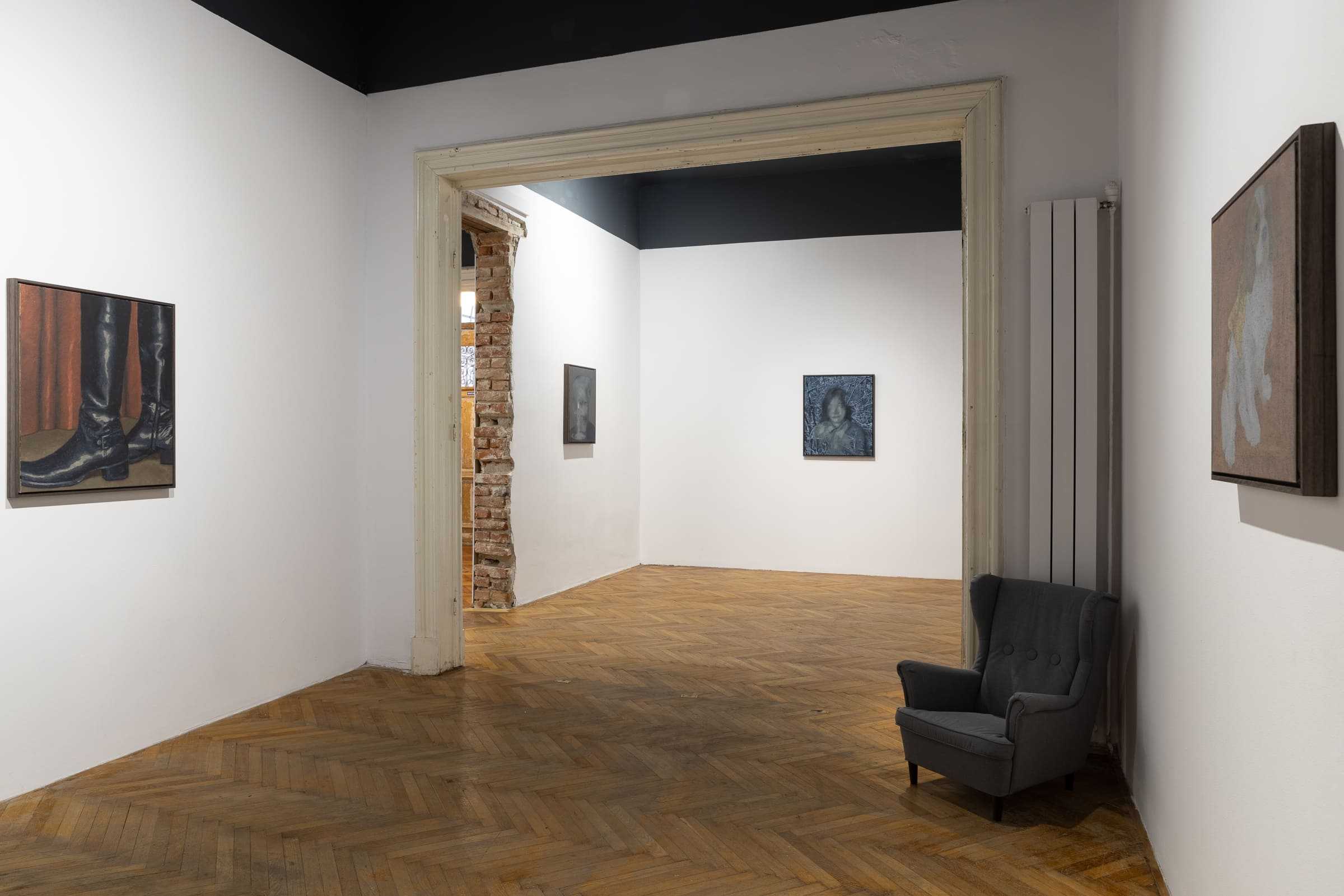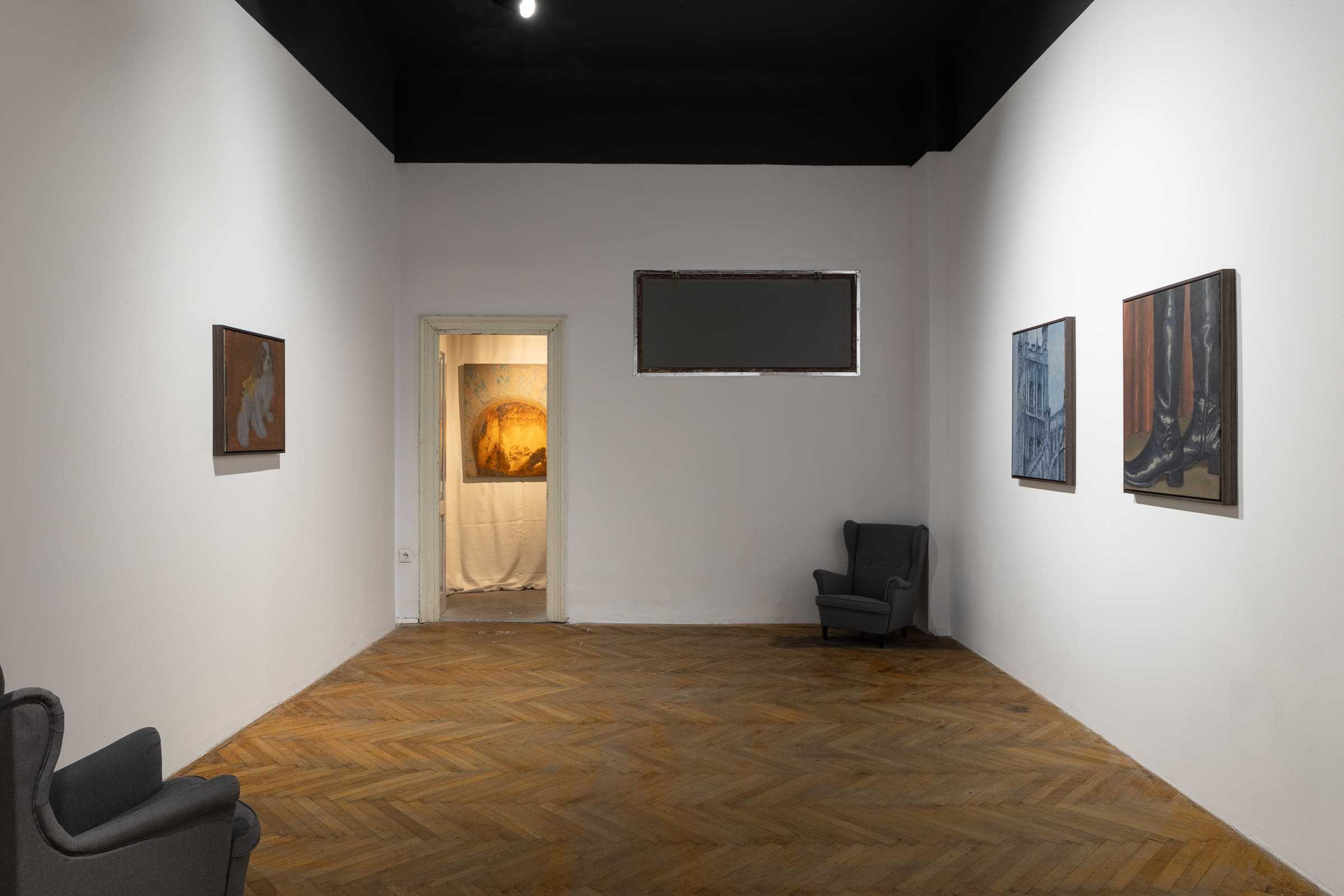 The space choreographs movement, enforces ideologies, and silently maps the power structures of our lives. In the livingroom shadows burn engages with this force, staging a double solo show that unfolds as a spatial disobedience. Split between two places, PosibilÄ Gallery and Zina Gallery, the show follows how artworks mutate as they cross thresholds, shifting between the intimate architectures of private life and the constructed neutrality of public spaces. PosibilÄ Gallery mimics the layered intimacy of a living room, while Zina Gallery is reframed as a Salon, akin to the historical concept of it. At PosibilÄ Gallery, Florianâs paintings are as natural and necessary as anything around them. The works carry an unusual familiarity, humming with the presence of their surroundings. They are not merely seen but lived with, reflecting intimacy, introversion, and the quiet unease of being annoyed by your own environment. In this setting, the paintings look backâthey assert a sentience, a coexistence, a quiet defiance to the idea of being thought of as mere objects.
