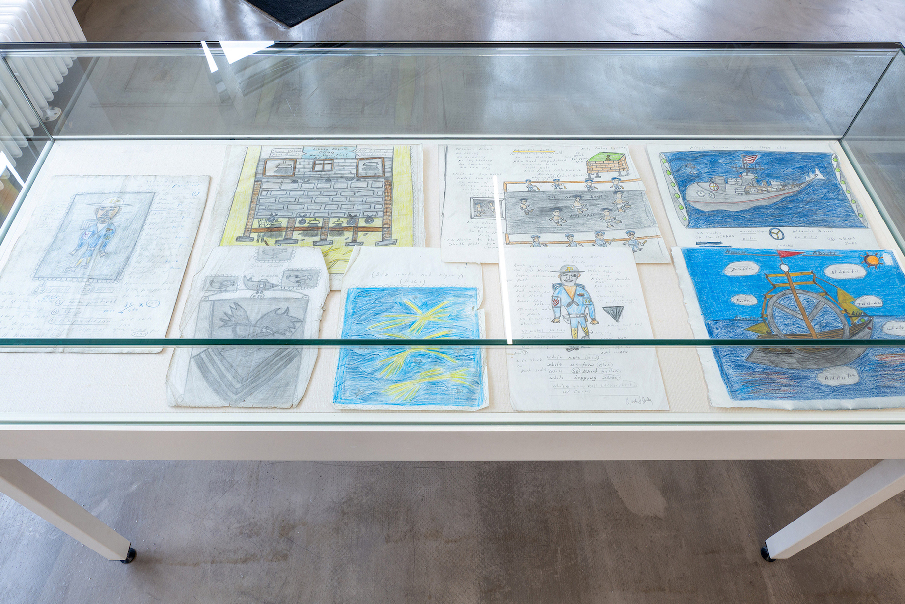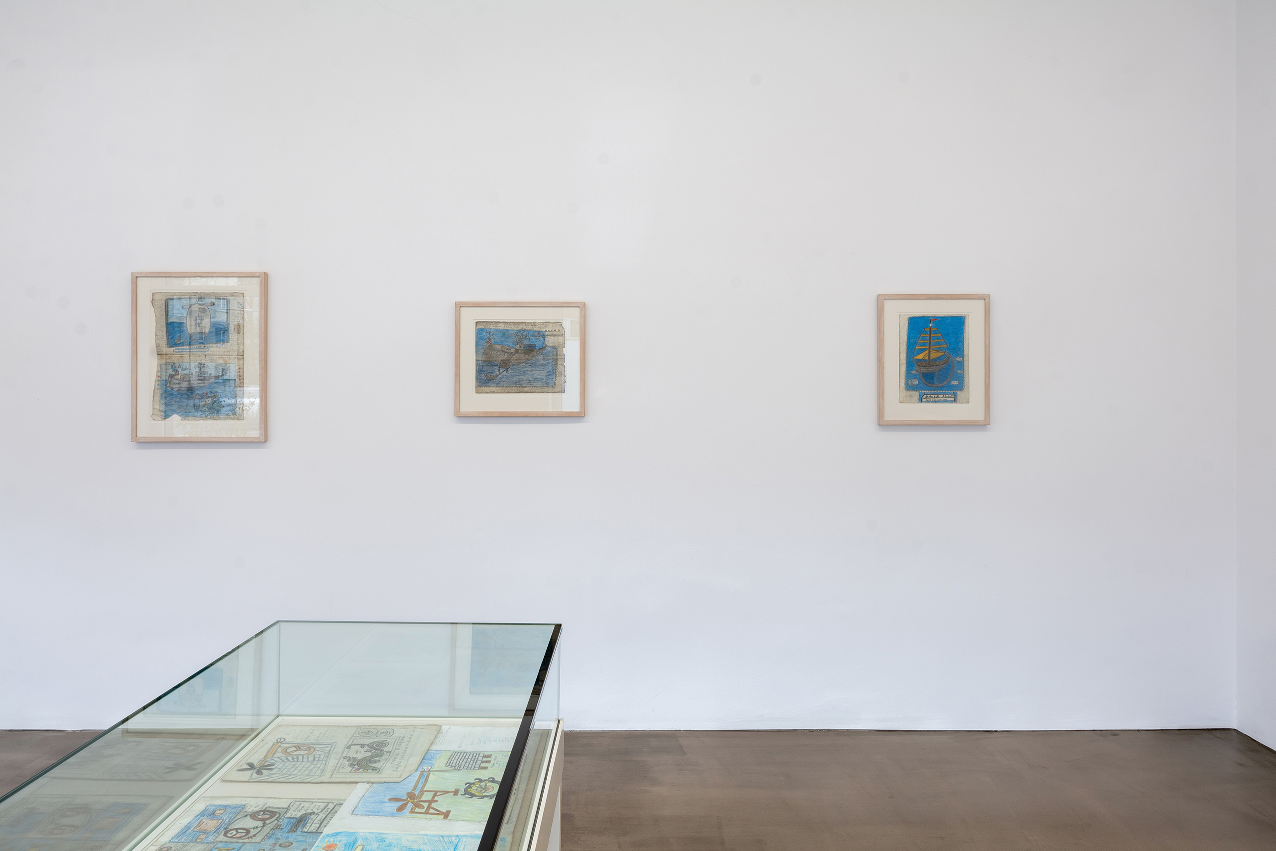Fairleyâs drawings are autobiographical, recalling his time in the Navy. They show the places he visited, the seas he saw, or the warships on which he served. They are matter-of-factly sketches, often with annotations. In works like Stuffed Tomatoes (ca. 1987) or Baked Blue Fish (ca. 1987), Fairley also depicts the meals that he served the crew. In firm, lucid pencil strokes and brief descriptive labels, the artist shares his experiences with the viewer. These sober-minded images contrast with the drawings that show combat: the launch of a projectile in Missile Firing 1 (ca. 1987) and Missile Firing 2 (ca. 1987) is rendered with such graphical momentum that one can almost hear the booming noise. The hatched lines Fairley uses to convey the sceneâs intensity shatter the neatly marked edges of the picture and cover them with a cloud of smoke.