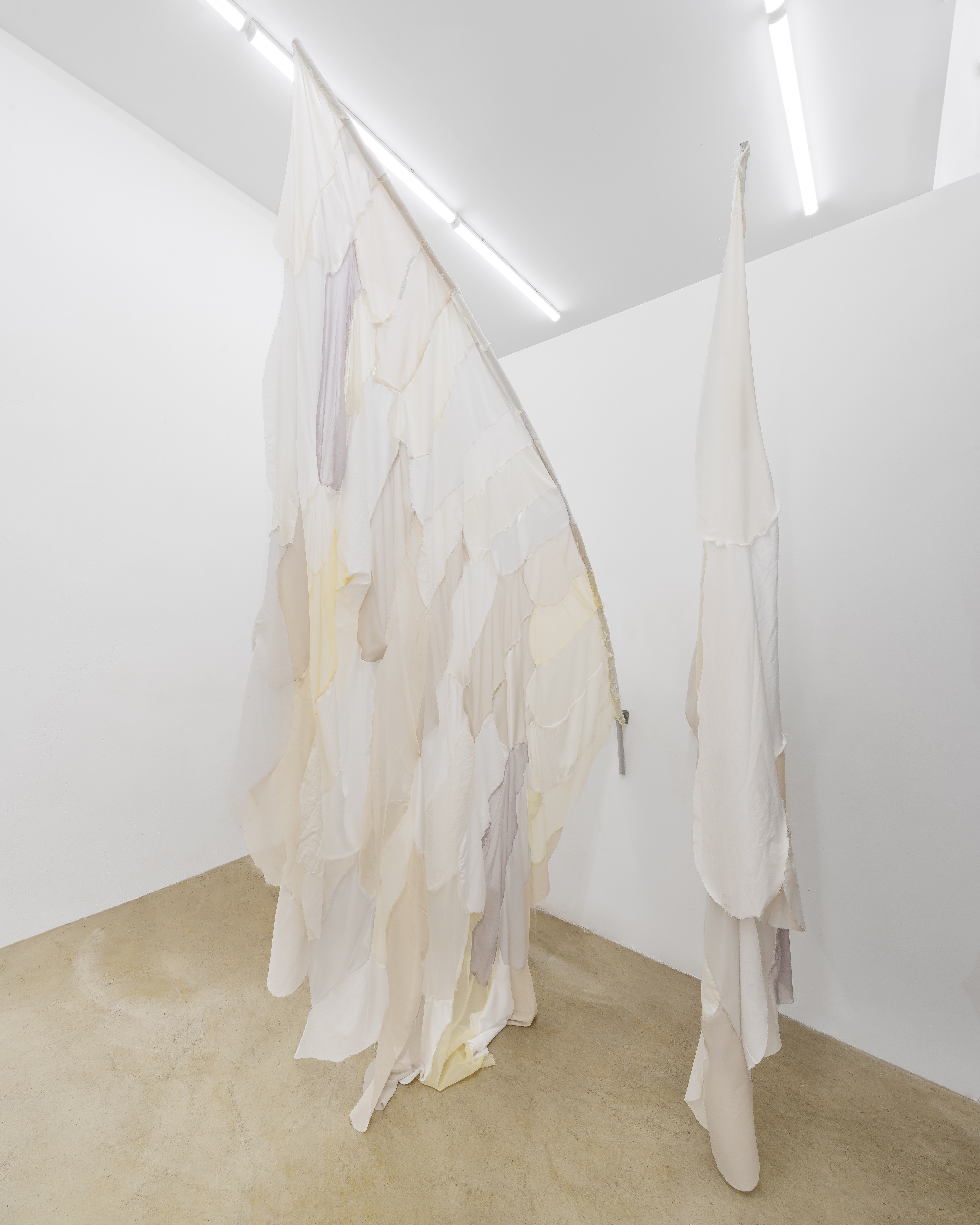 Matteo Nasini, True love will find you in the end, 2025, Fabrics, thread, PVC, 270x240 cm and Matteo Nasini, True love will find you in the end, 2025, Fabrics, thread, PVC, 180x220 cm
