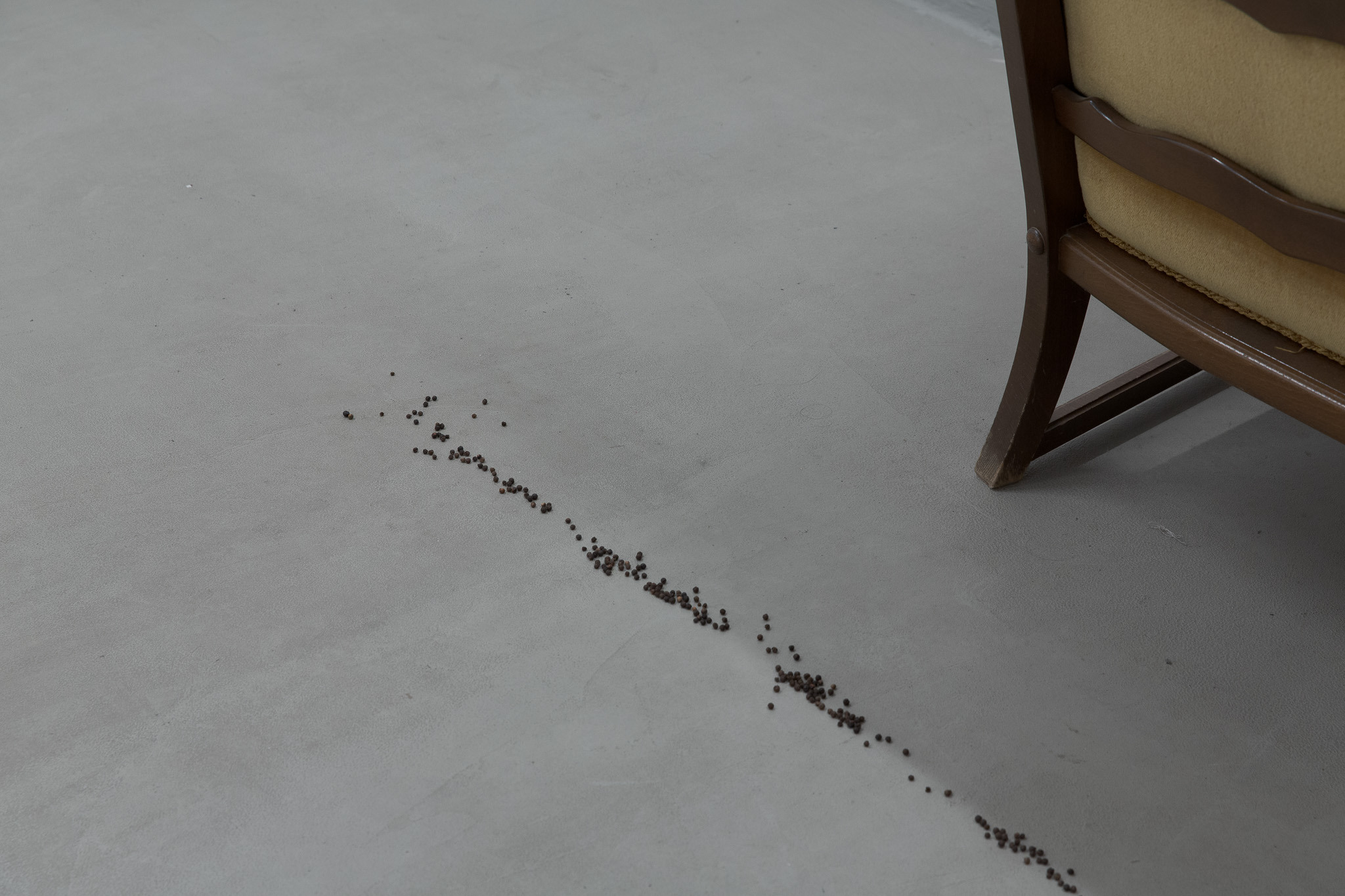 And in the end, what remains isn’t a phrase, but an image: glowing orbs scattered across the grey floor, bound by cords like exposed nerves. A minefield of everyday poetry. You turn around, and a door clicks shut behind you. You’re unsure if you’ve exited the exhibition, or if you’re still inside.