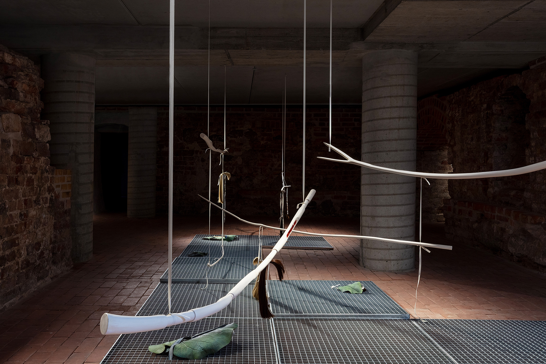 Throughout the exhibition, wounded landscapes, ritual transmissions of human illness, and the potential healing of Anthropocene damage—such as through the rewetting of Greifswald’s peatlands—unfold into wide-ranging narratives that raise pressing questions about responsibility within the ecosystems we inhabit.