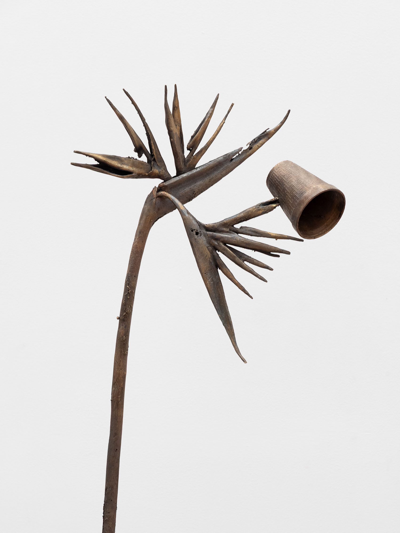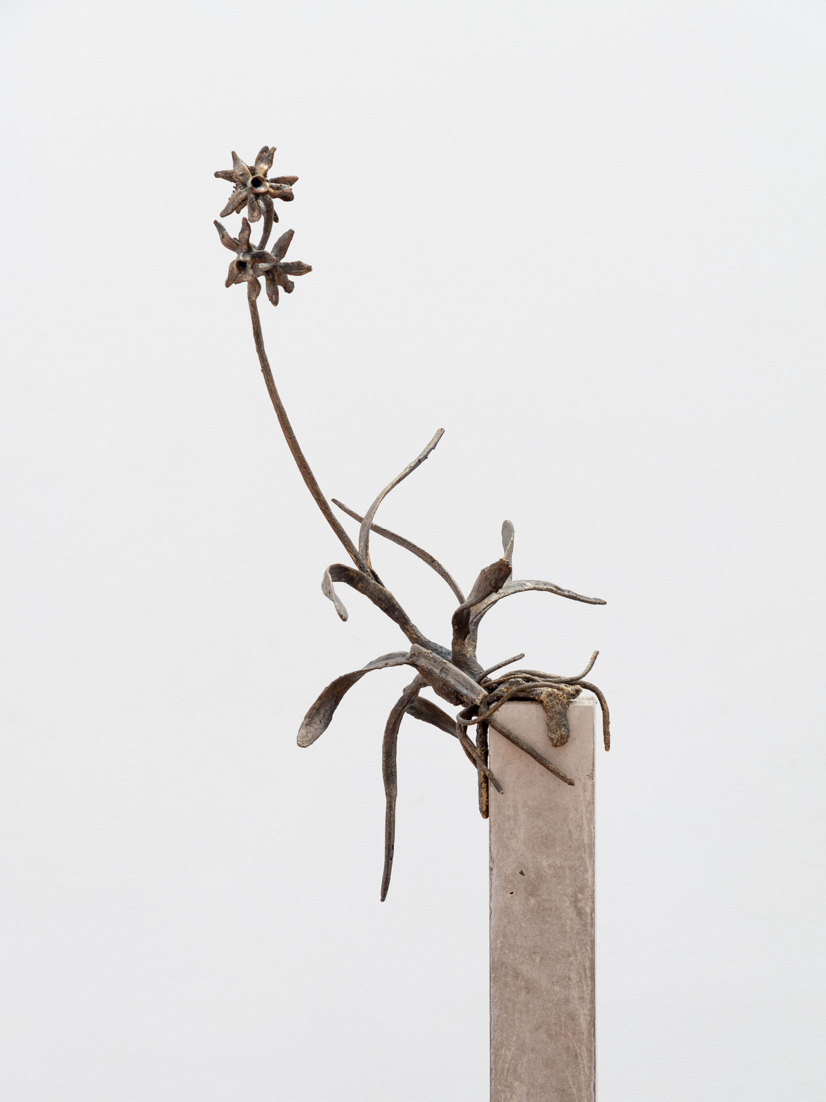 Ernesto Solana presents Sol de lluvia at guadalajara90210, a series of new sculptures that explore the temporalities and encounters between the human and the “natural.” The pieces emerge from walks through the city, during which the artist collects flowers, insects, and vestiges, later transforming them into metal through casting processes similar to the lost-wax technique.