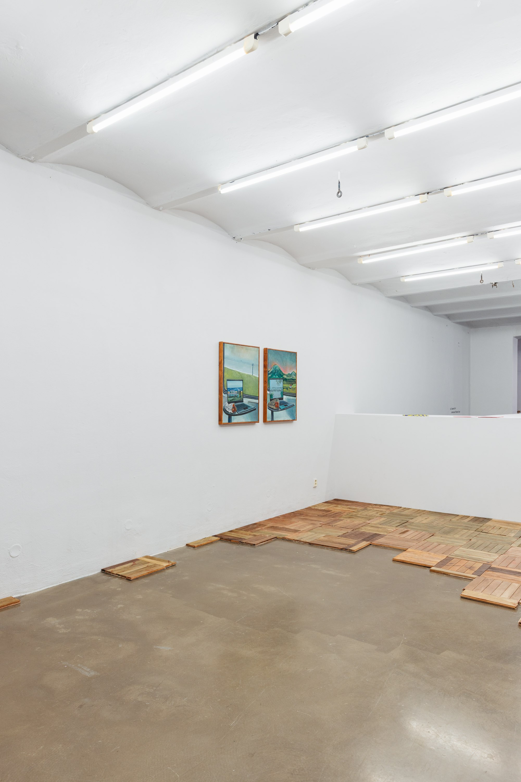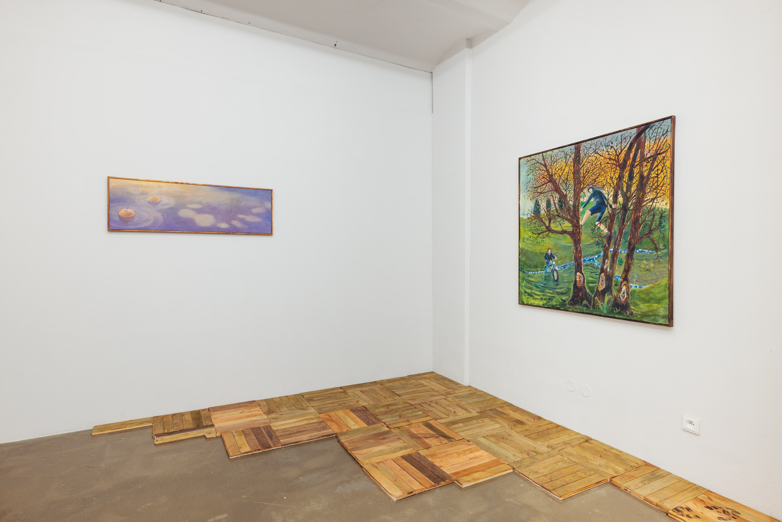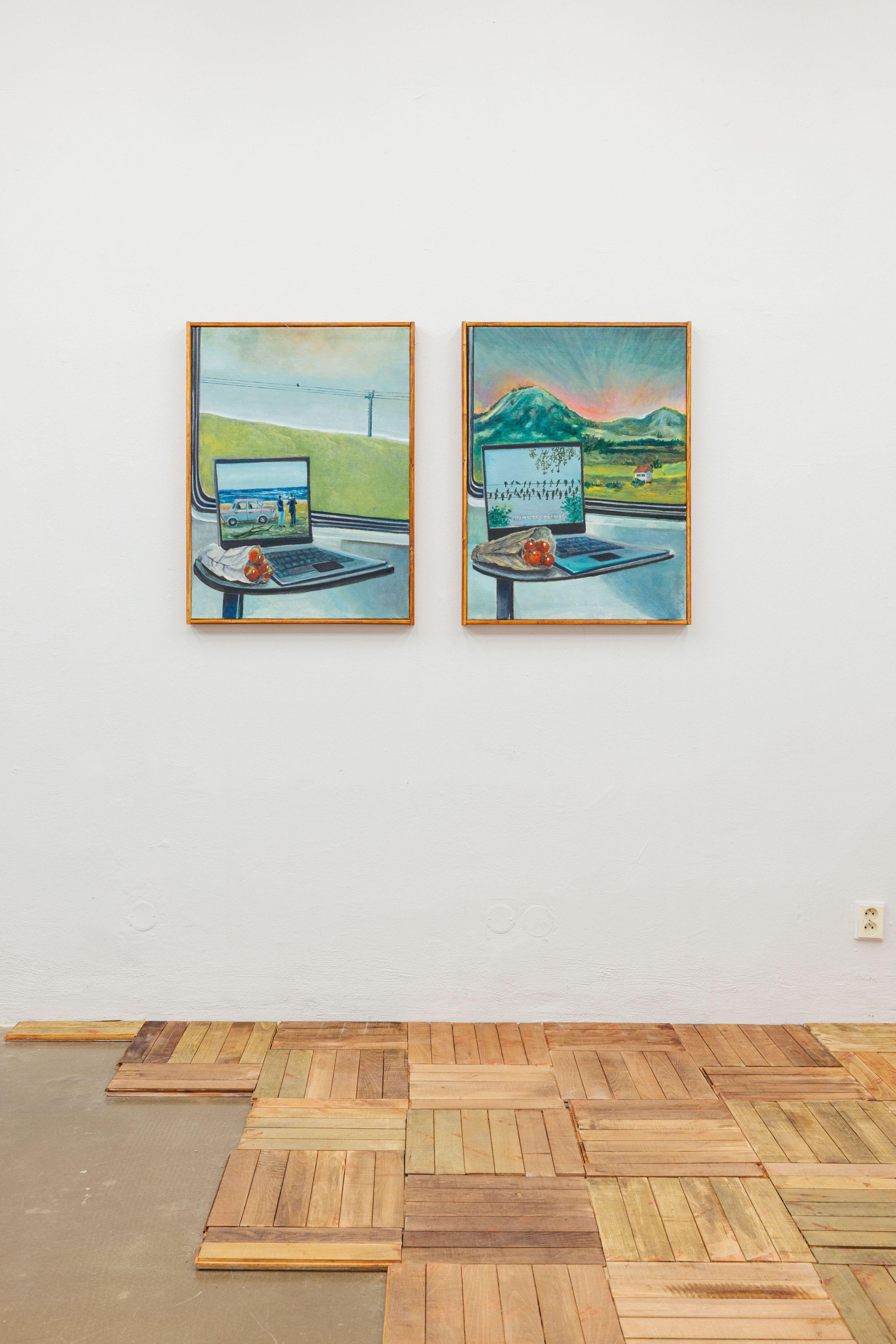 The Still Life exhibition brings together the painterly approaches of Masha Kovtun and Šimon Sýkora, who explore the relationship between personal experience and the shared reality of the contemporary world. Their paintings appear as torn fragments from a larger story – rather than offering clear narratives, they present ambiguous traces and subtle hints. Some scenes may initially seem harmonious, even verging on kitsch, but this aesthetic is used deliberately – as a means of poetic expression and a tool of unsettling contrast.