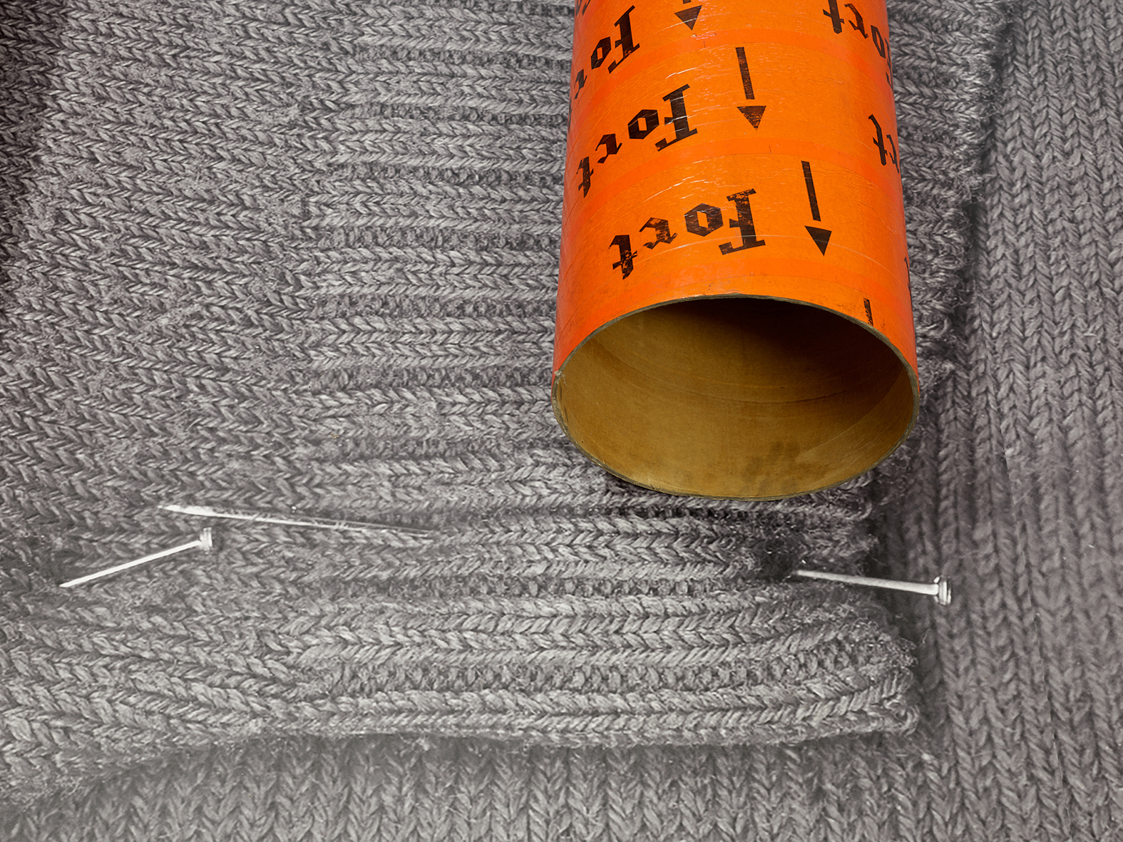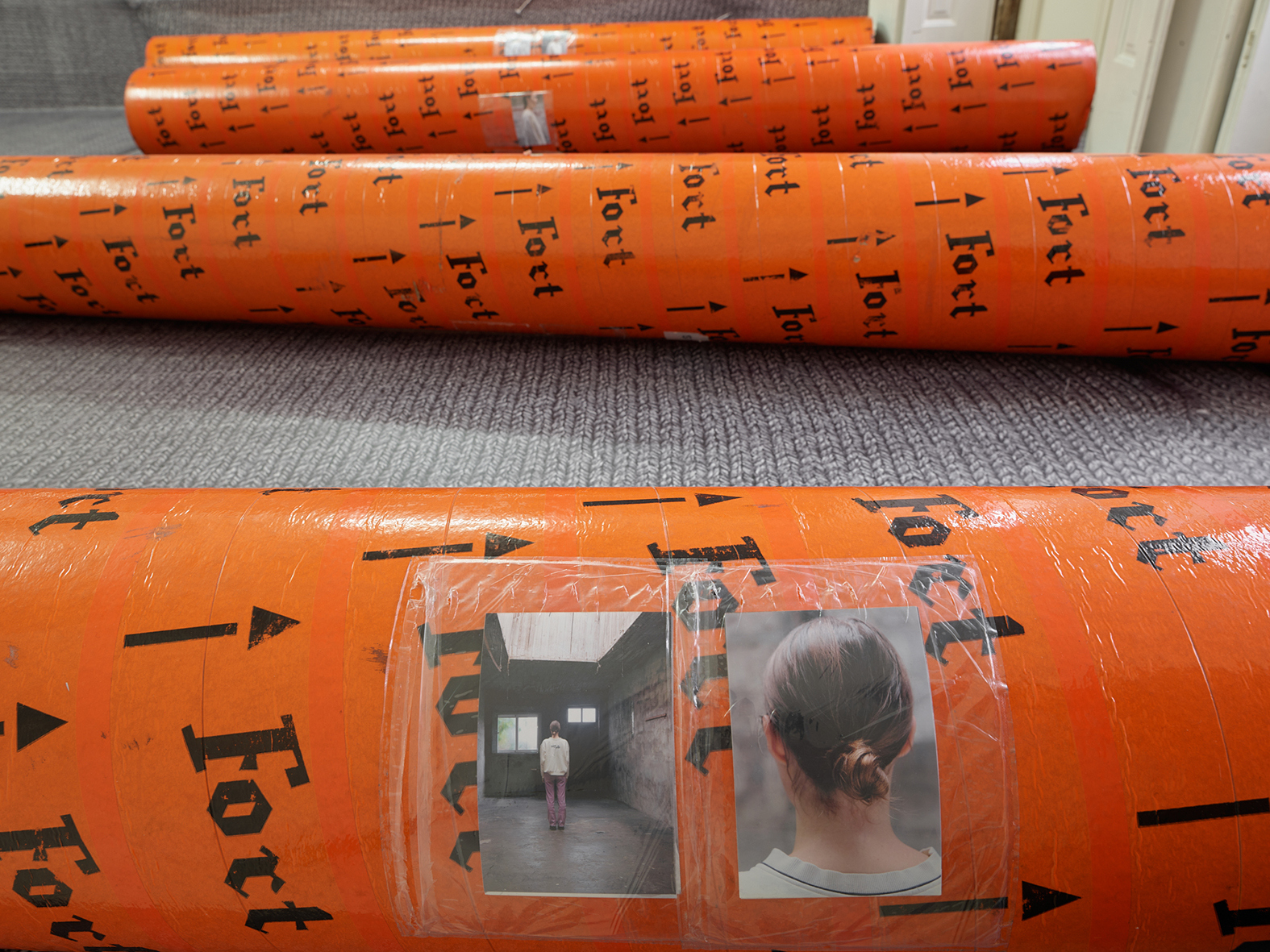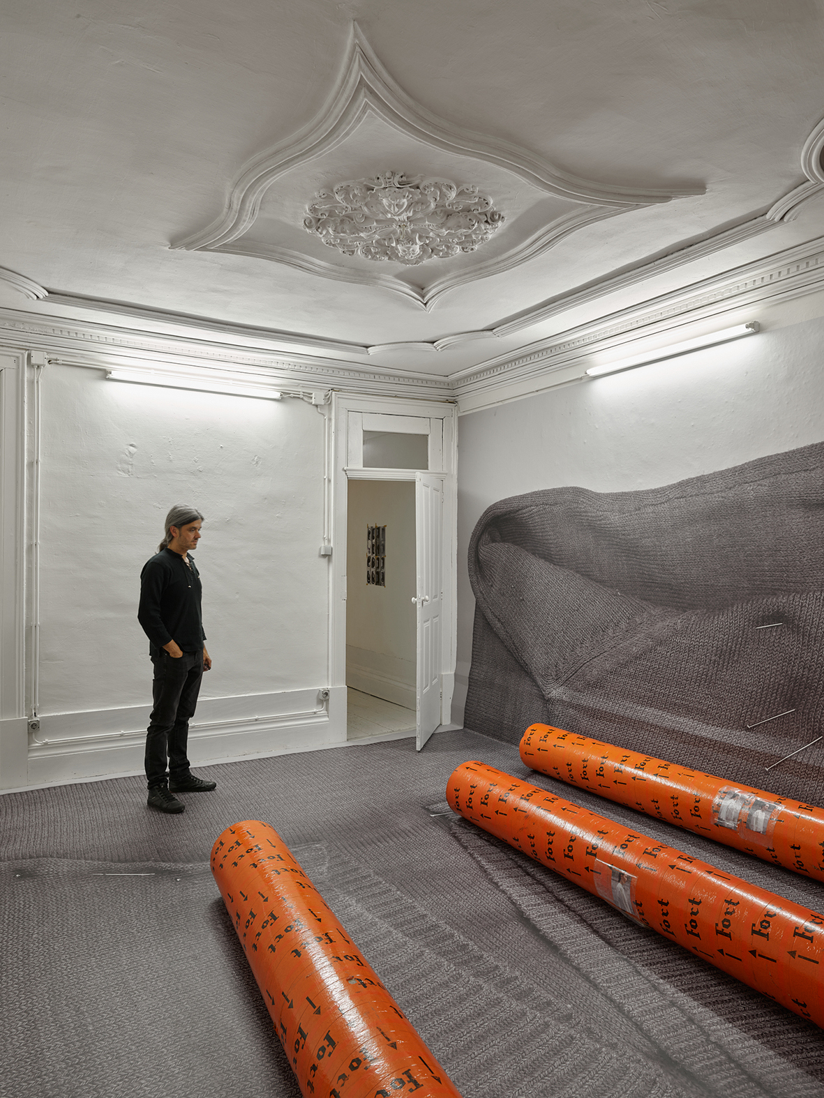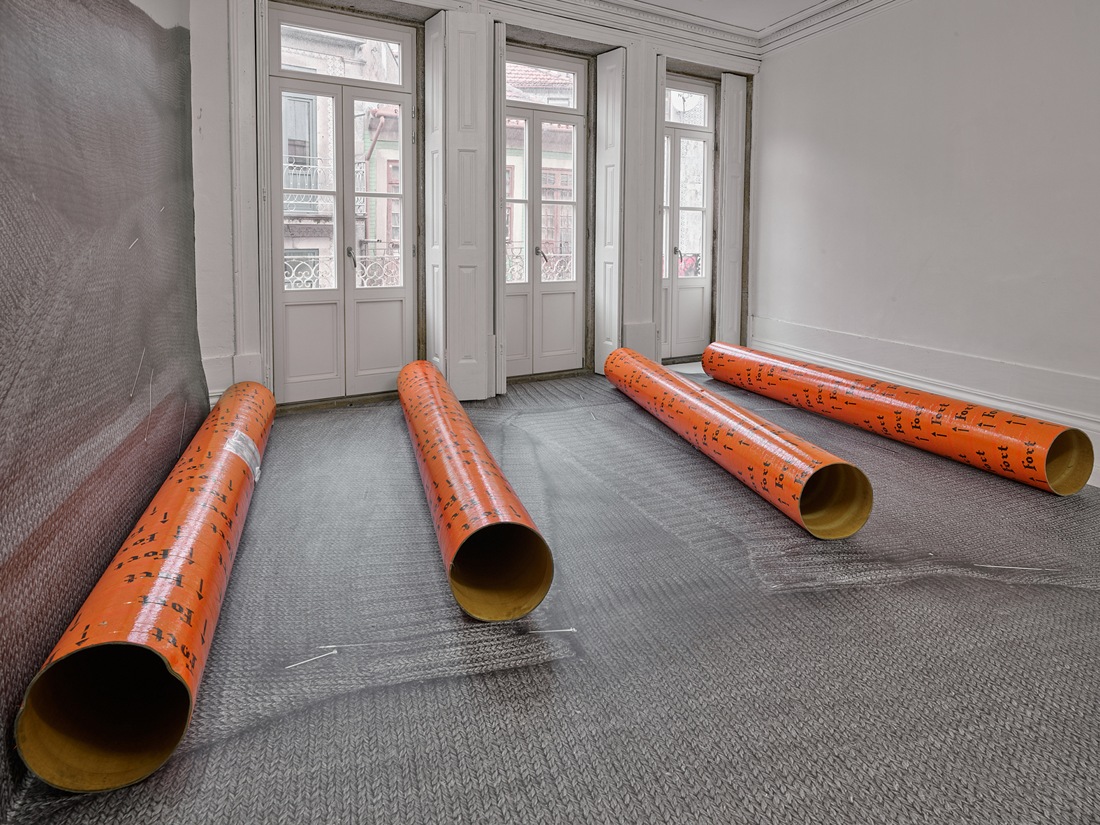 It is 2019 when I first meet June – I am a new mother then and feel alien in my own body, perhaps because the body I have lived in for so long no longer feels like my own. I hardly have time to take care of myself, milk is leaking from my breasts and I am lonely like never before. My life has been turned inside out like a piece of clothing that you pull over your head and, with the inside turned outwards, take off. That's how I feel when I meet June for the first time, turned inside out, empty, a fragile vessel, hollow. At the time, June is giving birth to a new body of work. She is preparing her exhibition No Osso (In the Bone) at Uma Certa Falta de Coerência. Her sculptures seem to hold something within - echoes of bodies, of absence, of structures made to hold or contain - and I immediately sense a connection between my situation, my body, the memory of pain or the pain of memory, June herself and her work. Understanding takes place in the inbetween, in the untold. Hollow spaces offer room for such understandings. Before Junes departure in 2019, she offers me a knitted top - this gesture of care meant more to me than the object itself – I still keep it as a loving memento. Memory appears to be an important aspect in June's work - memory also in the sense of physical remembrance - I am reminded that invisible scars still itch, even if they are covered by beauty with support structures in place. Fast forward to 2025, a lot has happened since our first encounter. The room that once served as my cave in 2019, my bedroom, has now become the vessel for NIKI. June fills this room with an enlarged photograph of another knitted top, her own, folded and held together with sewing needles – needles that are now as big and deadly as swords. Empty construction tubes and photographs of my former self of 2019 lie across the floor. Looking back, it all makes sense: closure and decision-making also pave the way for new beginnings, like an endless unfolding of inevitable transformations.