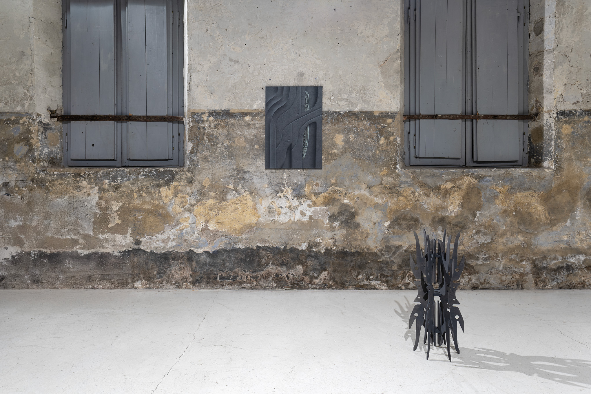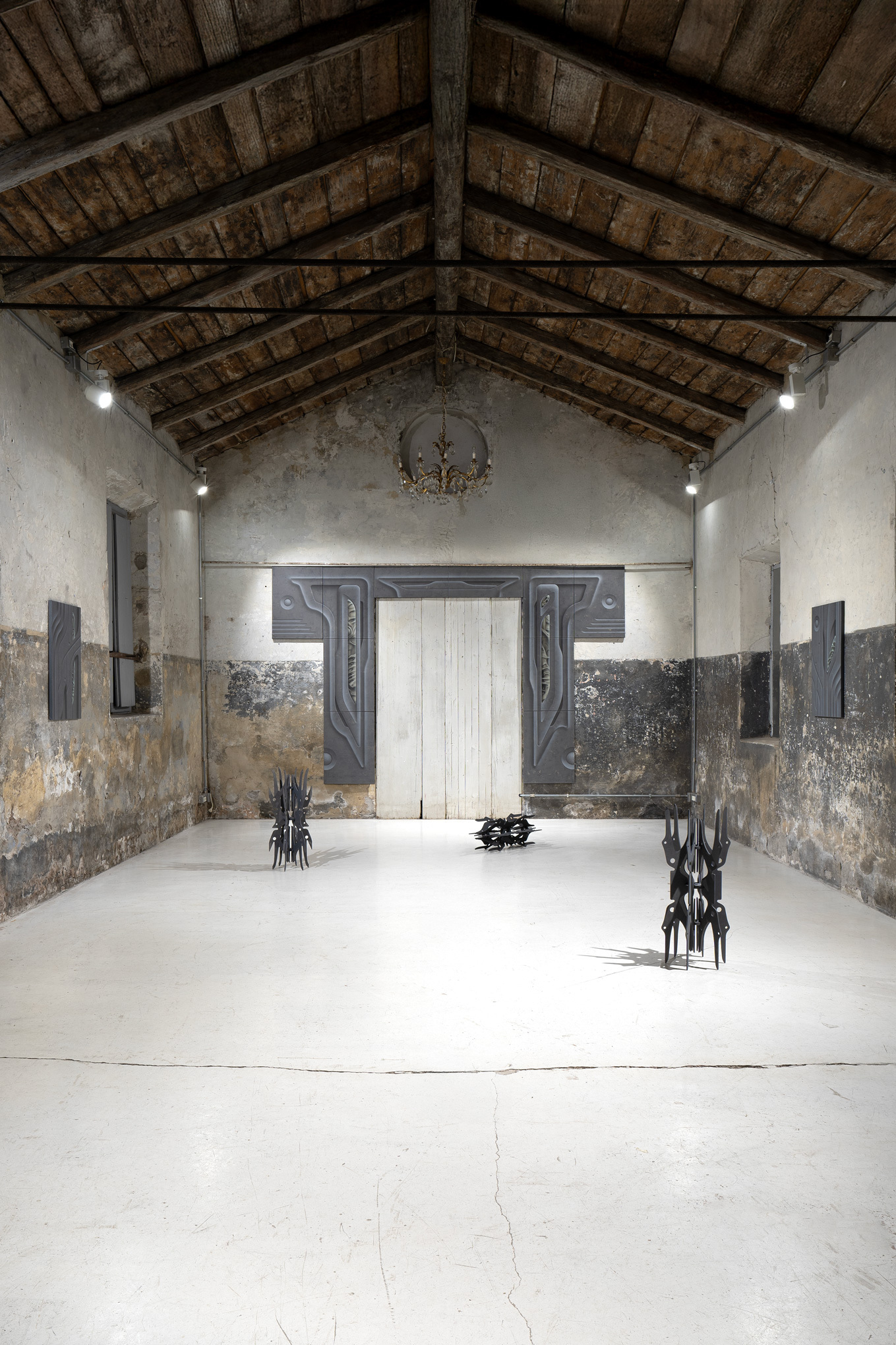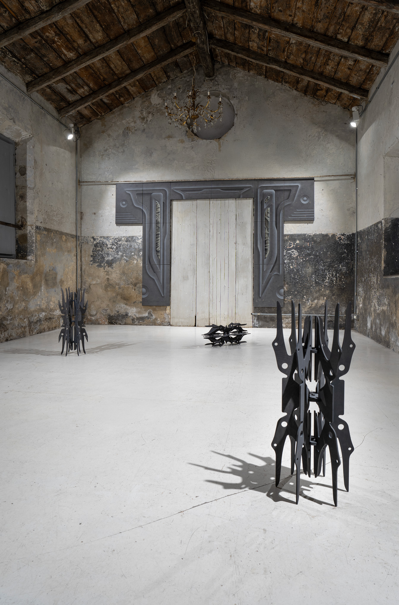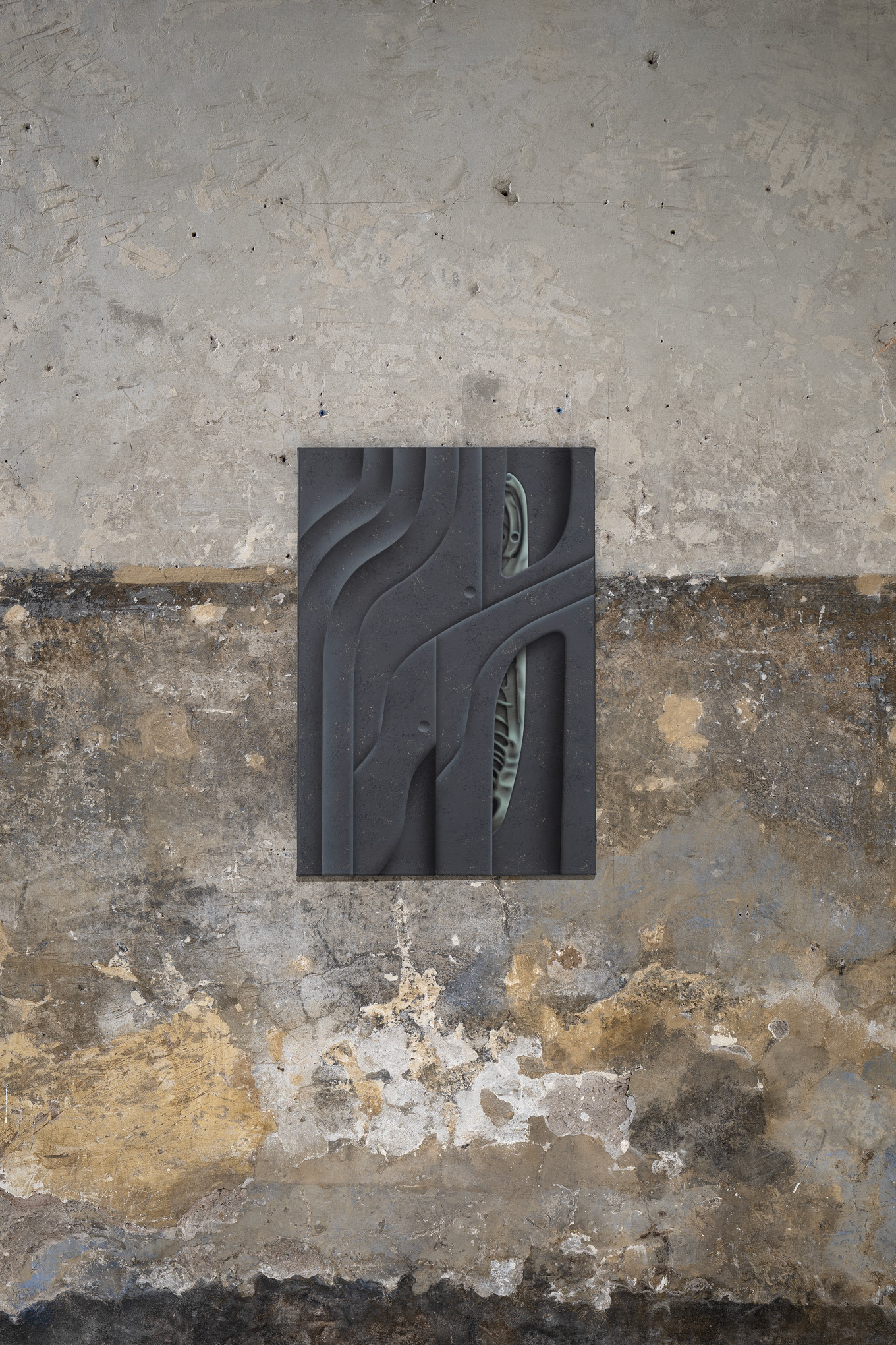 The unsettling glimpses into the portal’s core reveal hints of life, which heighten tension and offer space for imagination. Just as in his remaining objects and paintings, the artist explores the relationship between body and technology. Here, too, it is unclear whether we are observing the remnants of an unknown civilization, fragments of future machines, or ritual objects beyond our current experience.