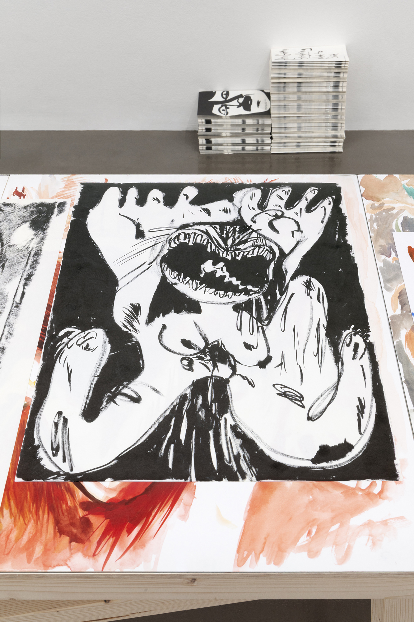 âOne good reproduction is worth a thousand poor originals.â My works are rather small in format, and there is a reason for that. I want to have them scanned at the best possible quality I can achieve, in order to be able to put them to work, to make a reproduction. Standing side by side with the scanner has become something that takes up a significant part of my working time. If one looks at comics originals â American, French, Japanese, the older ones that belong to history â there is, for many, a charming mess created by functional marks: pure cyan pencil underneath the black drawing, marks left for printers and editors, notes on coloring or cropping the image. There is always the consideration of scale involved, of how much one can or should reduce a drawing to have the right impact within the chosen format. With reproduction one is losing something but there is a good and fair exchange: work that is reproduced is meant to be engaged with differently than the original; it is meant to be consumed with appetite, it is not precious. Reproduction, much like a book without a spine, has no authority.