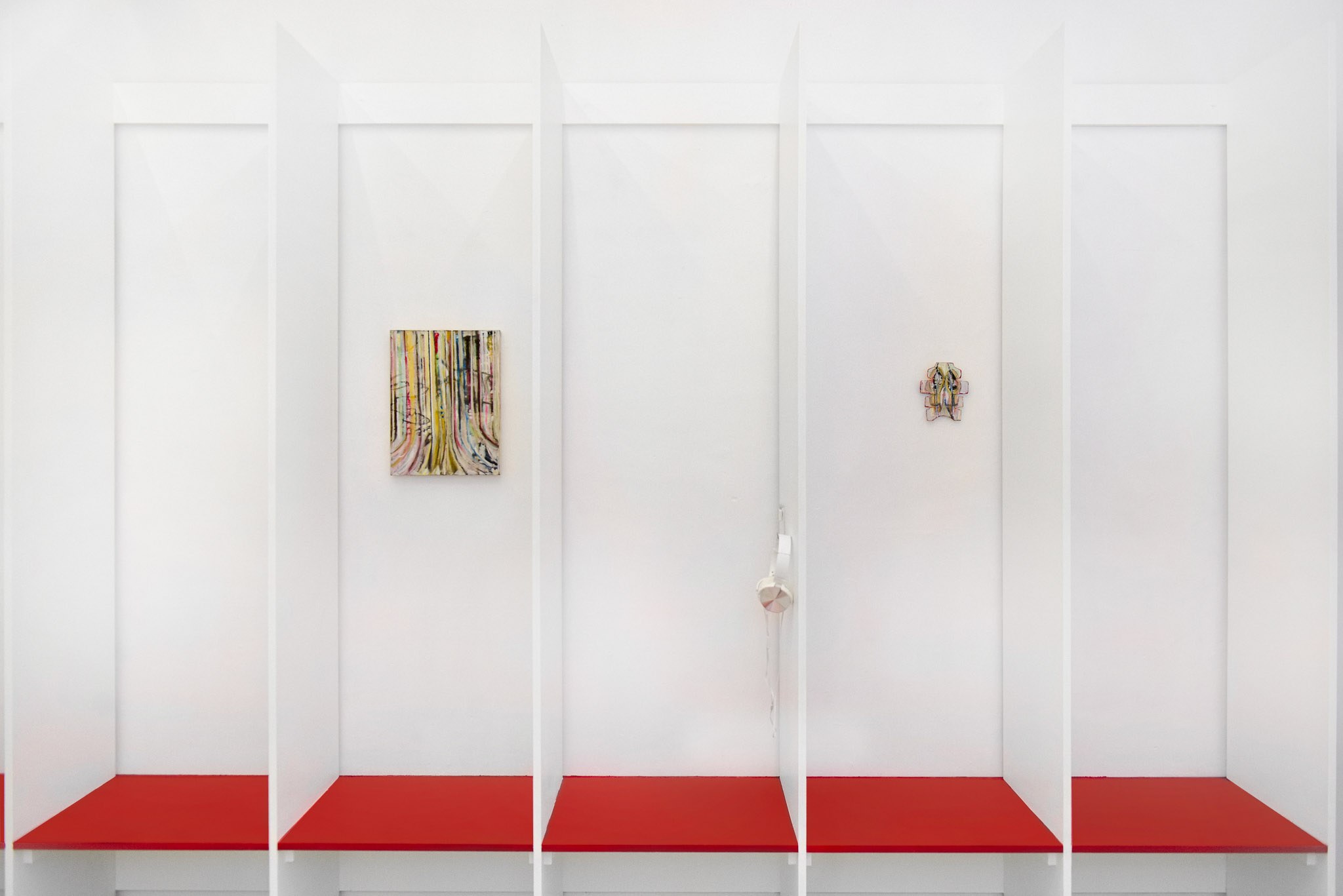 Pascal Schneuwly, "Untitled (Microphones)", 2026, PVC, acrylic paint, foam, cardboard, 55 x 35 x 15 cm