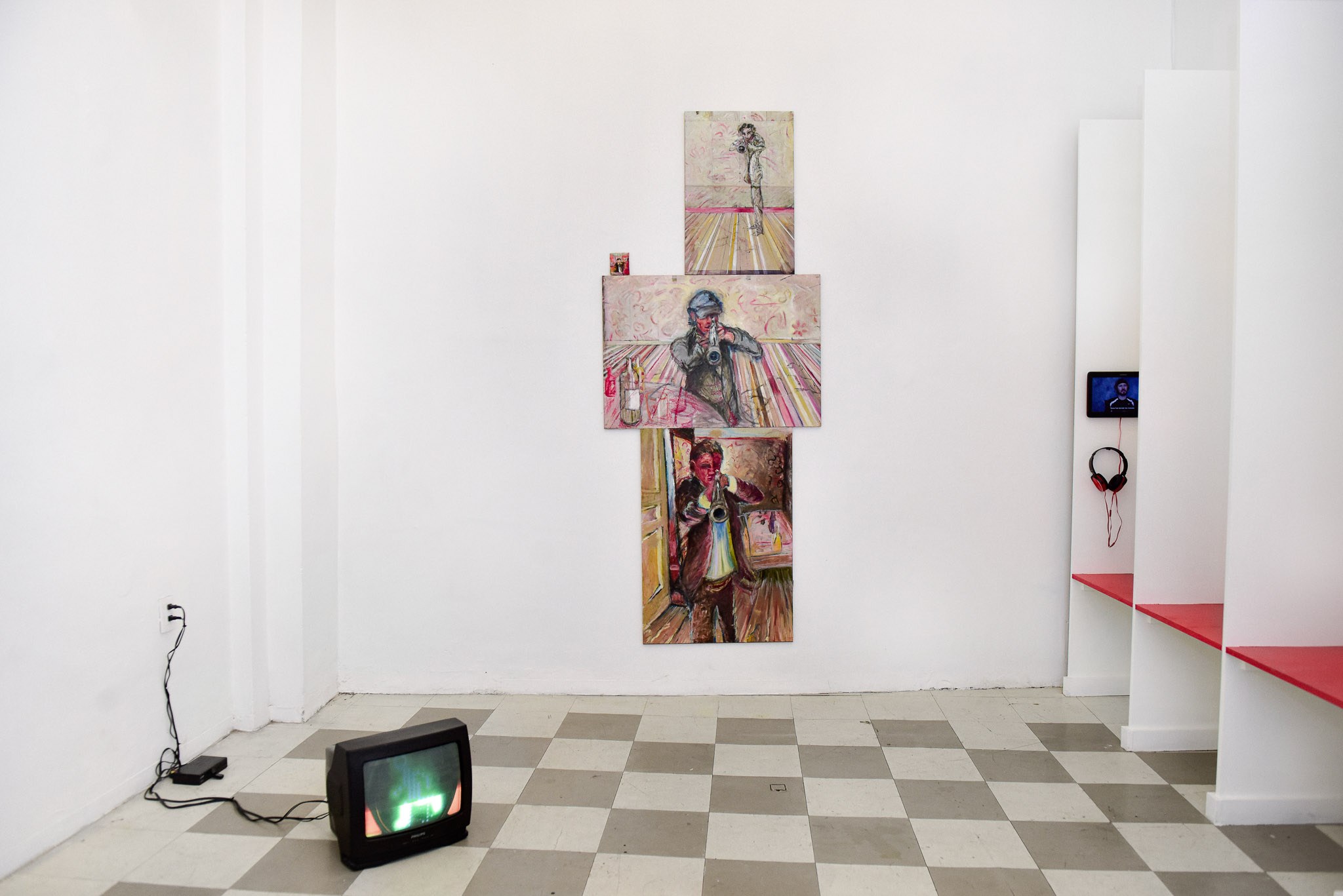 Estás dentro de la exposición mirando a tu alrededor, quizás te preguntas a ti mismo —entrecerrando los ojos, rascando la caspa invernal en tu cabeza, y humedeciendo tus labios secos con la lengua— algo como: “¿Qué significa esto?” y vuelvas a buscarme. Inhala bien fuerte ese aroma tan fino llamado información. Tu ansia por respuestas se saciará en breve.
