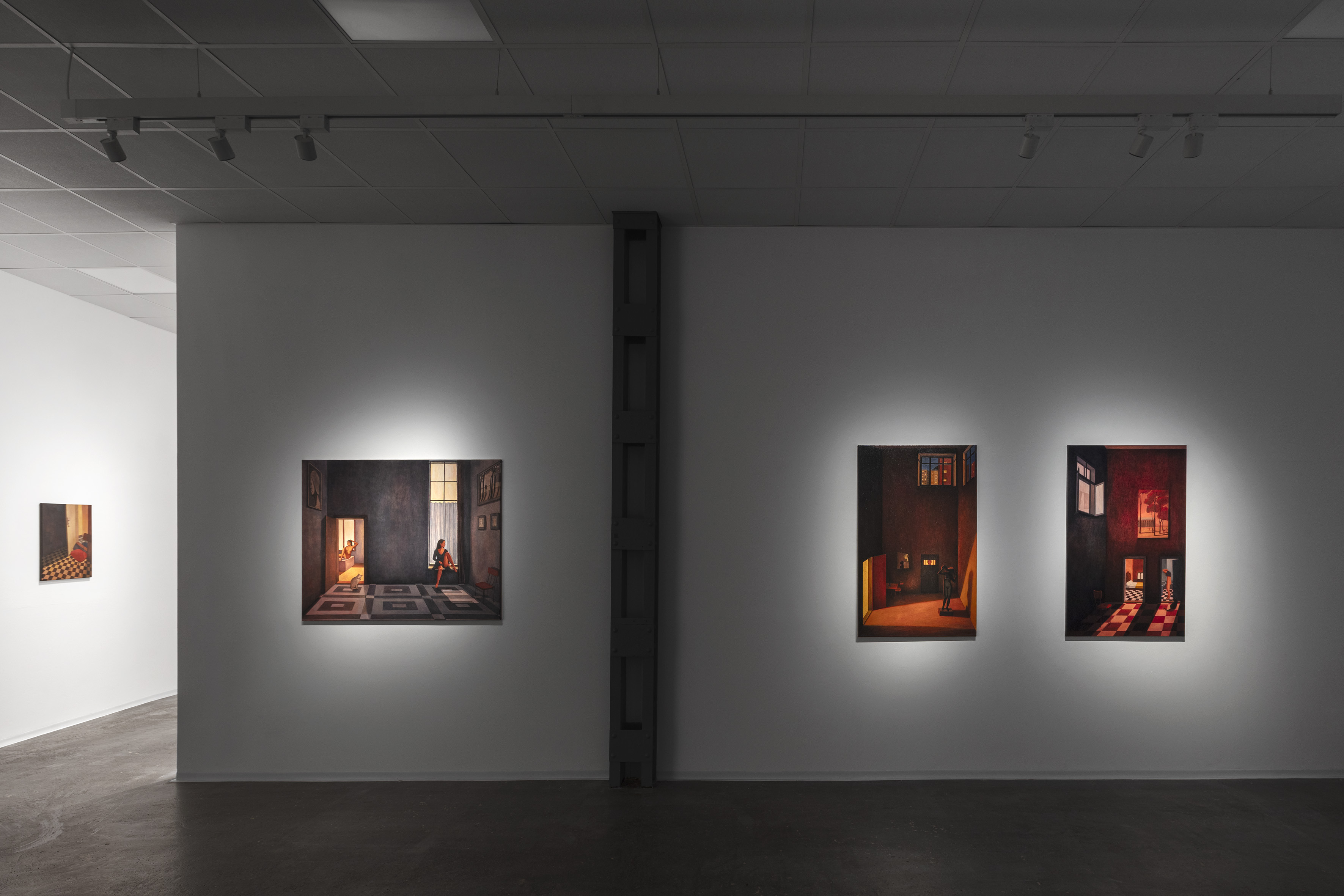 paintings depict solitary figures in interiors immersed in silence and light that both reveals and