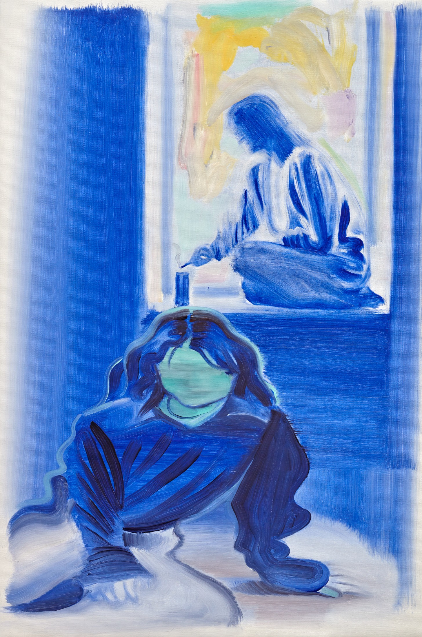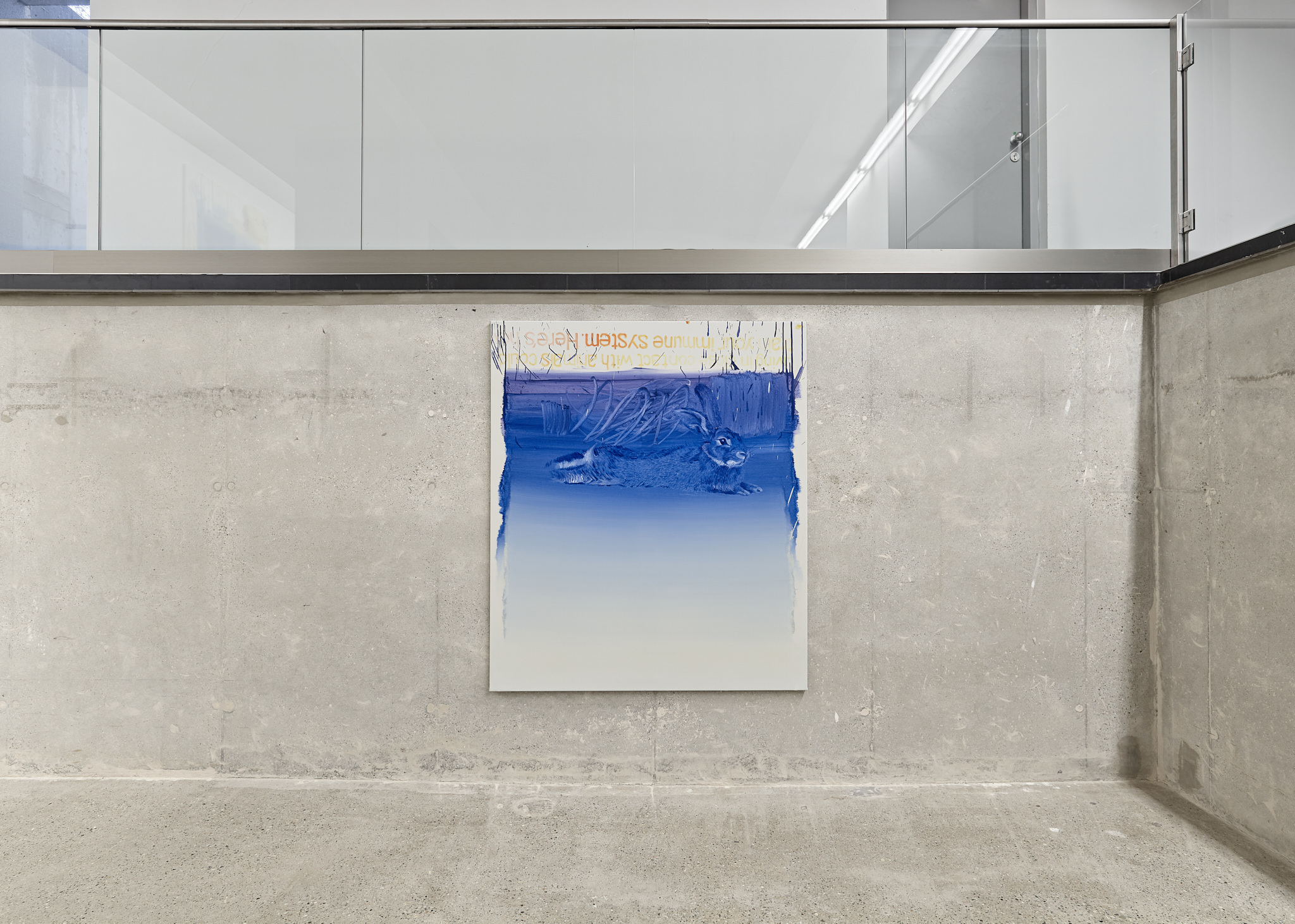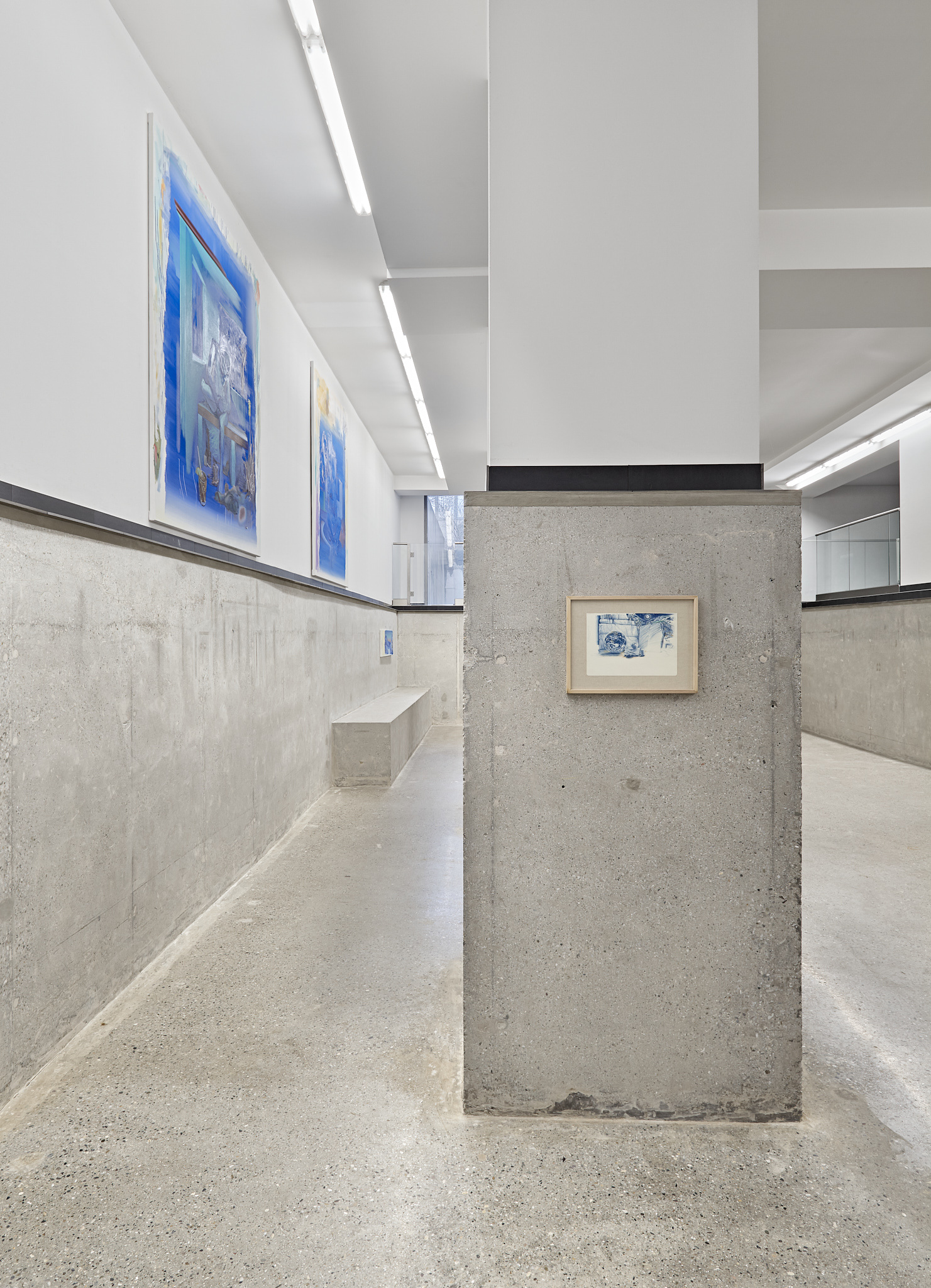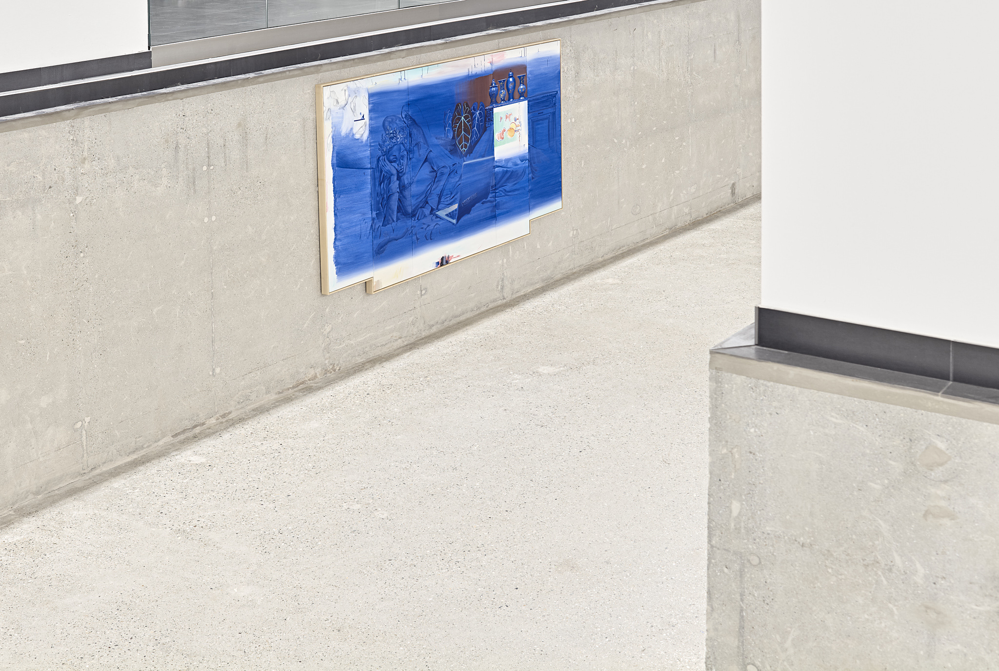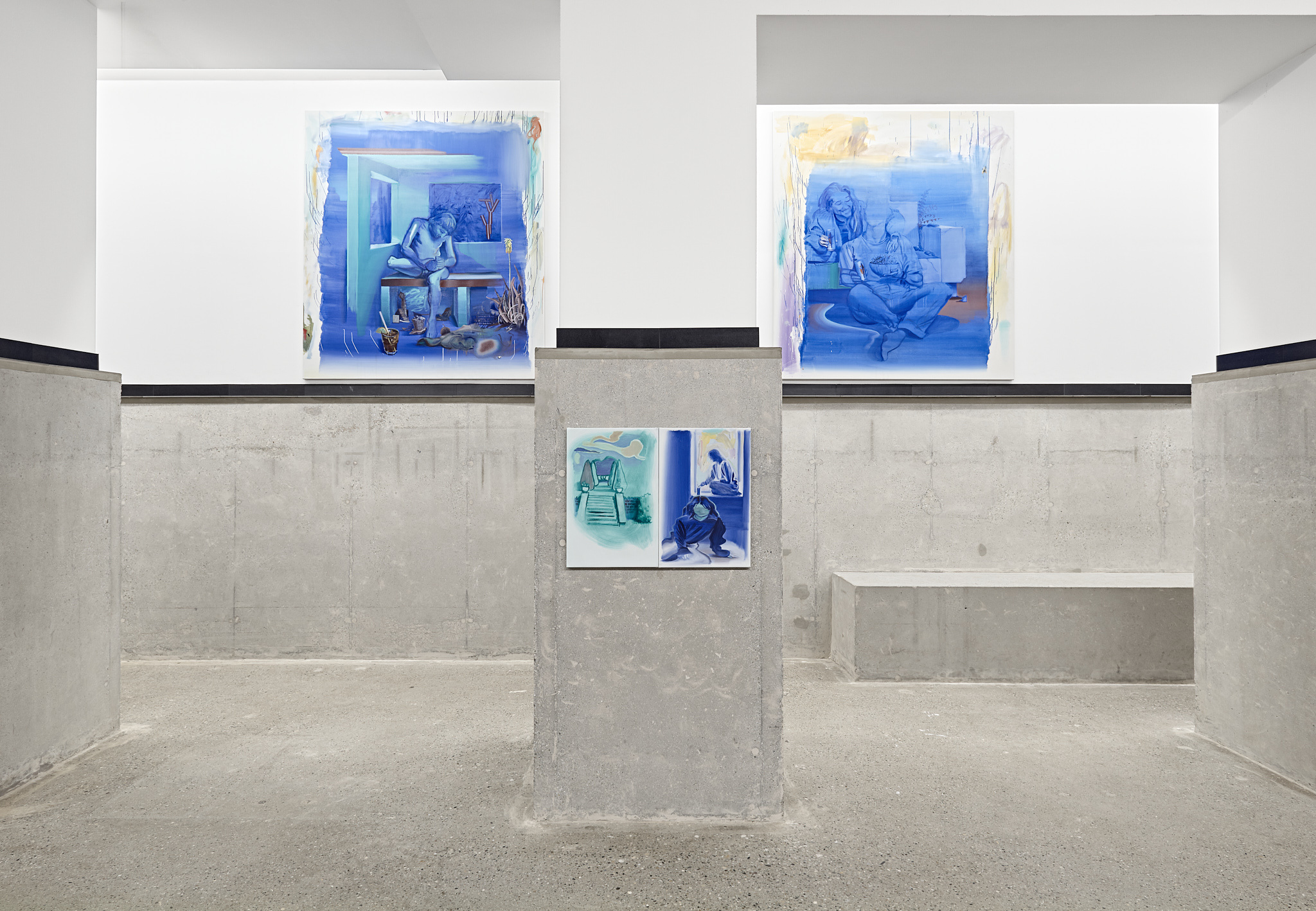Blue Marble Blue Marble, the title of Gábor Pintér’s exhibition, is inspired by a yet-to-be-realized installation. The concept centers around a dishwasher filled with unwashed plates, evoking and extending the scenes depicted in his paintings. On top of the imagined dishwasher sits a slab of blue marble—not a real material, but a fictional design element—which lends a strangely elegant and comforting presence to the domestic setting. According to the original plan, the paintings in this exhibition were to encircle this installation, creating a visual and conceptual loop between the sculptural and the pictorial. The paintings are structured around dualities. Each work plays with human recognition and perception. What initially appears abstract gradually reveals a figurative composition, encouraging the viewer to shift between visual modes. Seemingly ordinary, everyday scenes begin to tilt toward the transcendental through subtle compositional disruptions. This delicate balance between the familiar and the transcendent is a hallmark of Pintér’s approach. Gábor Pintér, born in 1983 in Budapest, is a contemporary Hungarian painter known for his vivid, collage- like compositions that blur the lines between realism, abstraction, and symbolic imagery. He studied at the Hungarian University of Fine Arts, where he developed a distinctive visual language that merges gestural oil painting with conceptual precision and a strong sense of visual irony and play. In recent years, Pintér has incorporated large-scale chalk murals into his exhibitions, drawing directly onto gallery walls in conversation with his canvases. These ephemeral wall drawings deepen his investigation into time, surface, and spatial experience, expanding his practice beyond traditional painting into immersive installation. Pintér received the Ludwig Prize in 2007 and has exhibited widely in Hungary and abroad. His recent solo shows include exhibitions at Mega Foundation in Stockholm and the Institute of Contemporary Art in Dunaújváros. He has participated in international group exhibitions at Albert van Abbehuis in Eindhoven, the Ludwig Museum in Budapest, Košice Cultural Centre, and UGM in Maribor. His work is held in major public collections including the Hungarian National Gallery and the Ludwig Museum Budapest. In Blue Marble, Pintér continues to explore how ordinary moments and materials can be reassembled into poetic visual environments. His work invites viewers to slow down, reconsider what they think they see, and find meaning in subtle shifts between the everyday and the imaginary. Péter Bencze