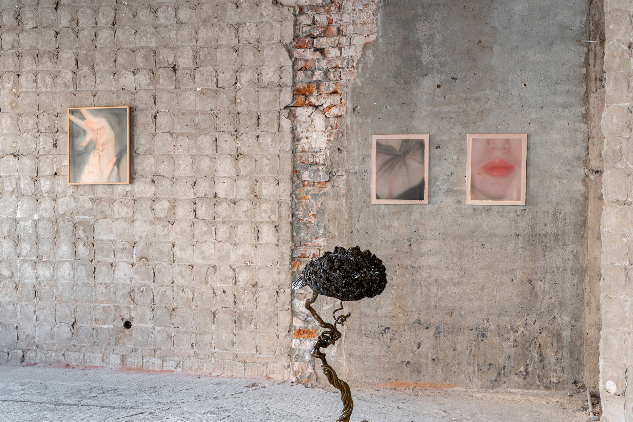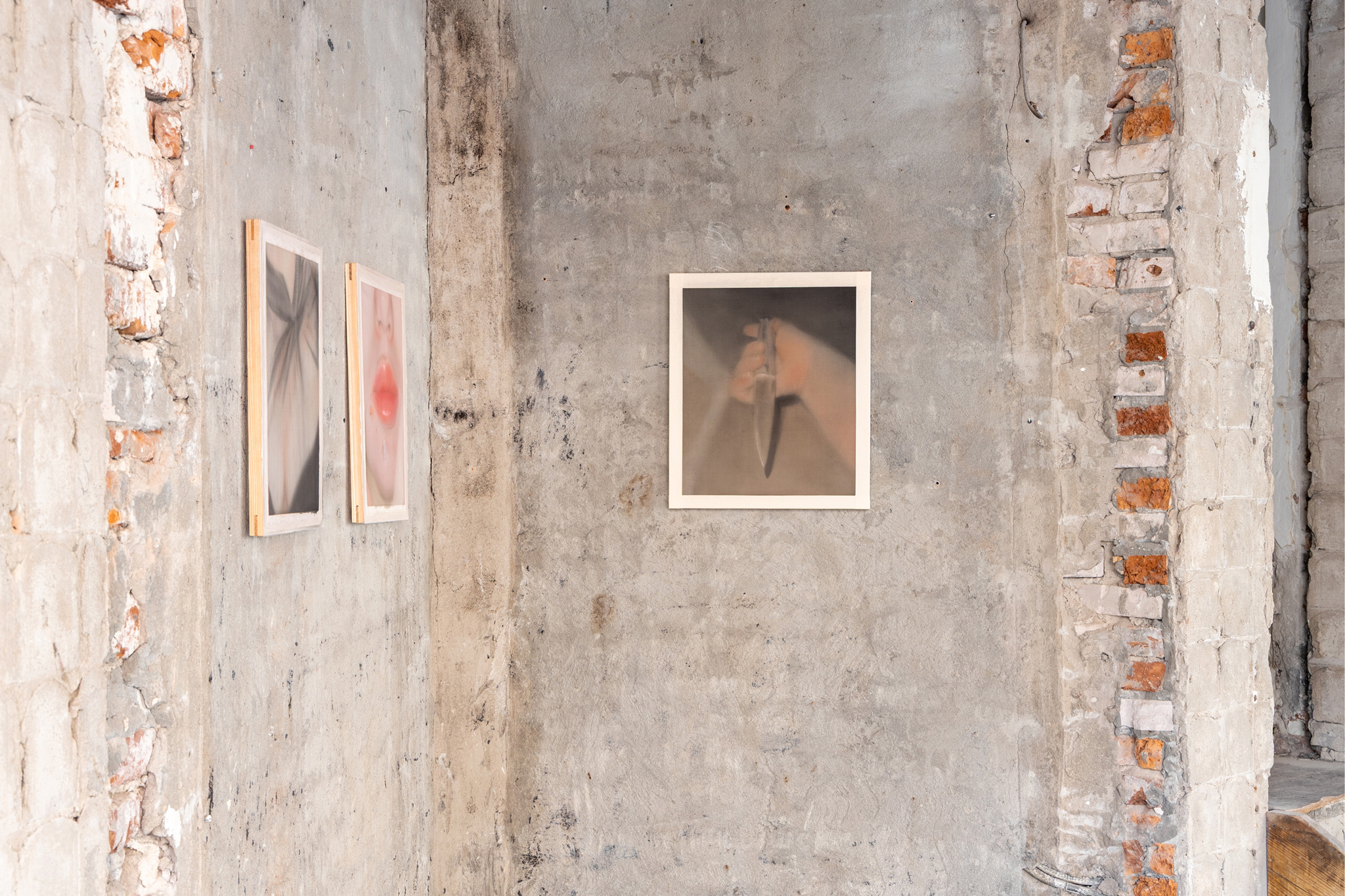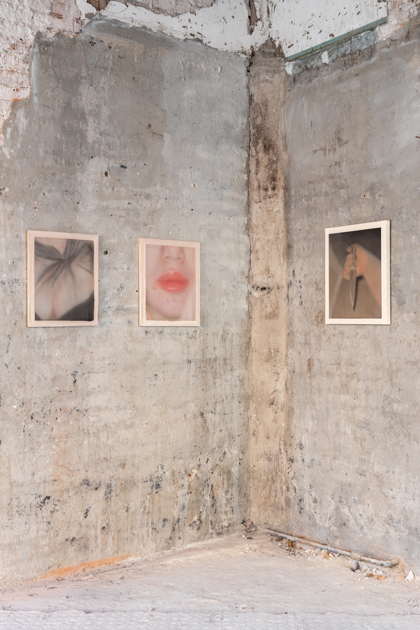 In contrast, the practice of Jinju Park turns inwards, to examine all that which defensive mechanisms and armour building conceals. She paints on gossamer-thin silk delicate portraits of her body, her skin punctuated by piercings and pimples or carefully wrapped in sheer cloth. The body here is still considered as a kind of âshell,â separating and hiding internal life from external dangers, but she shows this shell to be intensely fragile. That initial circle in the sand I drew -