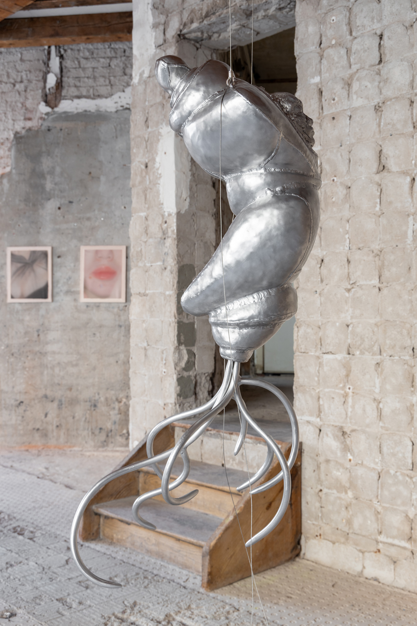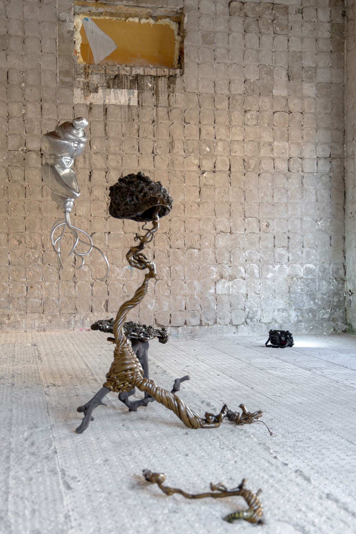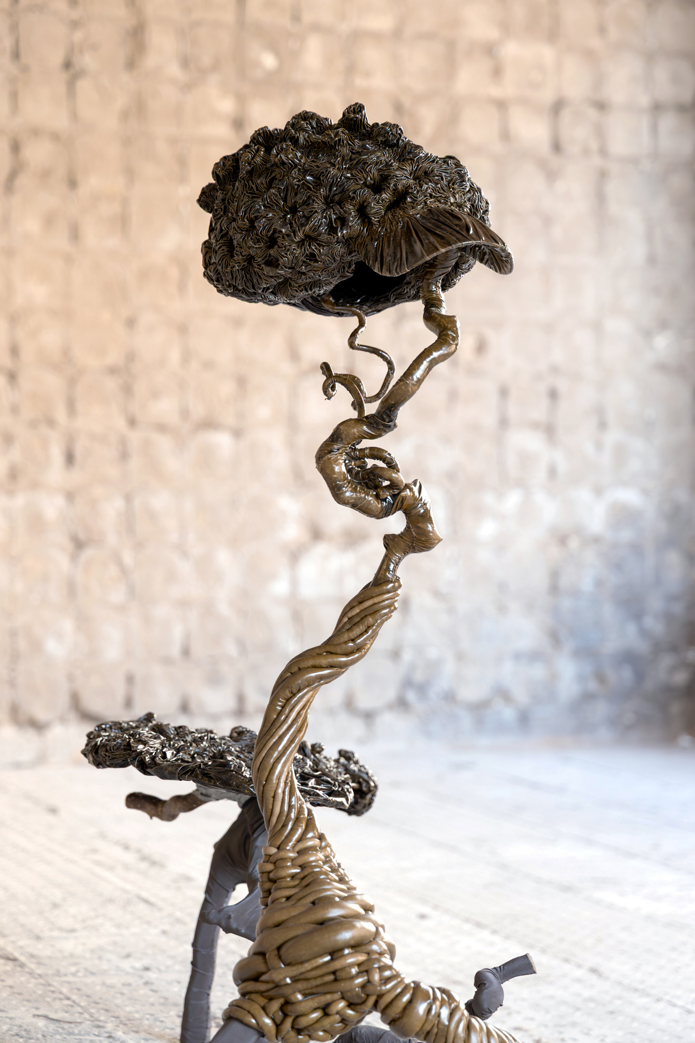In their resemblance to the exoskeletons of certain insects, Glory Kimâs twisted aluminium sculptures relate to external defensive structures. The starting point for his âAdaptive seriesâ are the feelings of repulsion and fear at the filth and threat that the invertebrate world of insects represents - like the child who crouches down in the sand to look more closely at the ant that dares to crawl too near, slowly moving across the circular boundary defining their safe space. Will another one follow, an entire Swarm? I better squish it first, giving a final twist with my thumb. But the ant has its own protective encircling in the form of its hard exoskeleton, chitin, with further bio-mineral layers protecting its vulnerable insides. Acknowledging that the âstructures of disgustâ such as antennae or segmented limbs are necessary for the insectâs survival allow Glory Kim to move beyond the representation of ugliness to reconsider the beings evoking these feelings in us, placing insect and human on equal footing and blurring the boundaries between self and other. In the work, Pupa, the focus is on the state prior to metamorphosis, referring to the life cycle of insects undergoing transformation from immature larva to mature adult. By enclosing larva and his own face in a single body he presents a moment in which evolution could potentially go either way, as if invertebrates too could develop embryonic developmental homologies with humans, evidence both of a common ancestry and a potential evolutionary destination.