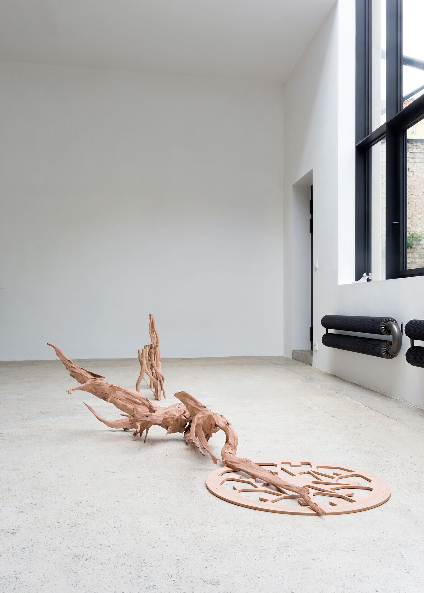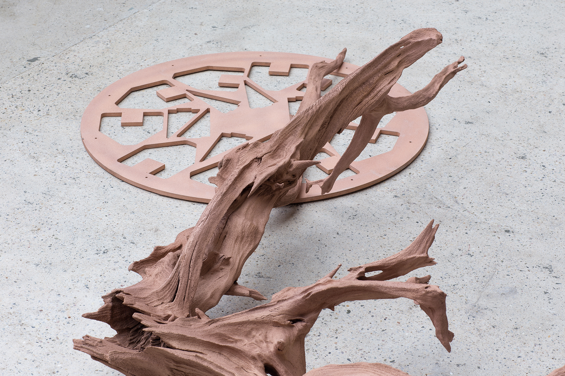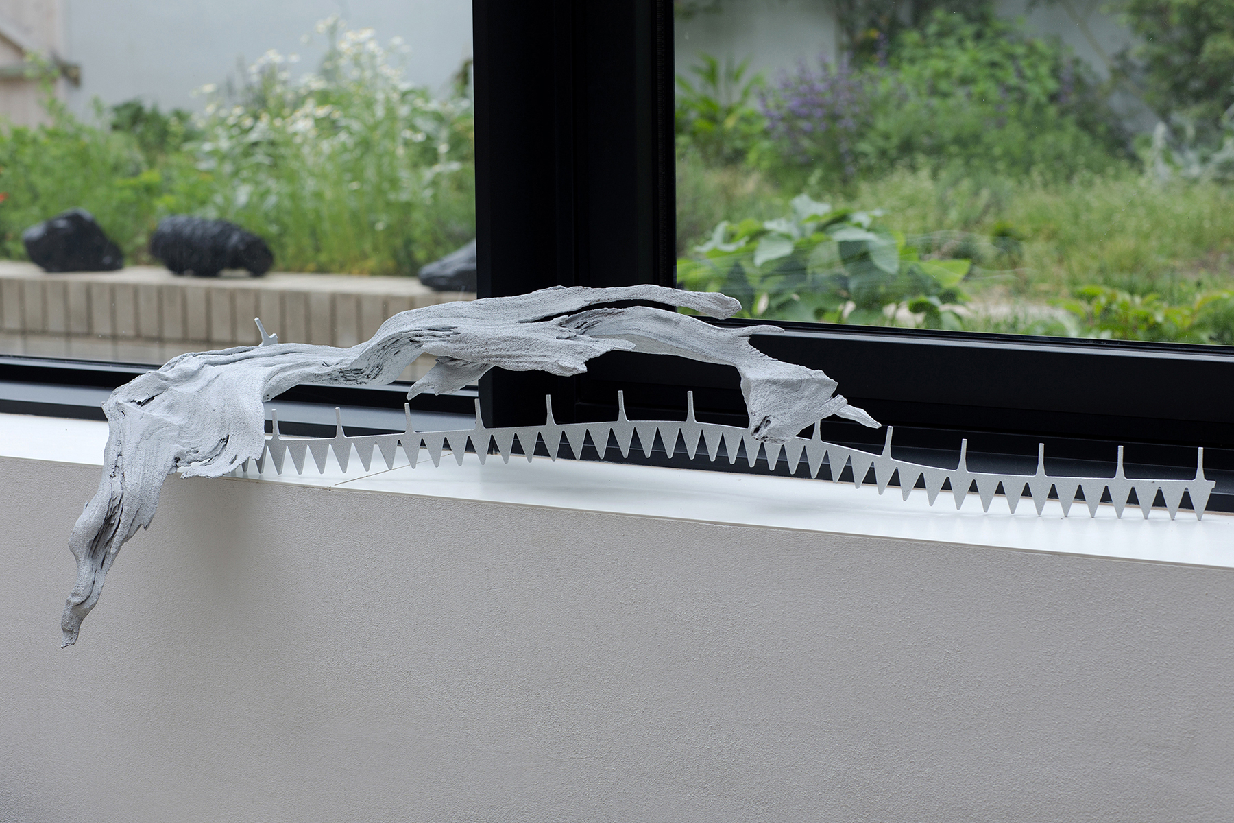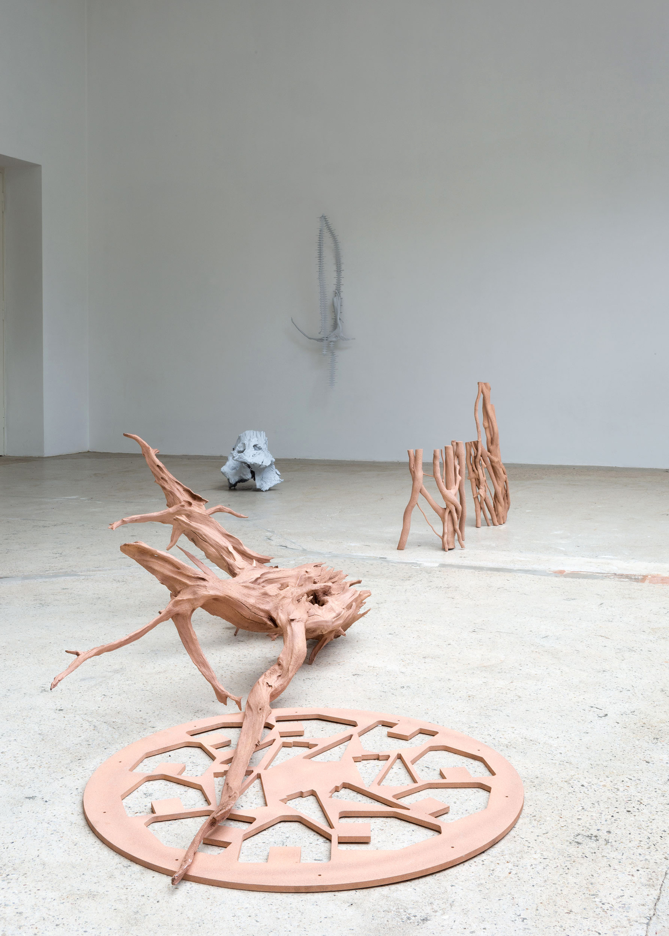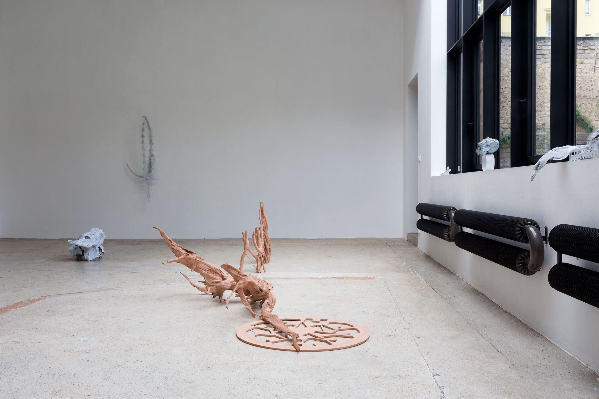When looking at this new body of works by Adam Vačkář what immediately catches the eye is the vitality that is intrinsic to something that should actually taste stale, seem left over. We are not standing in front of rubble; we are standing not in front of the remains of something. What is being praised is the act of becoming, transformation stimulated by the rhythm of time. The works presented here are the result of arduous research indefatigably carried out by Vačkář, a zig-zagging path of mostly random exploration in which these objects, carefully laid in swamps, lakes and remote forests have revealed themselves to him in all their eternal metamorphic power, subsequently perfected by the use of bronze and aluminium, by a special material finish, without the aid of paint. The refined transformation perfected by the artist clearly resembles the act of sostare (pausing), an Italian verb deriving from the Latin substare, with the sense of ‘staying underneath’. This being underneath is the depositing of layers of material life which, encountering each other, sing the praises of time’s becoming and make the present appear as a scar issuing from past and future, an indefinable murmur of change. Here, then, is where the artist’s strength lies – in uniting this delicate and irreversible natural process of the transformation of spontaneous elements into the alienation brought about by the mammoth industrial development and into its path, which is diametrically opposed to the normal becoming of things, thus obtaining a hybrid mixture in which the artificial becomes part of the biorhythmic process of becoming natural and vice versa. This is how these figures assume demonic forms, almost to whisper the echoes of the magical places from which they come, but from which they have now distanced themselves, becoming more complex entities, perpetually suspended in a moment in which the era of consumerism has stopped for ever and in which this substratum is wrapped in a symbolic spirituality turned towards remembering and reiterated as a warning to the future.