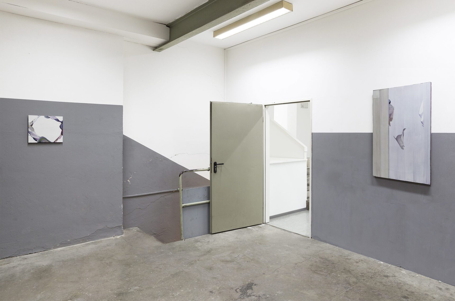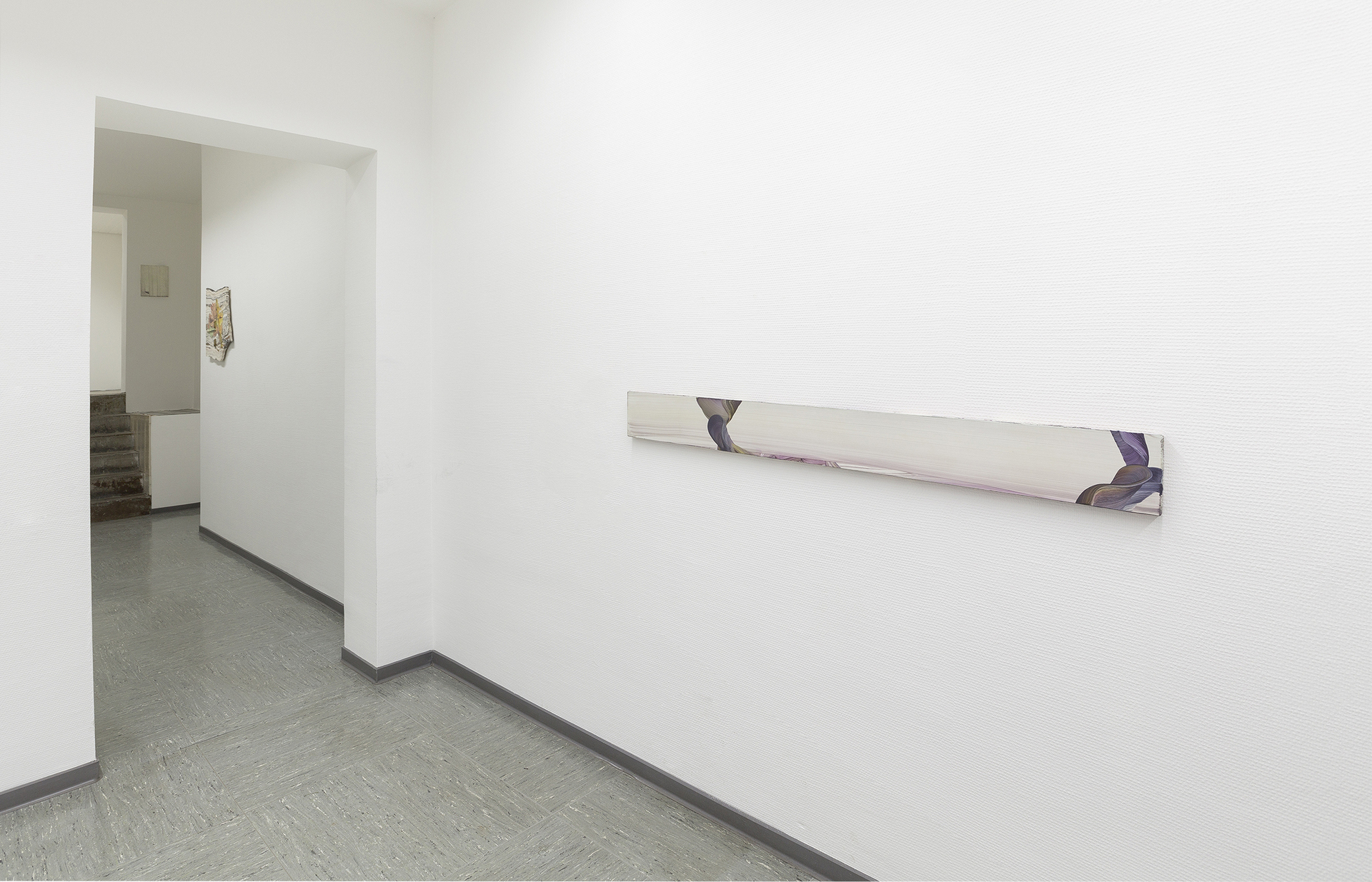 Markus Saile’s practice operates on a conceptual level of painterly understandings. The works shown in Mönchengladbach are grounded on an intrinsic inquiry into the material and historical fabric of painting-as-medium. The way these paintings came into being is out of the acute intrusion of conceptual thinking in the painterly plain. Everything occurring in the work isn't necessarily restricted on the picture but performed in a dispersed world engulfing it: situated in and through the histories of painting. A small, careful amount of oil is mixed with turpentine in manner that subverts the common dilution process by switching the ratio.