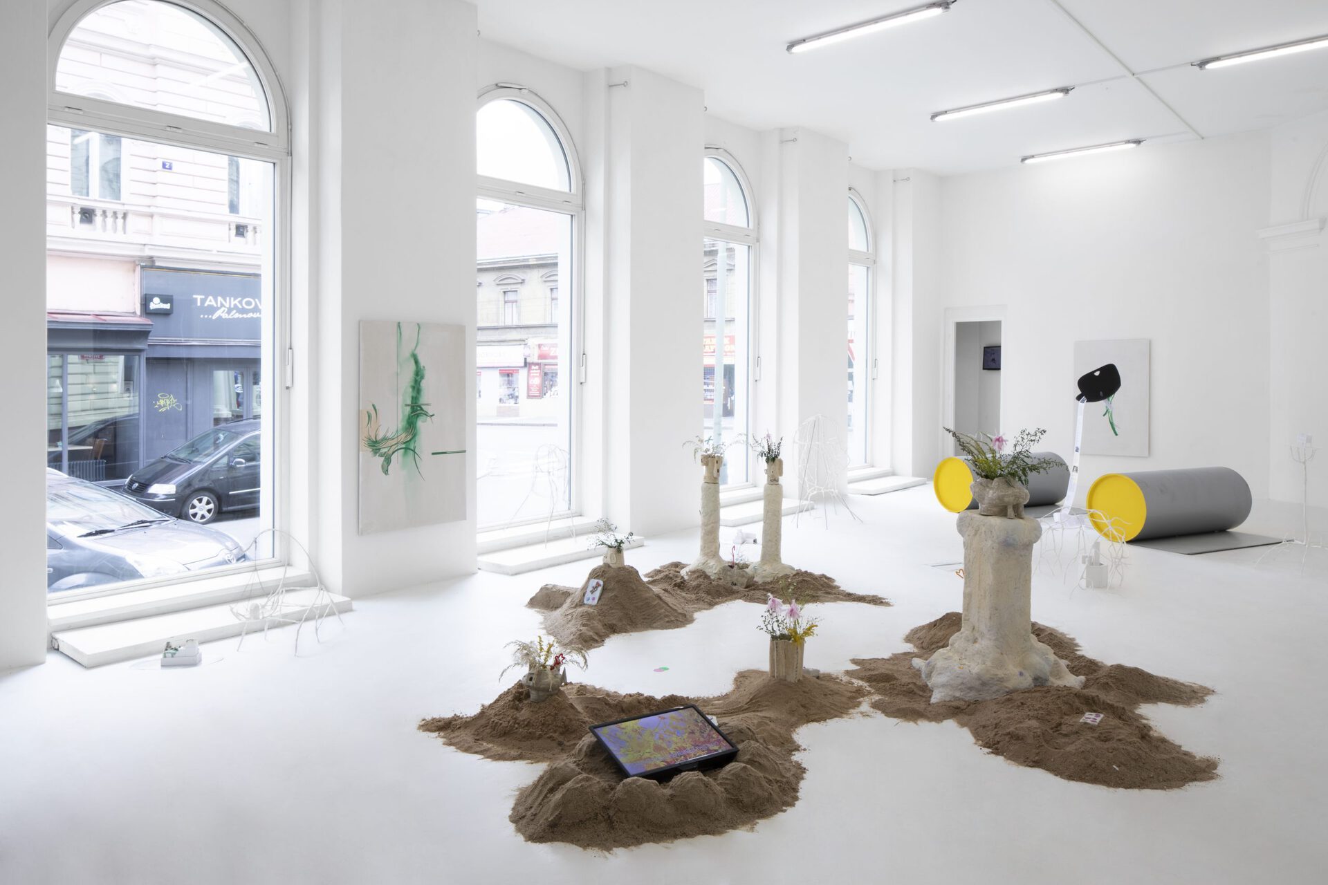 Anna Bochkova, Olga Krykun, Barbora Lepší, Demi Glace The name of the show was taken from the song called This Mess We’re In by PJ Harvey but other than that, the show and the song have almost no connections. We found ourselves alone in a city where the sunset orders an end of another day. We’re in a situation where we lost all our connections to what was supposed to be. Like in the song a person calls “Don’t ever change now” but we all probably know that change is irreversible. The preparations of This Mess We’re In started more than a year ago with an open call where we chose the artists based on our common interests, topics and connections. But now after a year the only connection that still holds us together is a collective memory of what used to be. A memory related to body and structures. Personal memories and personal statements. An irony of What we did and What happened. In This Mess We’re In you will be like a helicopter flying between the skyscrapers across New York looking from high above. Going from one memory zone to another. Into the structure of thought and the architecture of a memories.Text
