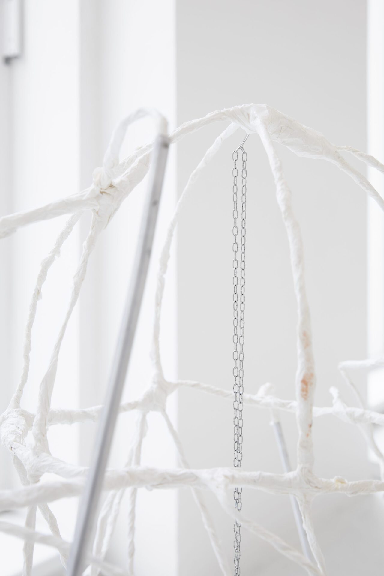 Like an alien spider crawling onto me. It goes up and wraps me inside of itself. Long legs woven around my head and my neck, growing into the ground. An architecture of domination, taking control, not leaving me alone. It may sound strange and scary, but I find it calming. It’s keeping me safe and protecting me. Colonizing my little small world and keeping it in place. Sometimes It encloses my head inside of itself and sends it into the space like a rocket. Away into the darkness. While I watch how I leave the earth stratosphere I feel the baggage falling down from my shoulders. It’s so quiet up here. My mind clears up, and there is nothing to see or feel.