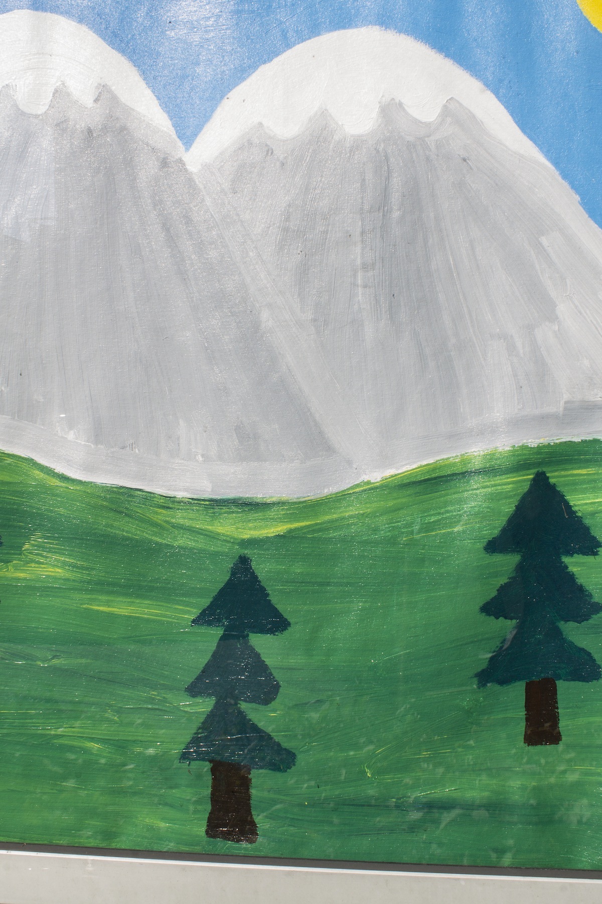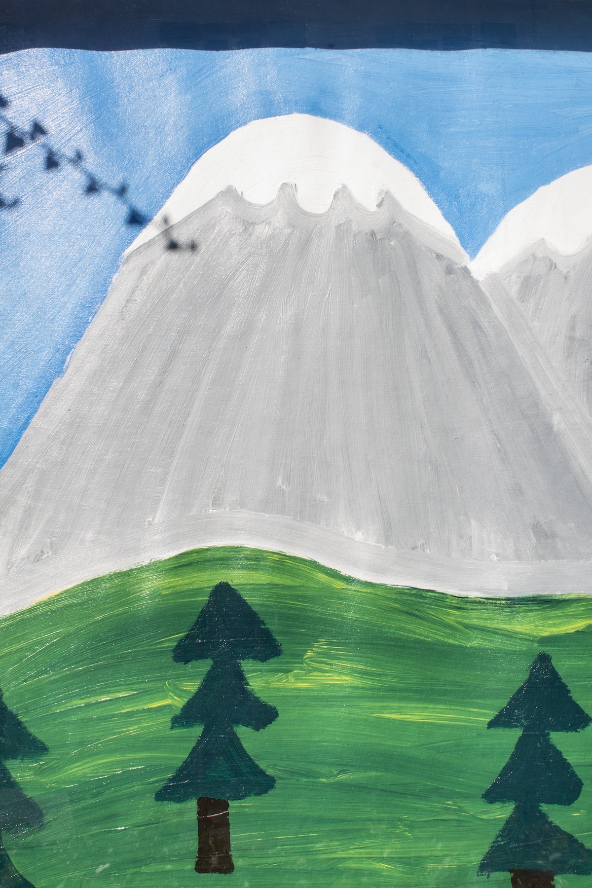 Sun, moon, mountains, trees, forests, waterways, are components of written and spoken language. Daniel Carnevale's landscape paintings challenge our aptitude in affirming the prior statement is solely true. The paintings, in their presentation of natural landforms reduced to starkly composed shapes, urge on being a vocabulary that we speak but aren't fluent in. Intuitively composed whole images are the sum of their parts, visual things and we admire the approach. These simplified rendered paintings reset our spatial awareness and hastily become an entry in the charming side of our visual content dictionary.