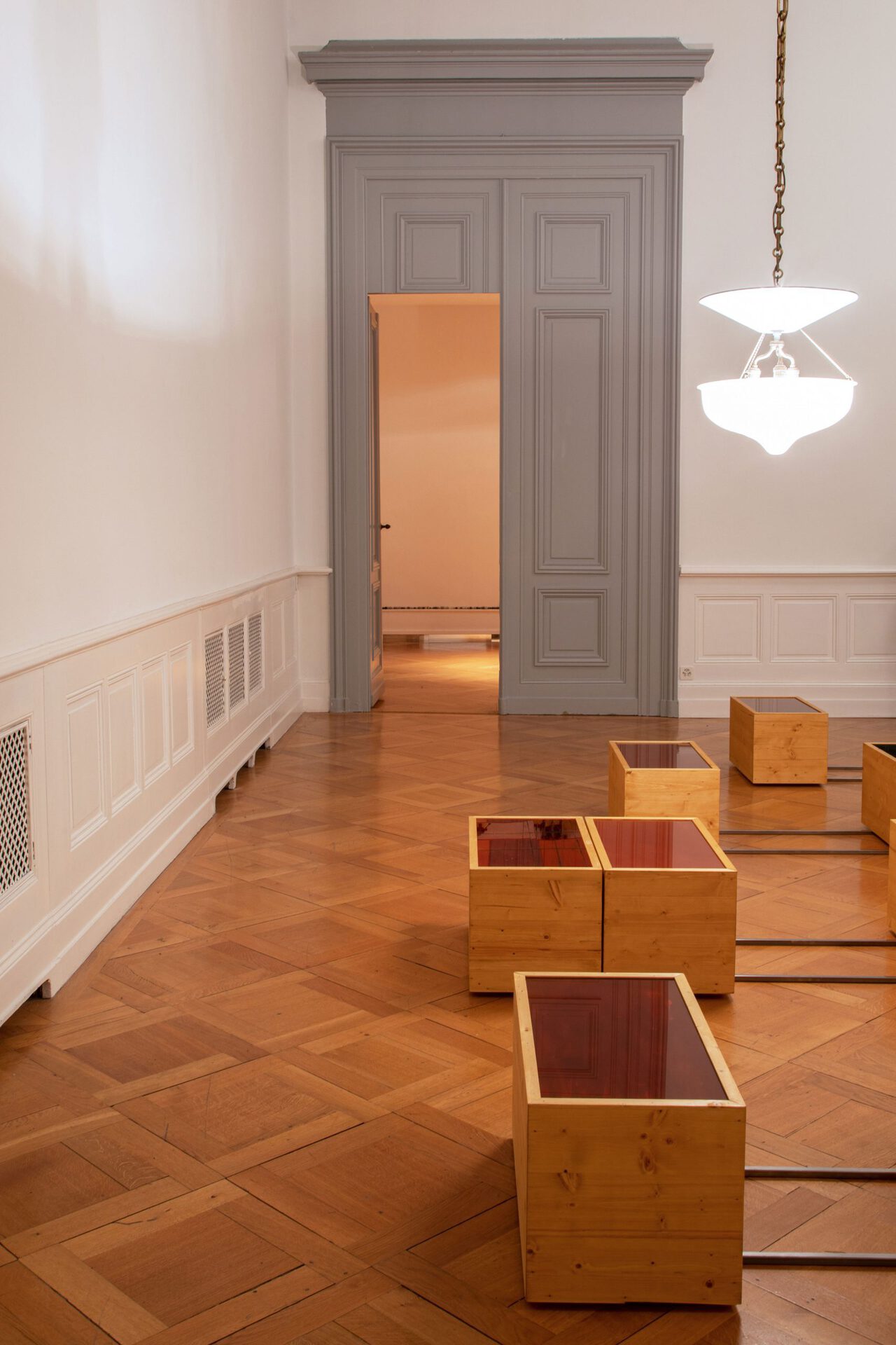 memory, from an unprecedented range of works. Conceived especially for the Société des Arts de Genève, the three rooms encompass and reflect the artist's varied works – from a series of vivid red oil pastel drawings, to an installation covering the whole floor of the main exhibition room with wooden sculptures,to pieces of hundreds of modelling wax sculptures intertwined with elements of the venue’s architecture in the last room.