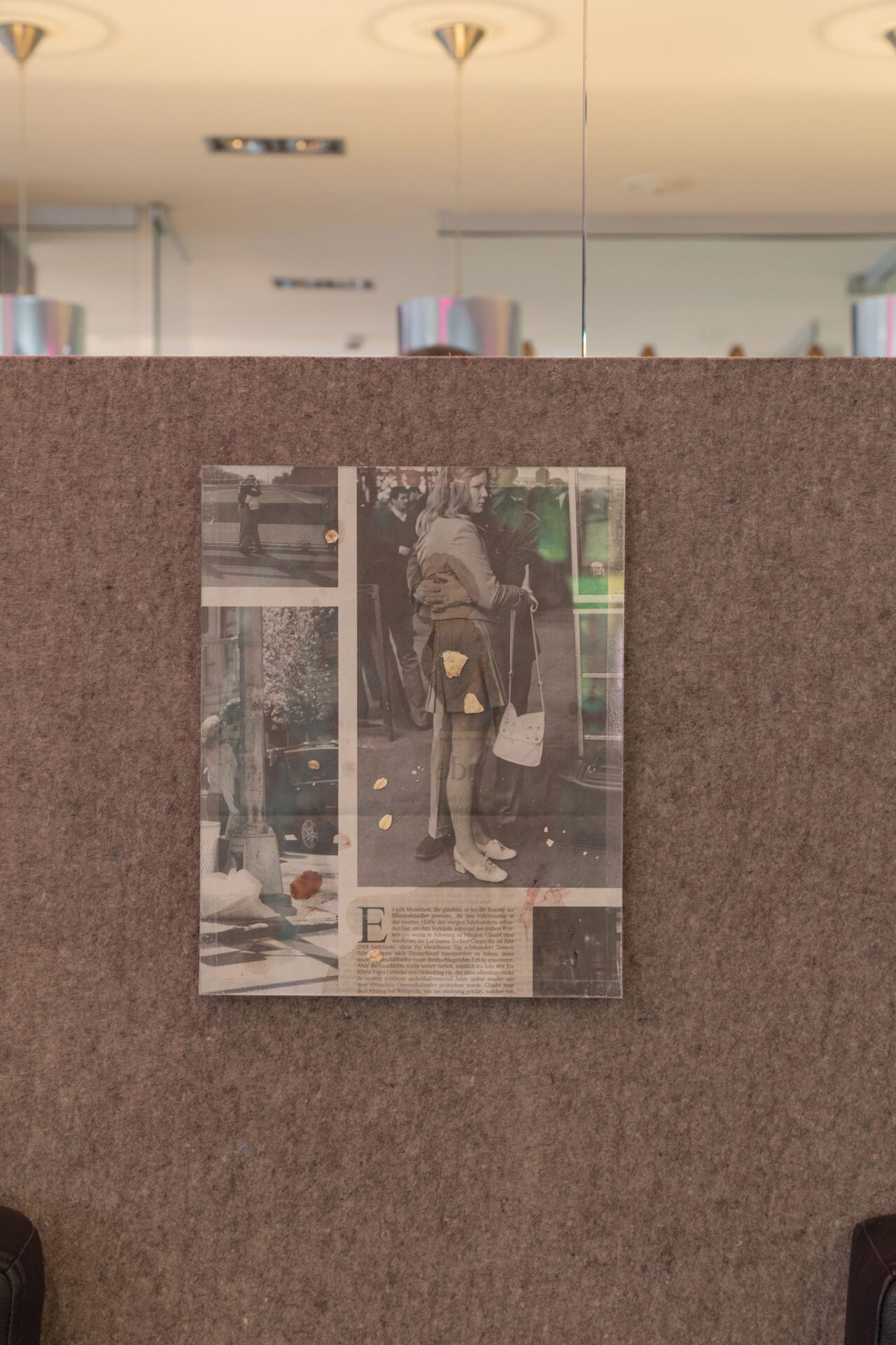Rashiyah Elanga uses fiction as a tool to develop emancipatory spaces. She gives discriminated people the potential to change their situation and negotiates the possibilities of new realities. In a humorous narrative, artist Yun Heo decentres people by allowing her key sculptures to become subjects acting on their own authority. They free themselves and only in this way can tell their own story. Line Lyhne's laser papercut creates a surreal visual world with only a few means, which, like other works by her, also questions the perspectives and the viewing habits of the viewer. Architecture and urban planning are rarely neutral, as artist Nadia Perlov shows in her series Bugs and Bags. In sumptuous compositions, she deconstructs the political and cultural implications of architecture. Arthur Stachurski creates imaginary worlds in his works that move between utopia, dystopia, and digital parallel worlds. His painterly techniques simultaneously raise questions of the medium's production process per se. Ian Waelder invites us into the micro-level of daily life with his series Here not today: a newspaper from the city he is currently in and the food scraps found on it become a snapshot of a day, a kind of diary entry by the artist.