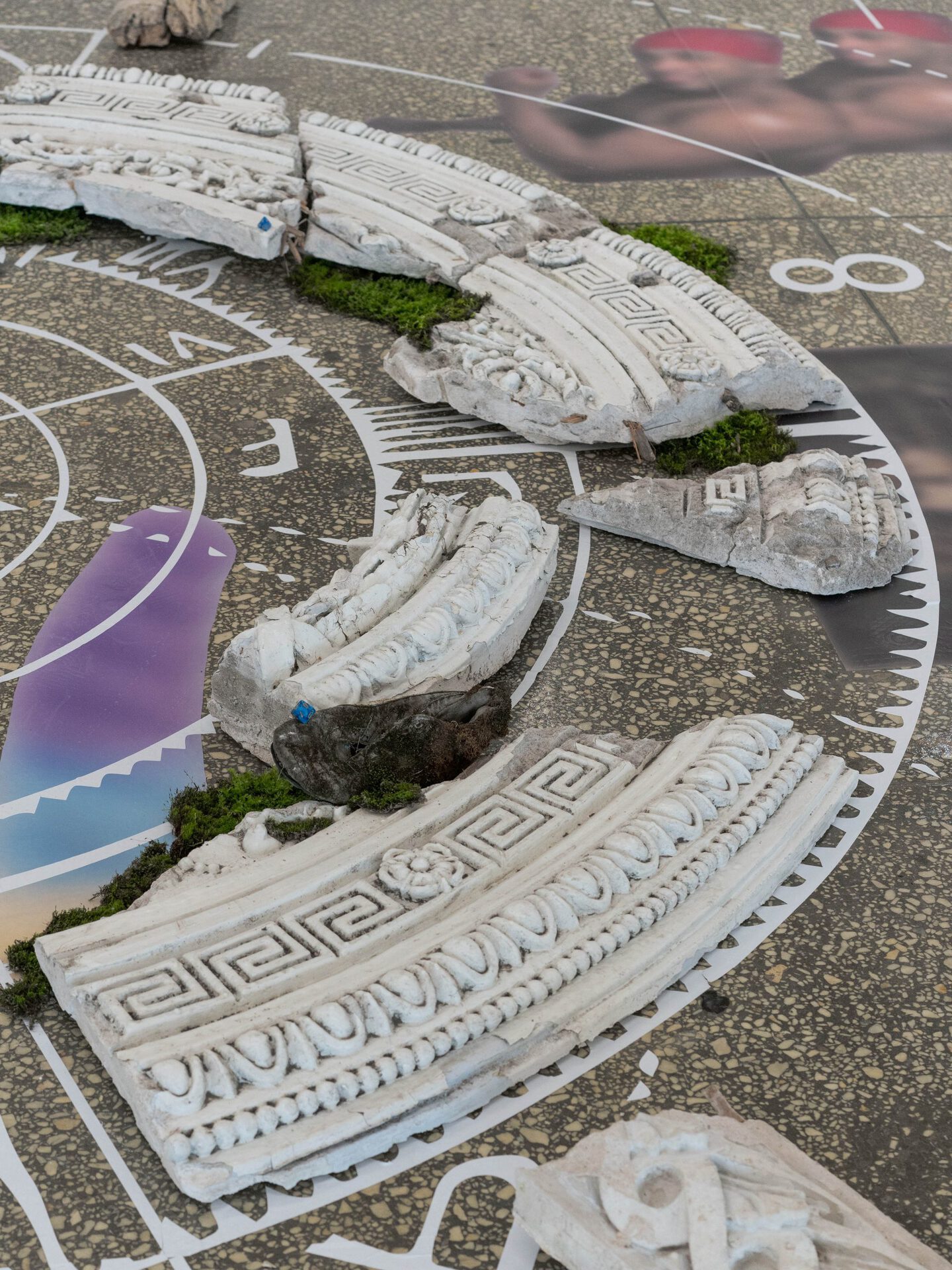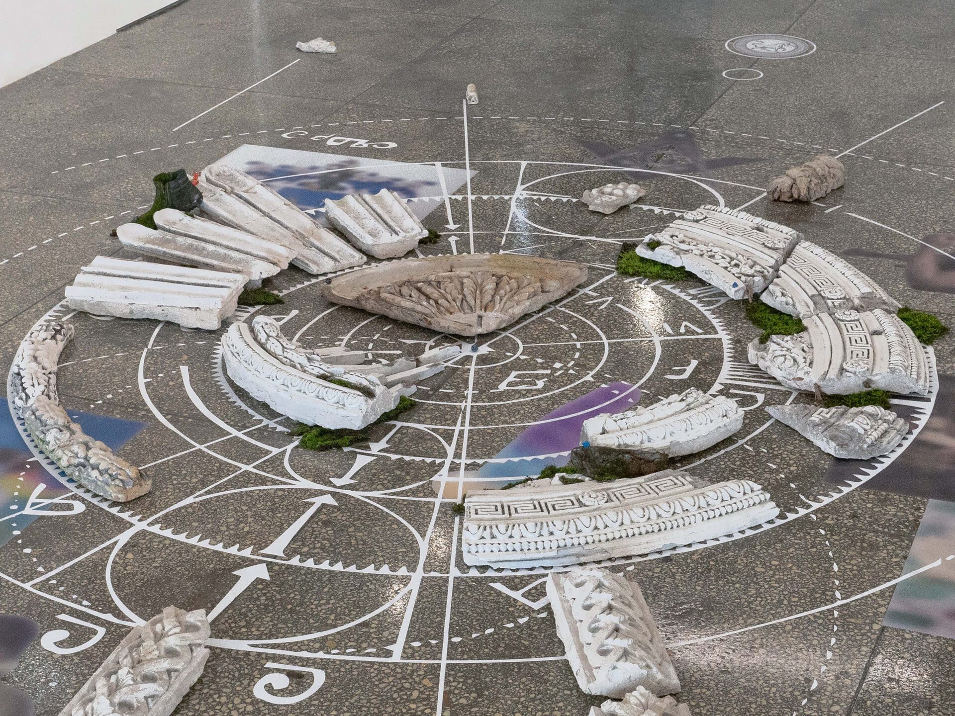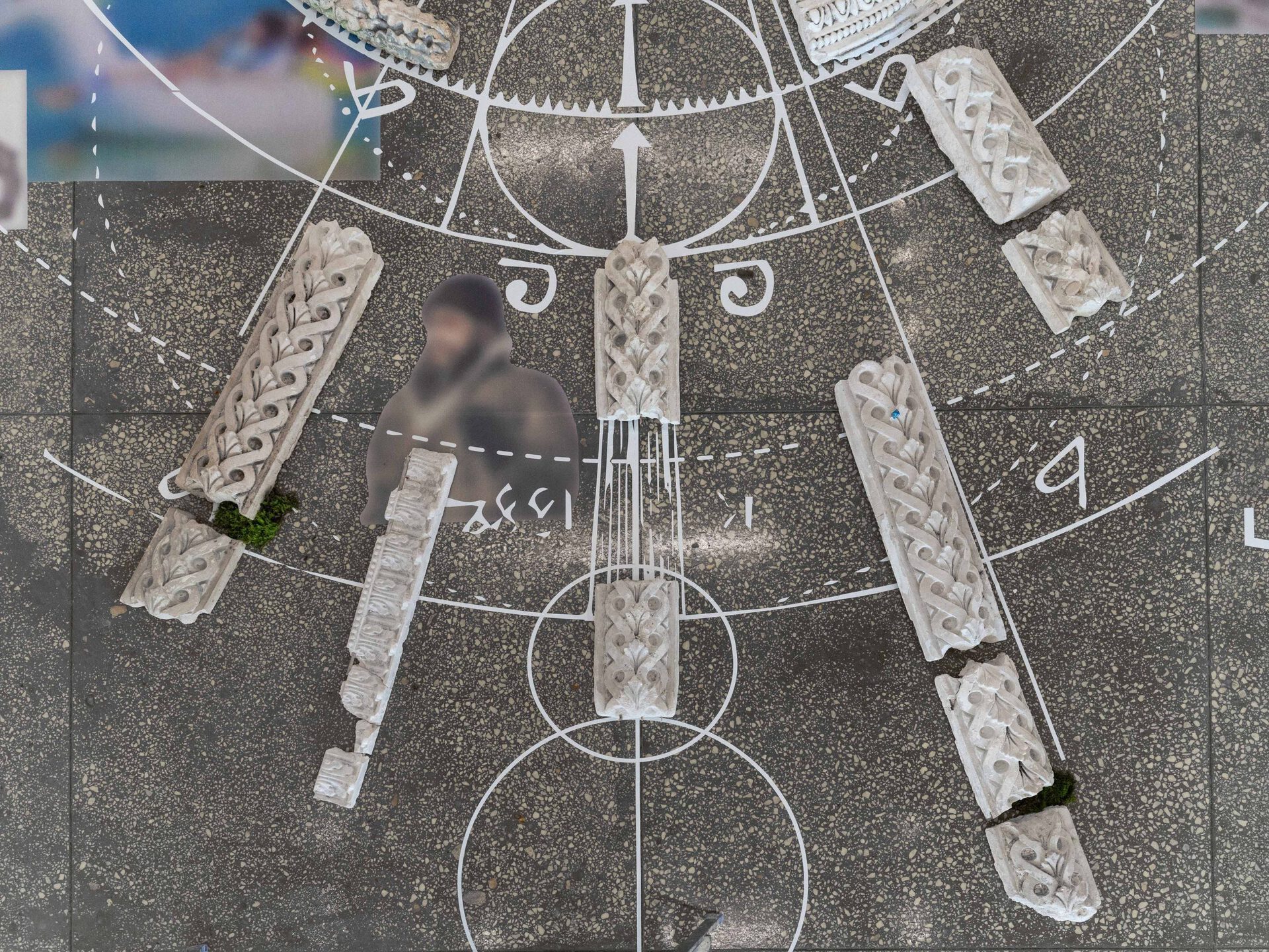 For an installation imitating the recreated ruins of an ancient temple, altar or cult object, revealing the connection of the unicorn with ancient occult practices, Misha Gudwin used found artefacts — plaster fragments of architectural decor. The ancient Vyksa altar, restored in the speculative installation, is intended to prove the connection of the city with astrological, occult and other practices of local secret communities.