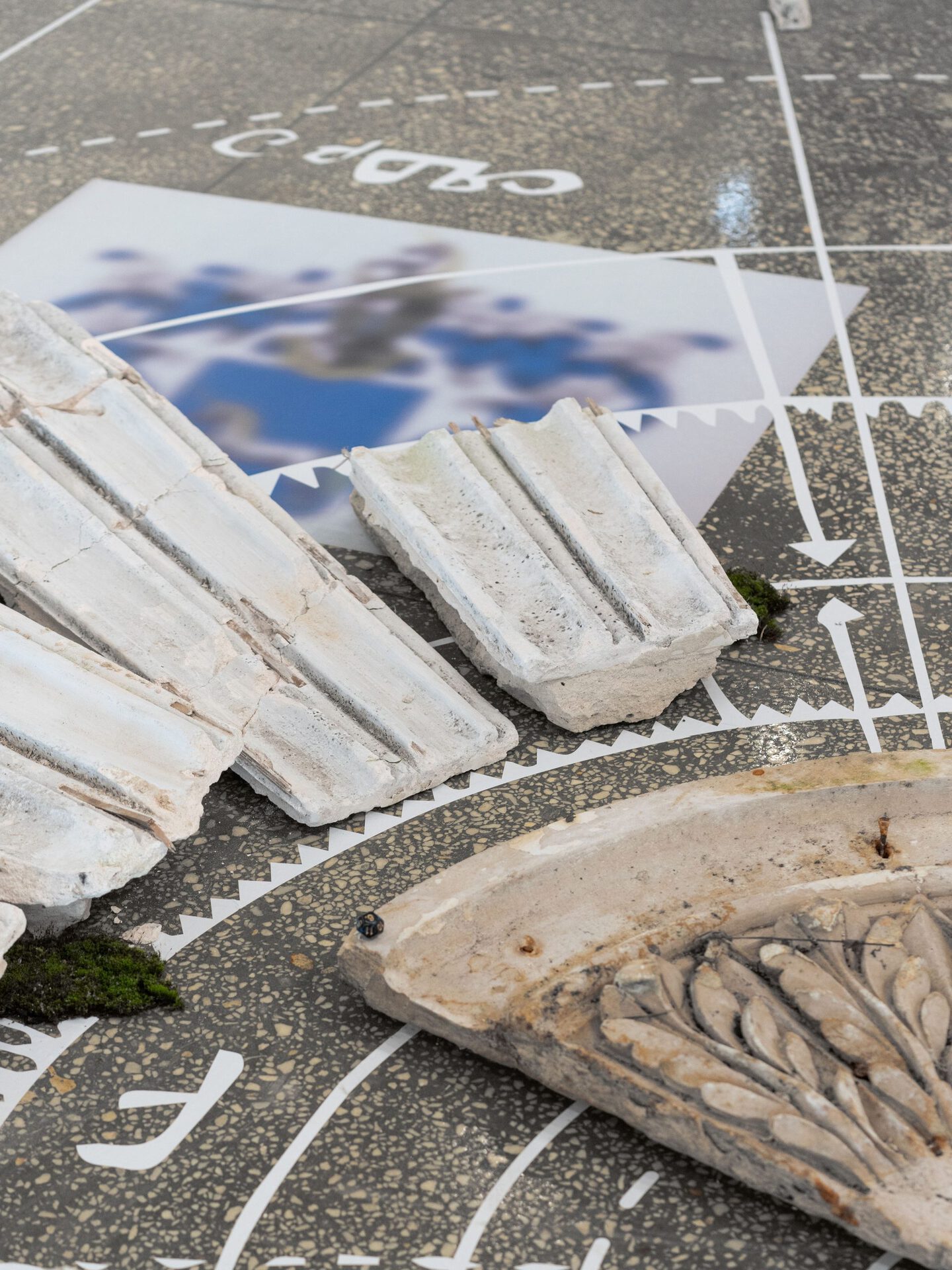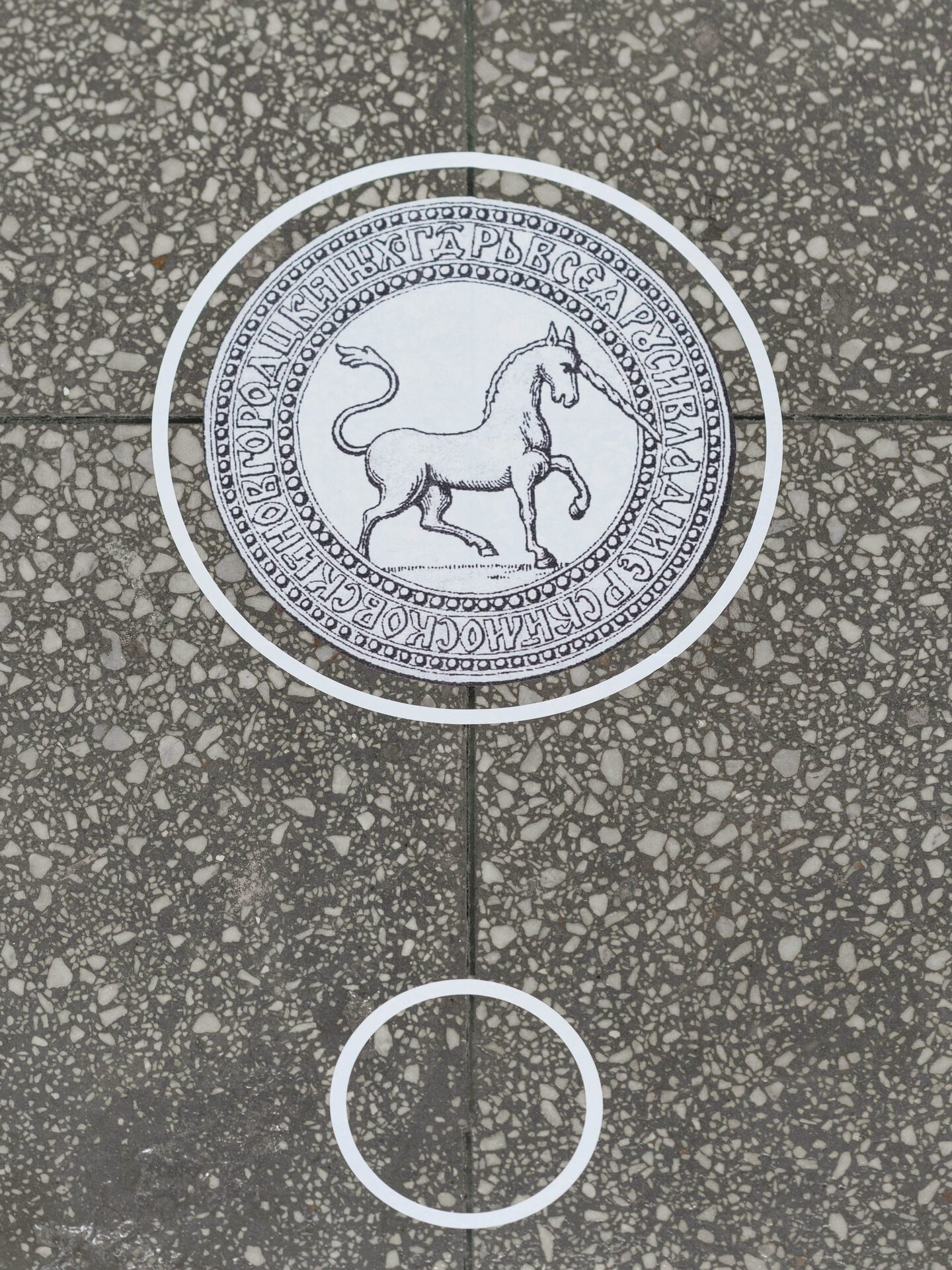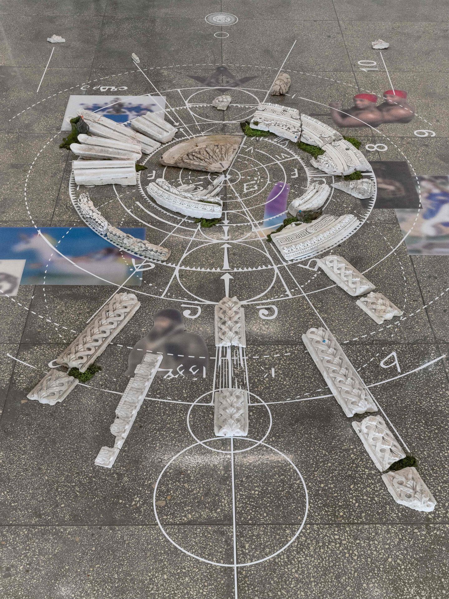 For an installation imitating the recreated ruins of an ancient temple, altar or cult object, revealing the connection of the unicorn with ancient occult practices, Misha Gudwin used found artefacts — plaster fragments of architectural decor. The ancient Vyksa altar, restored in the speculative installation, is intended to prove the connection of the city with astrological, occult and other practices of local secret communities.