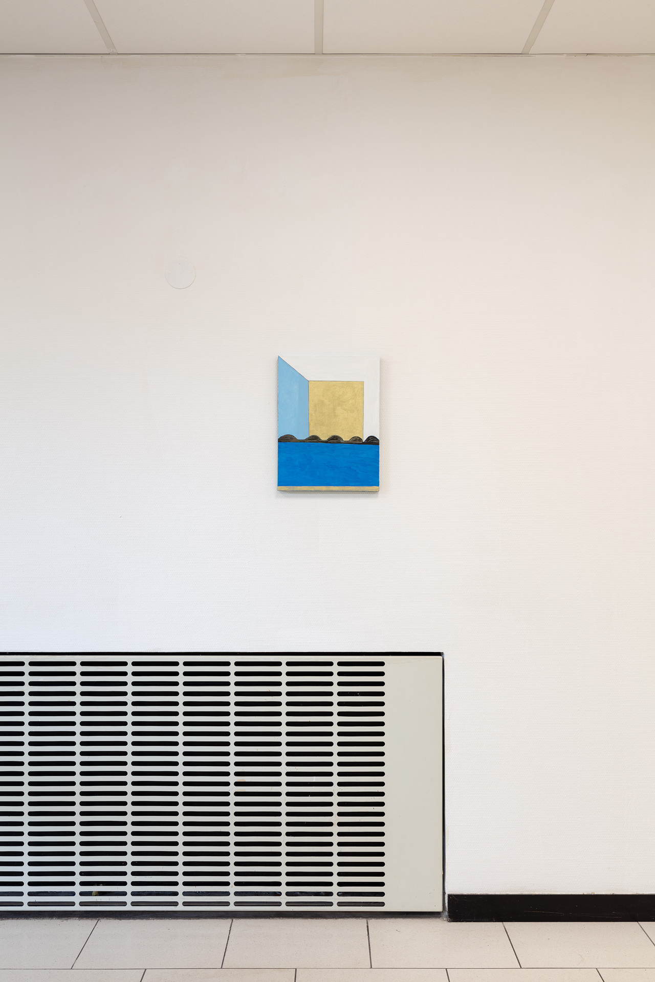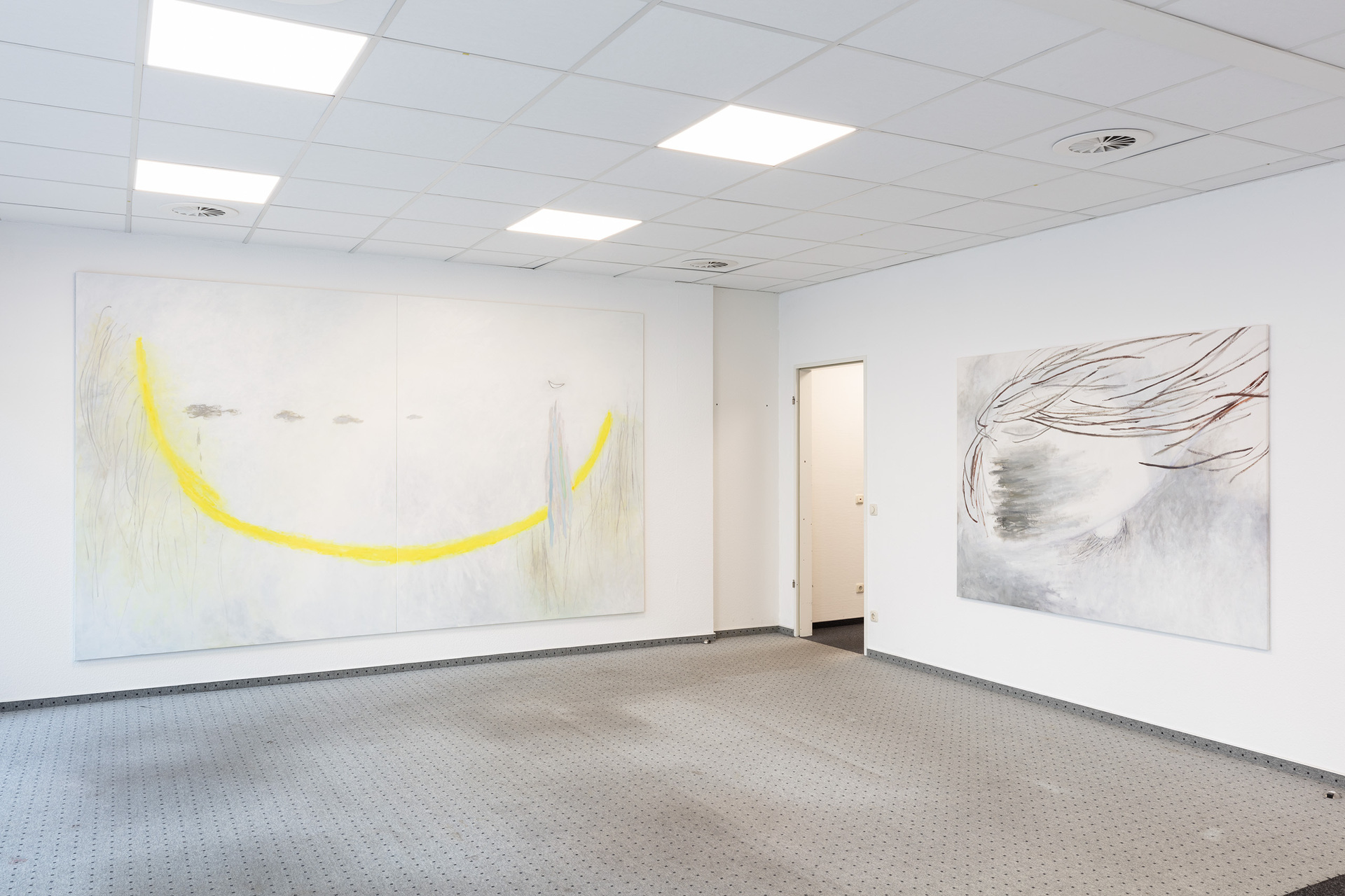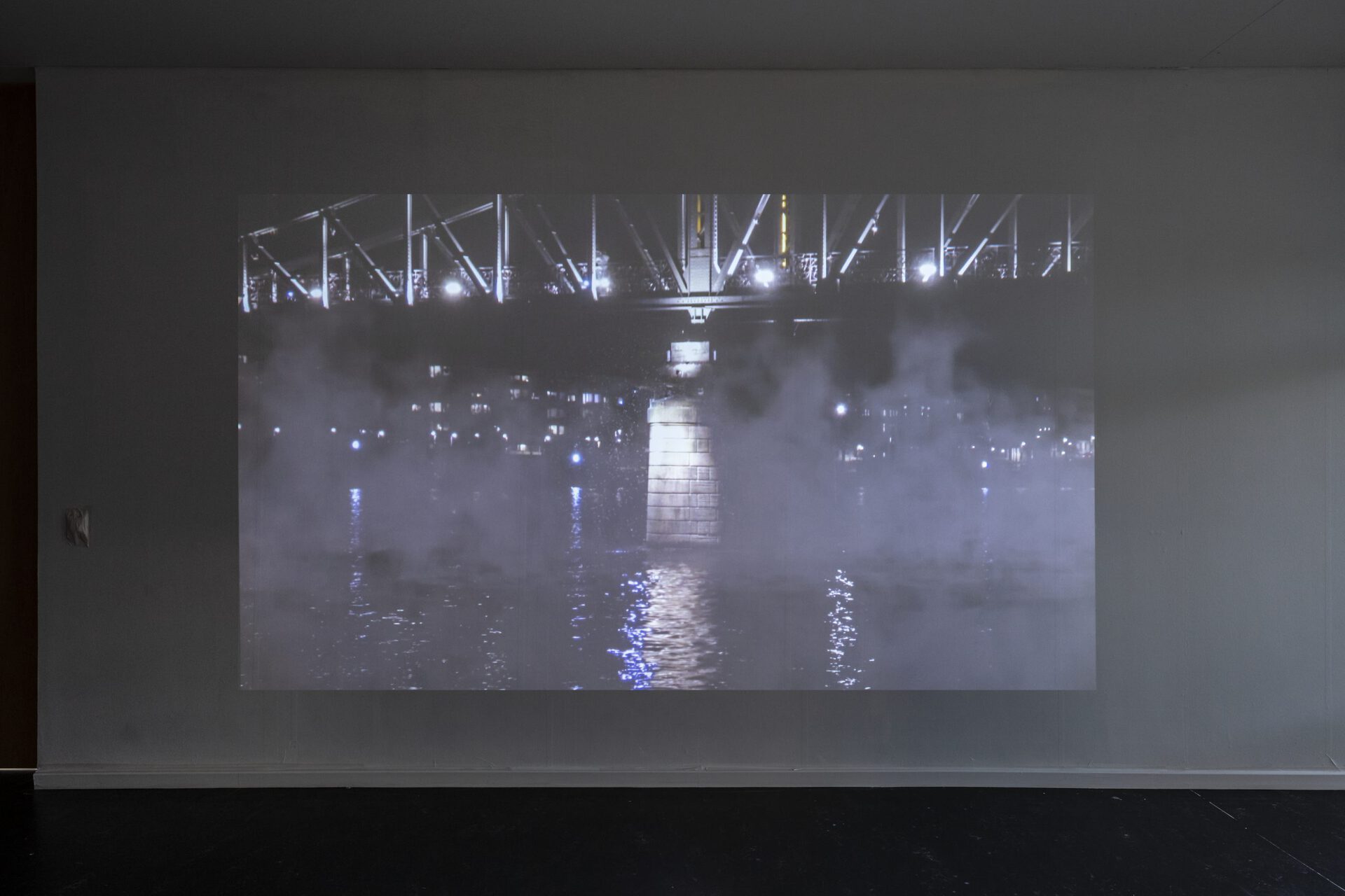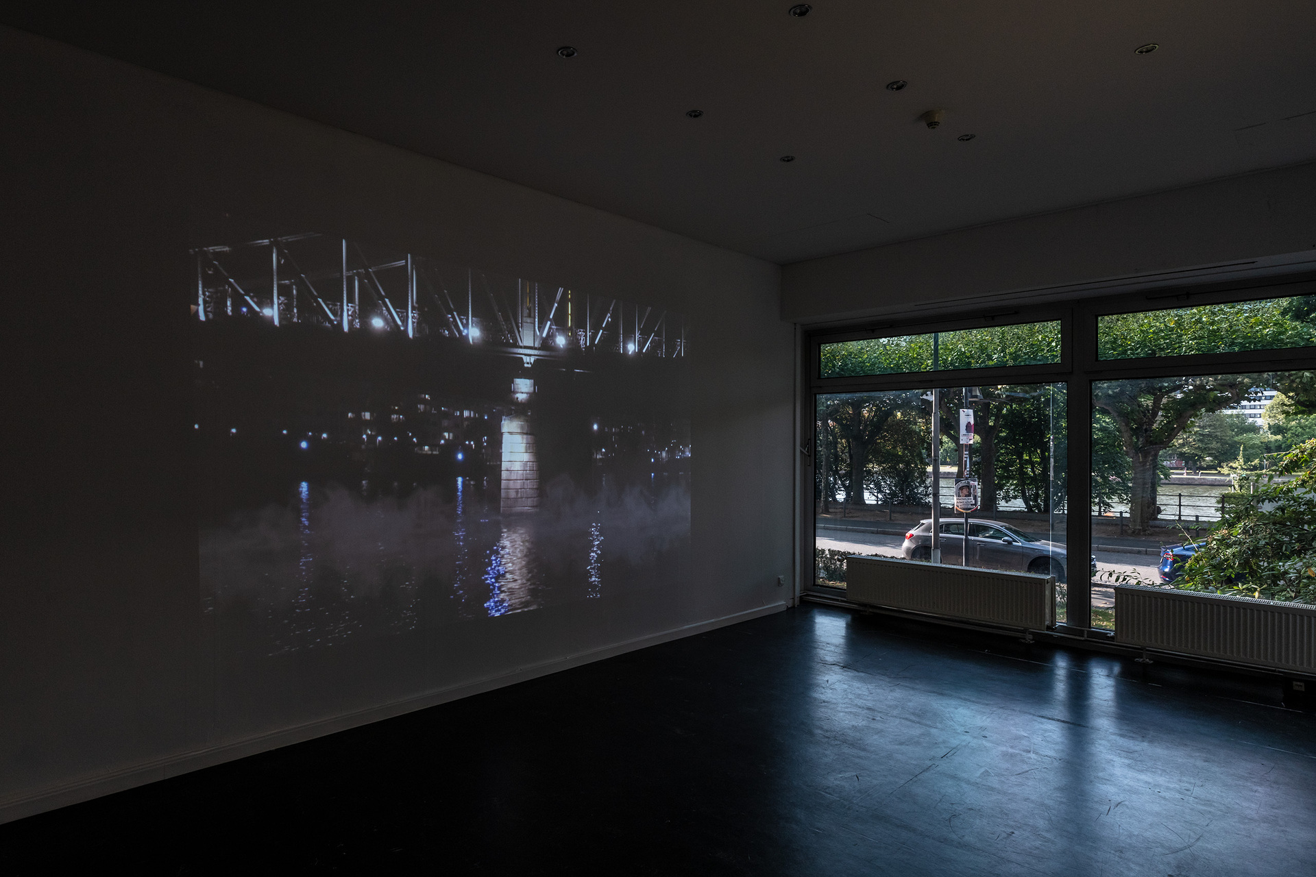 Die Werke des Künstlers sind Teil der Absolvent:innenausstellung der Städelschule, an der dieses Jahr 24 Künstler:innen teilnehmen. Als Ausstellungsort dient nicht wie die vorigen Male eine Frankfurter Institution, sondern ein leer stehender Gebäudekomplex in unmittelbarer Nähe der Kunsthochschule. Zwischen Städel Museum und Liebieghaus gelegen, hielt sich das Bürogebäude am Schaumainkai bisher zurück. Wer jedoch im Spätsommer 2021 am Museumsufer entlang spaziert, wird von großen Fahnen abgefangen, die mit dem Titel THE WHISTLE den temporären Ausstellungsort als solchen kennzeichnen – einmalig, denn das Haus aus den frühen Siebzigern wird nach dem Abbau der Show abgerissen. Zahlreiche Räume des Hochparterres und des Untergeschosses dienen als Ausstellungsfläche, auf der die Werke in einen Dialog mit der angestaubten Büroästhetik treten. Über große Glasfronten ist auch der Außenraum miteinbezogen, besonders deutlich in der Videoarbeit von Hyunjung Choi. Die Künstlerin zeigt in Memories of Water (2021) den Eisernen Steg, ein Wahrzeichen Frankfurts, das die beiden Mainseiten miteinander verbindet. Mit animierten Wettereffekten irritiert sie die Besucher:innen und lässt sie orientierungslos zurück – ein Gefühl, das über die labyrinthartig verzweigte Ausstellung anhält.