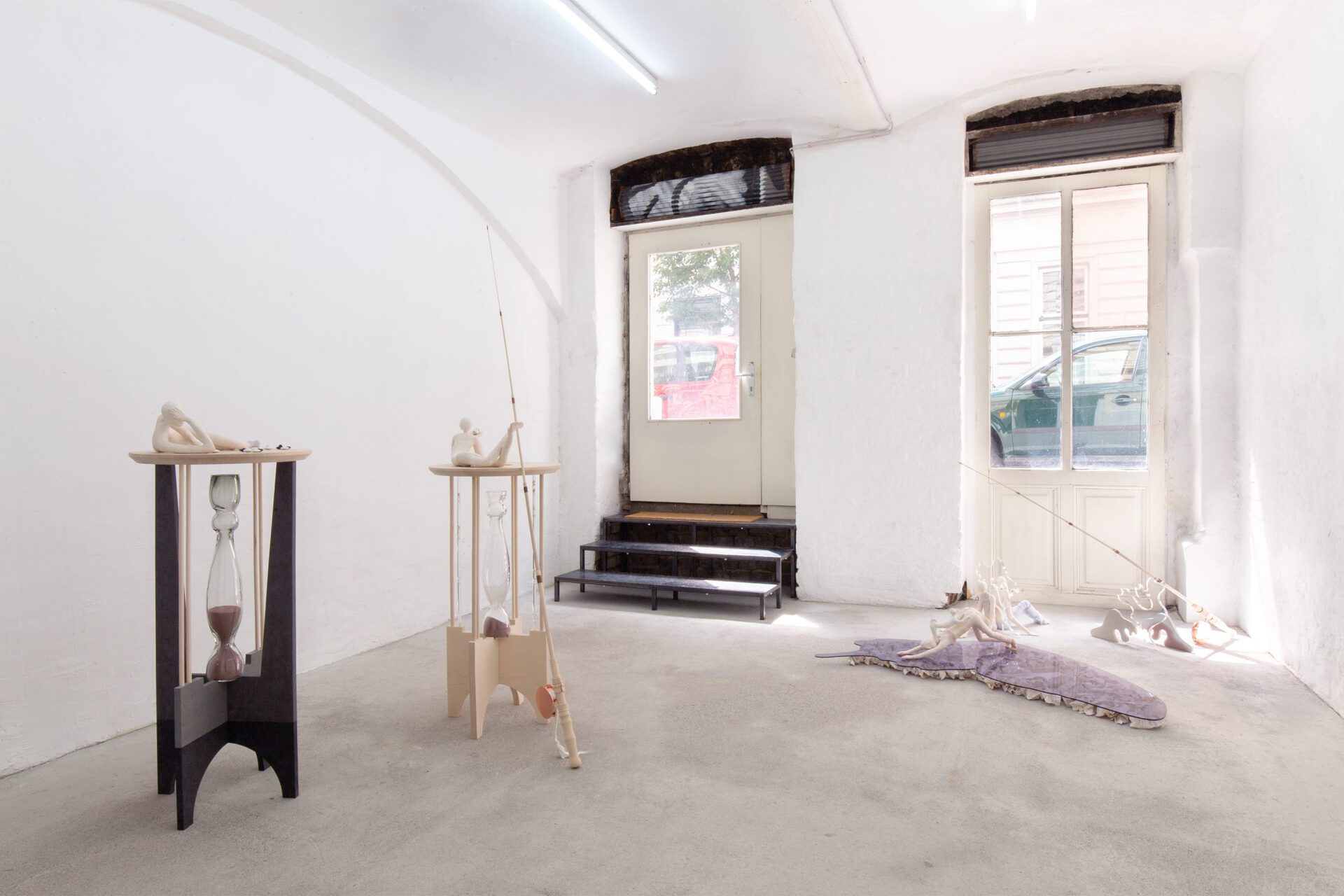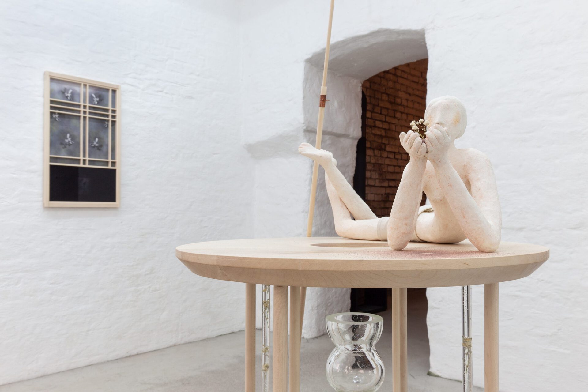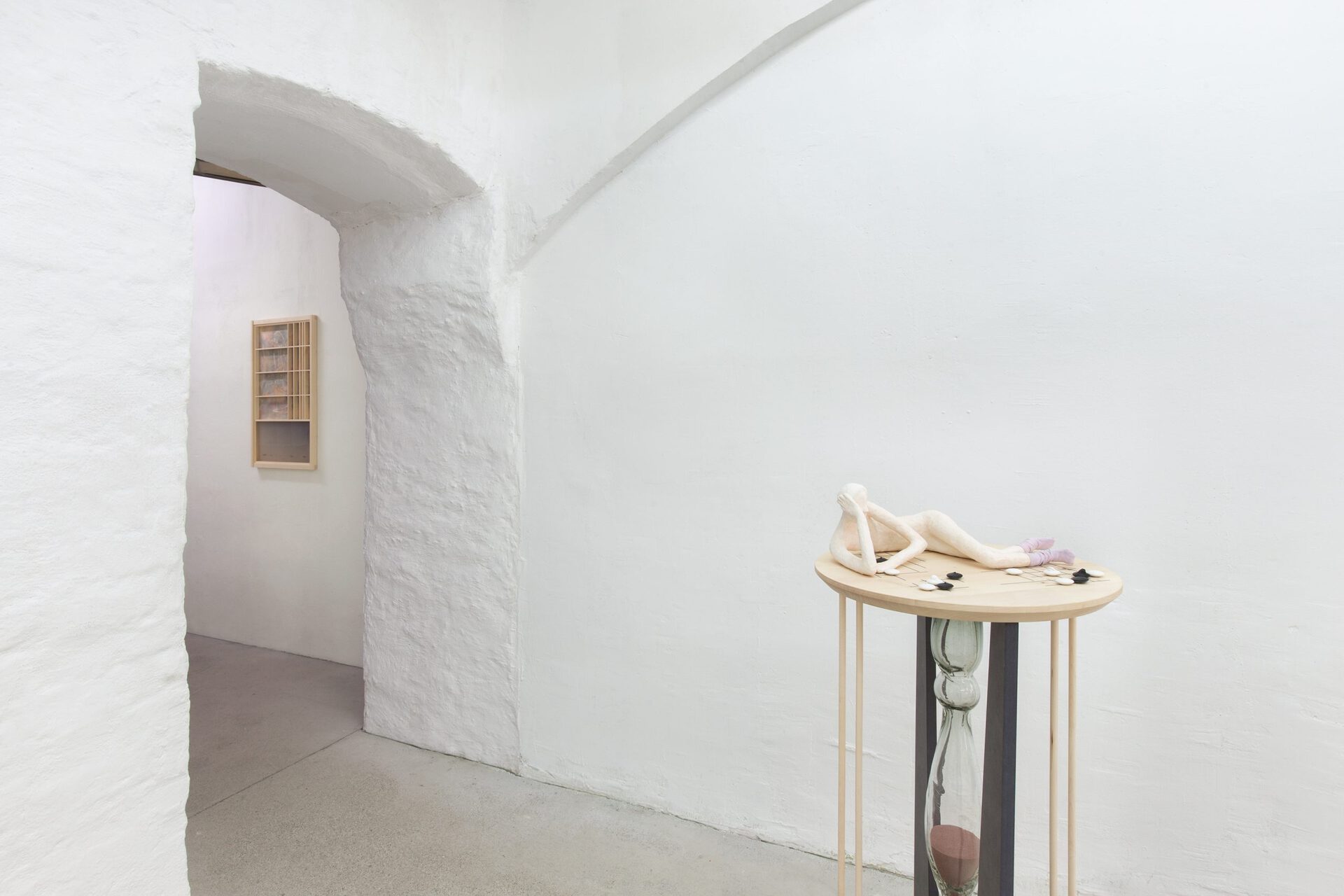 time sits crosslegged is a duo show by chiara bals and jumpei shimada all the works emerged from the collaboration between the two artistsText