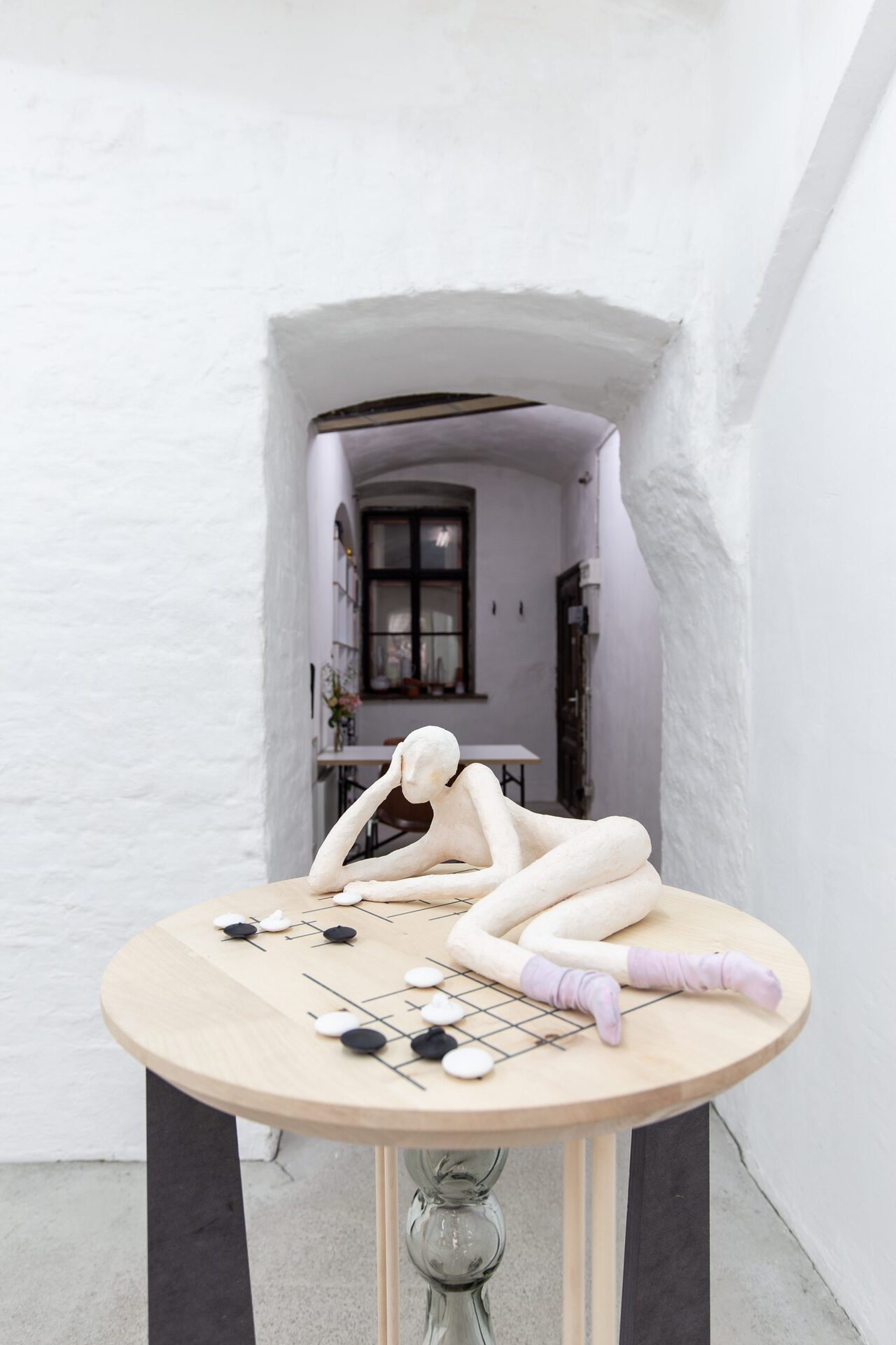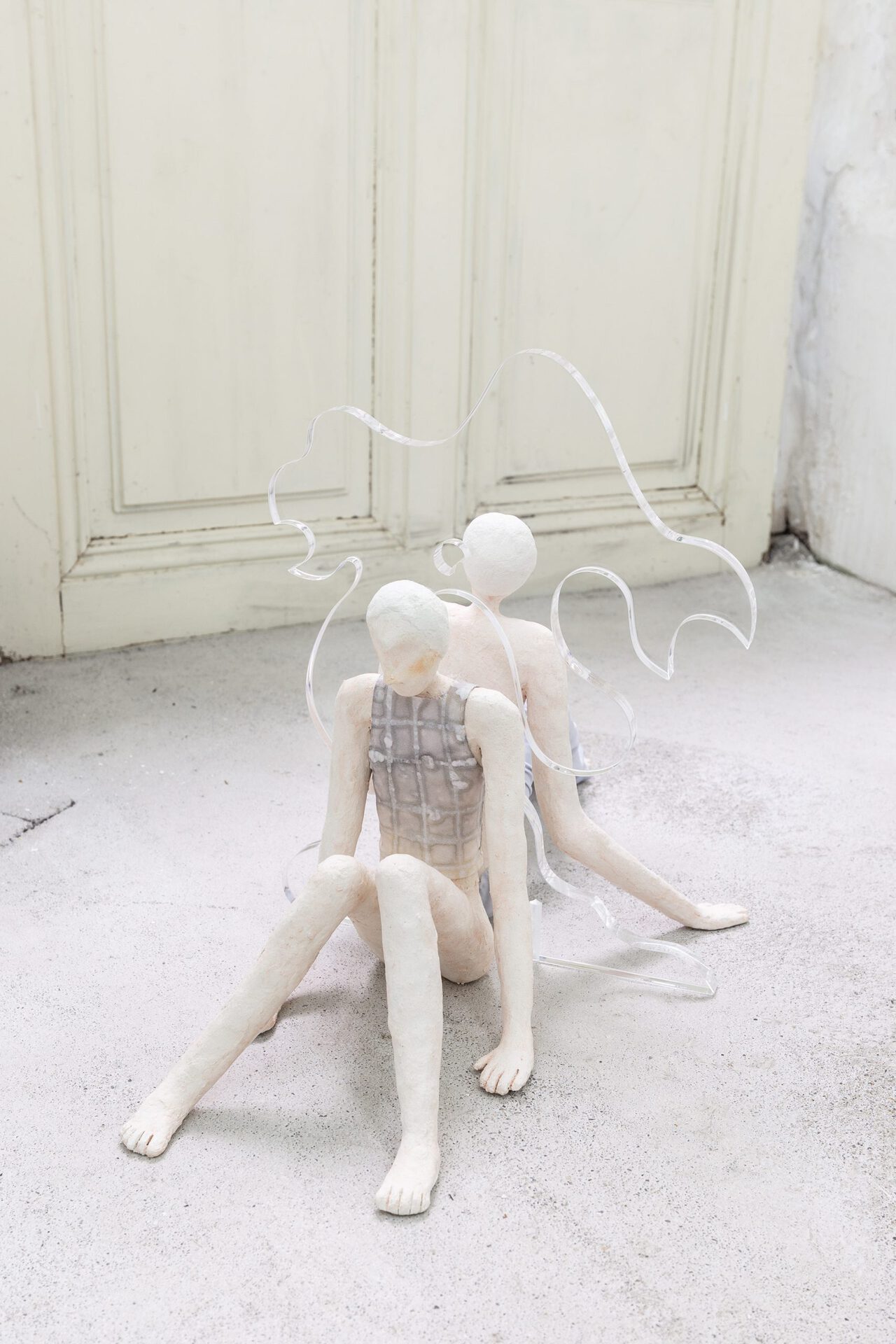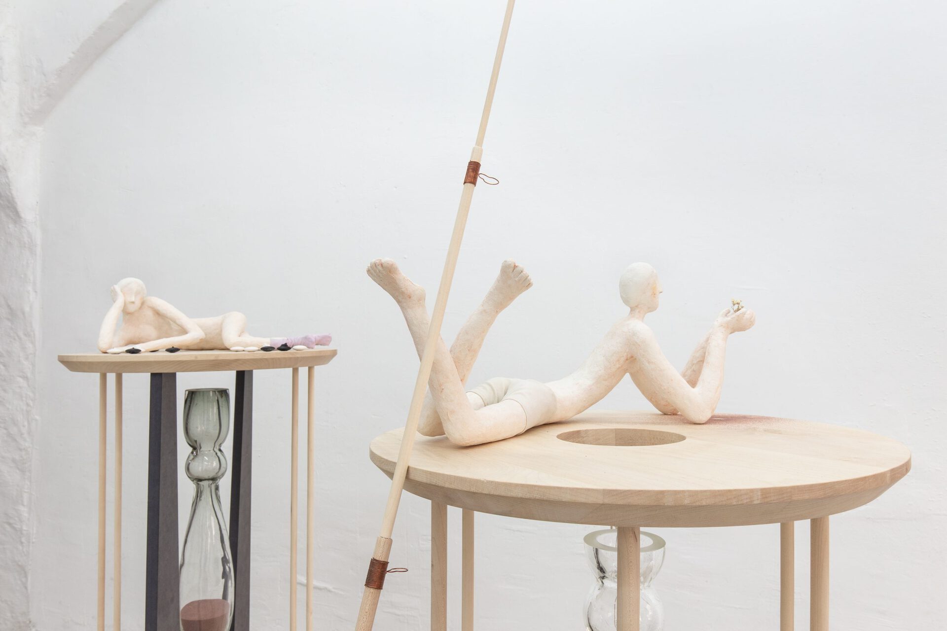 time sits crosslegged is a duo show by chiara bals and jumpei shimada all the works emerged from the collaboration between the two artistsText